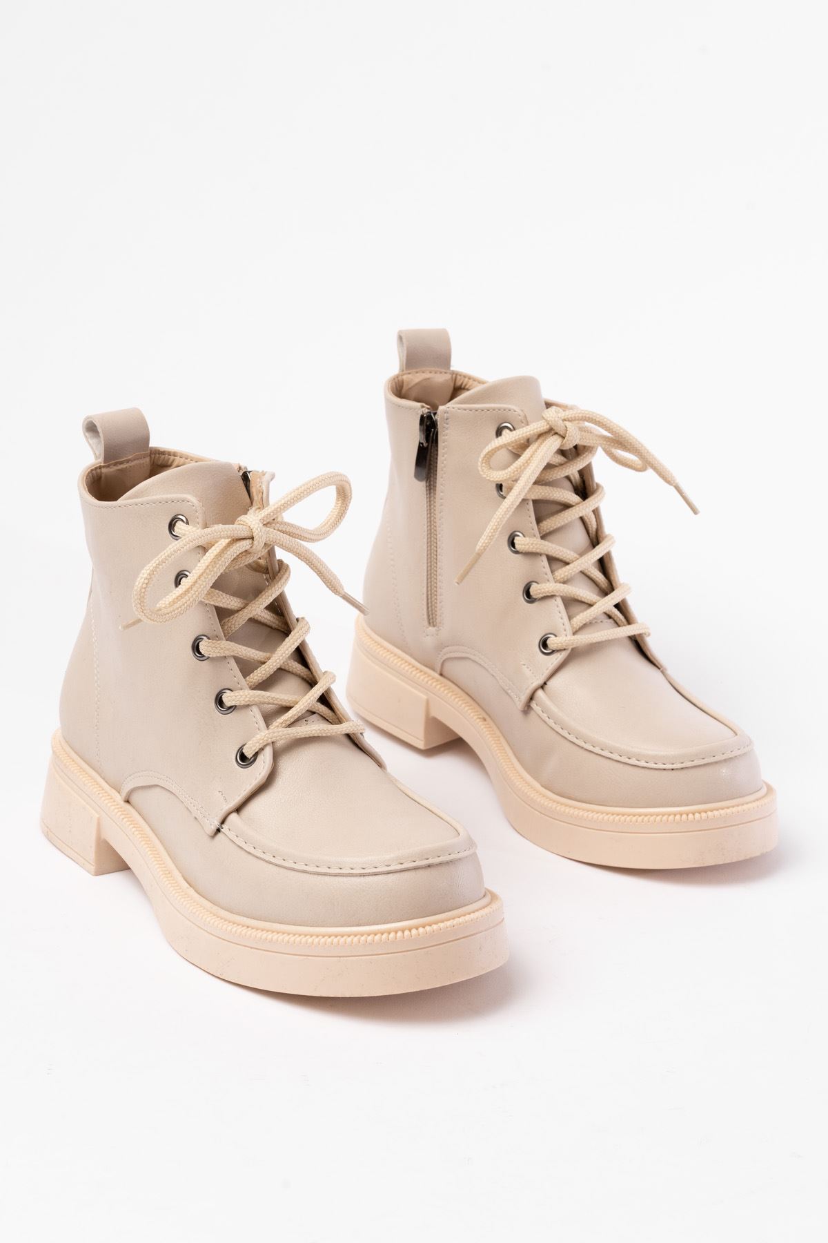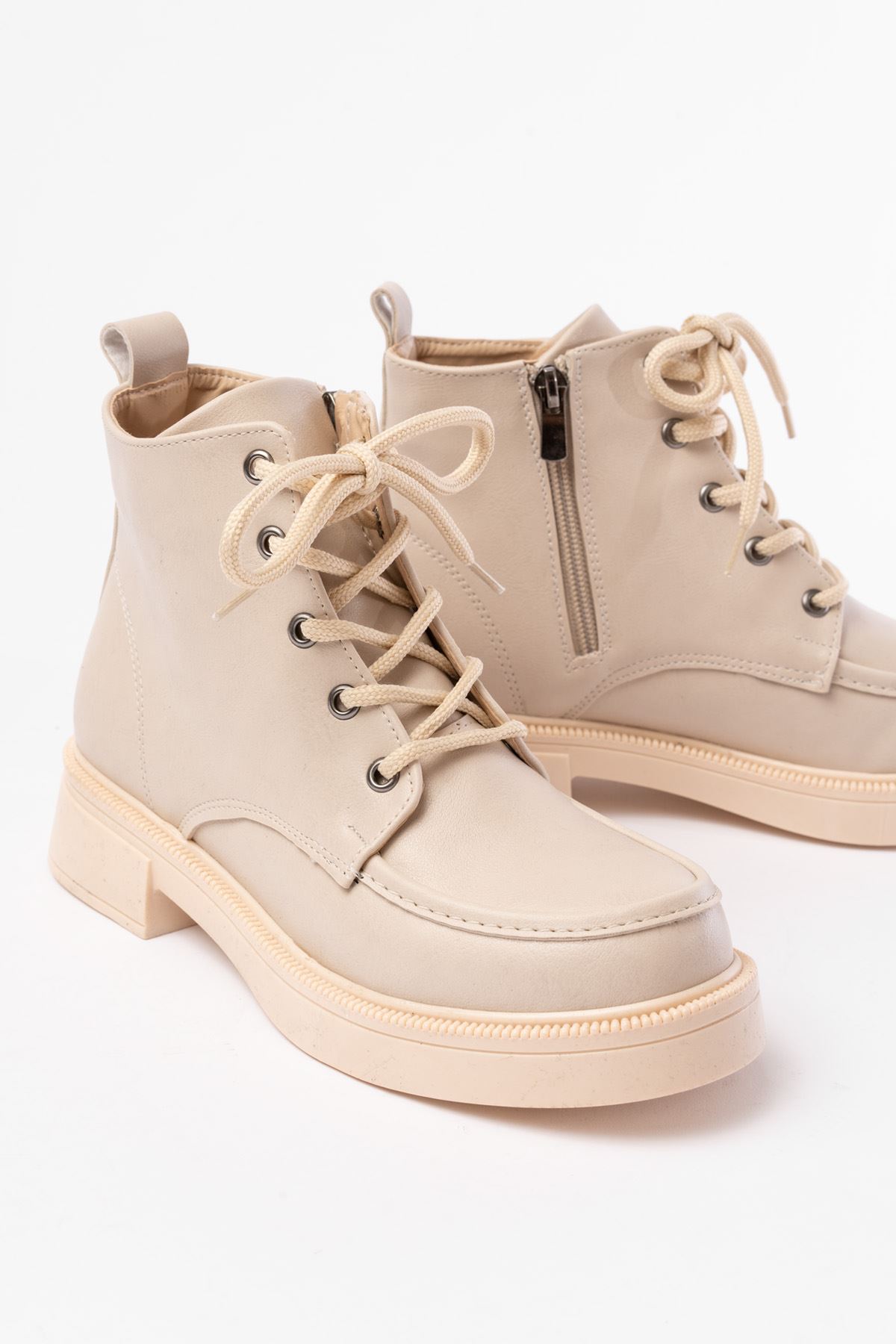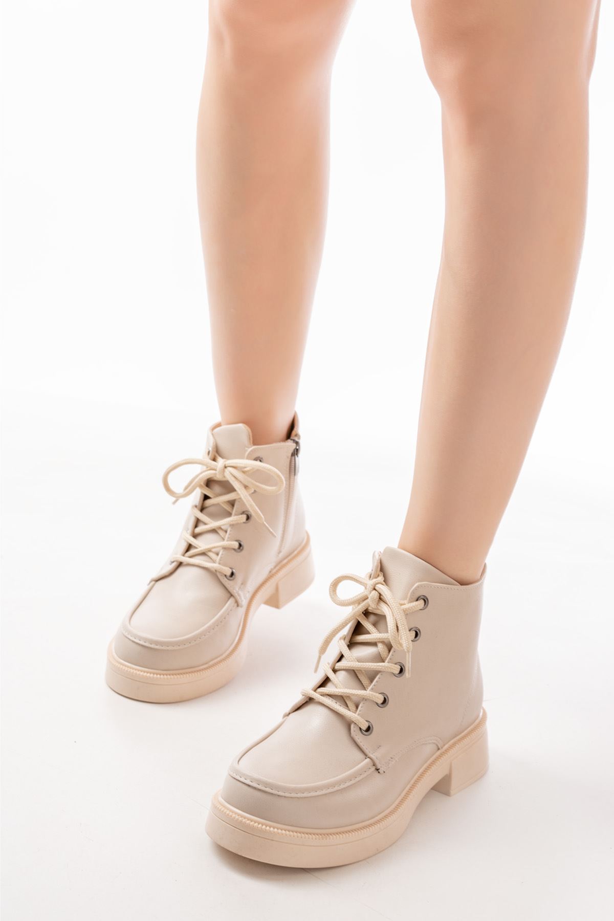 02-2001 Bej Bağcıklı Fermuarlı Günlük Kadın Bot