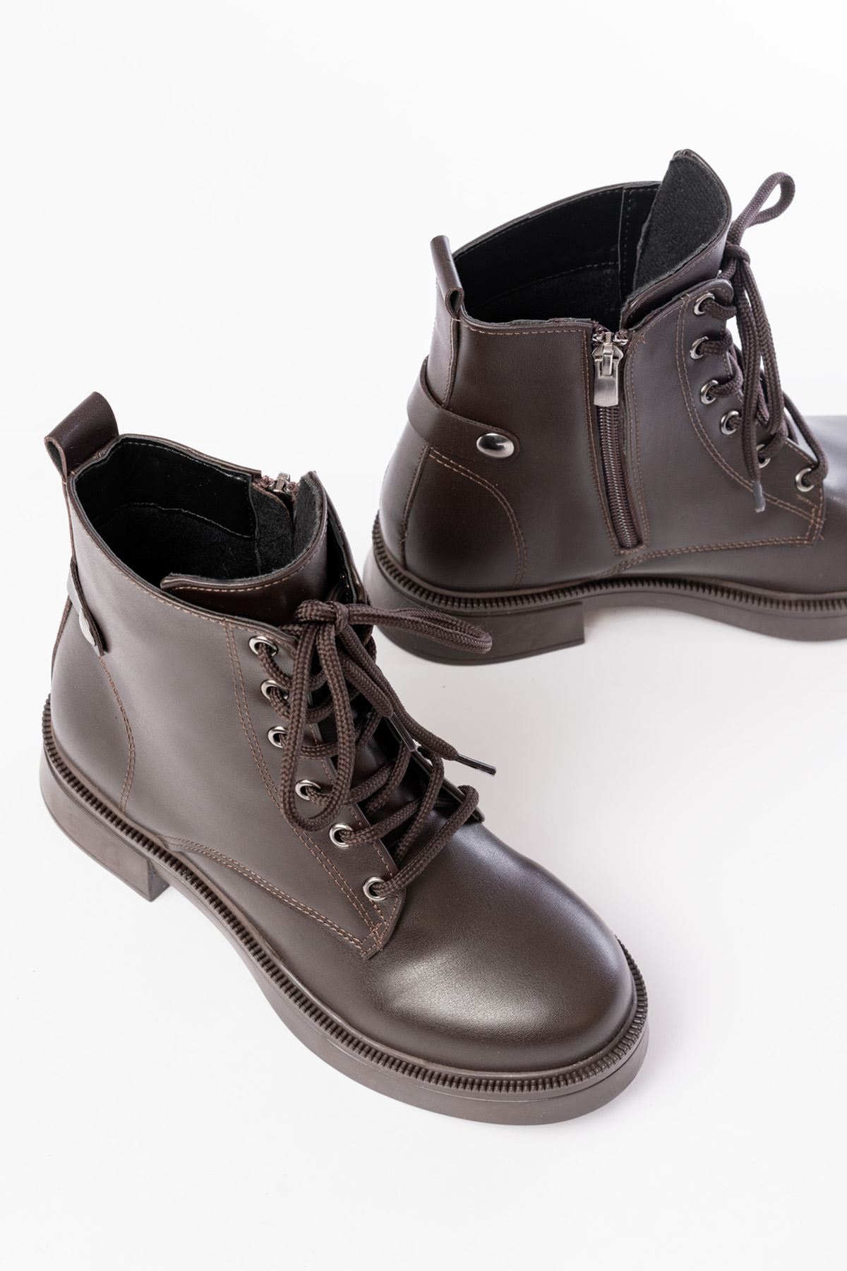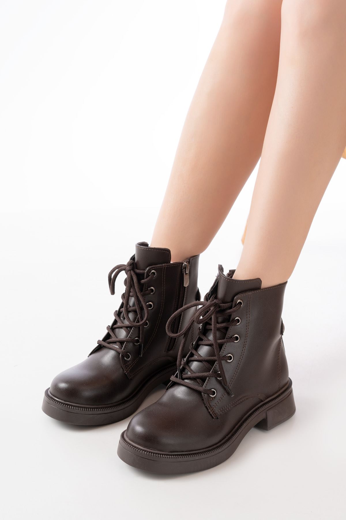 02-2003 Kahve Cilt Bağcıklı Fermuarlı Günlük Kadın Bot