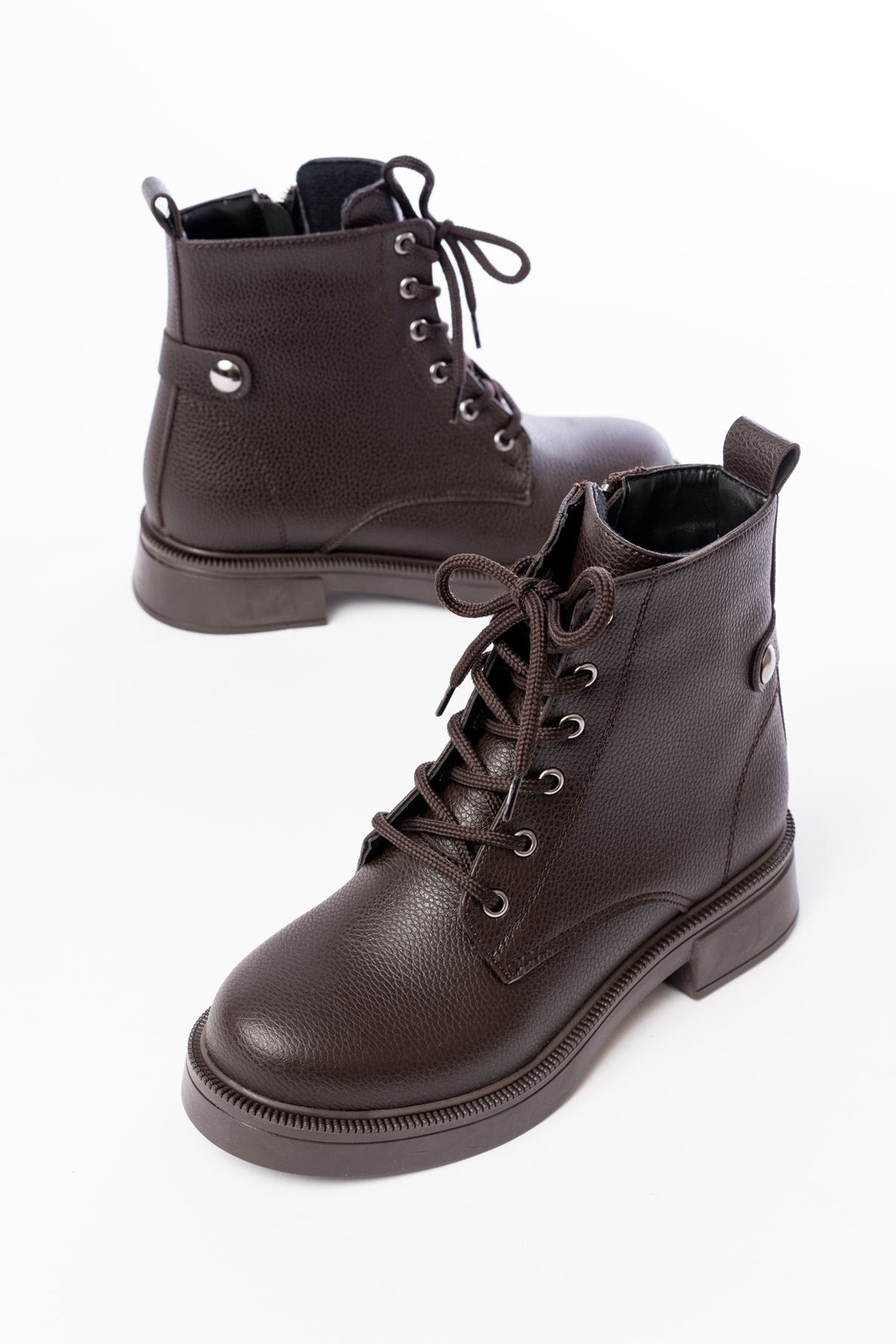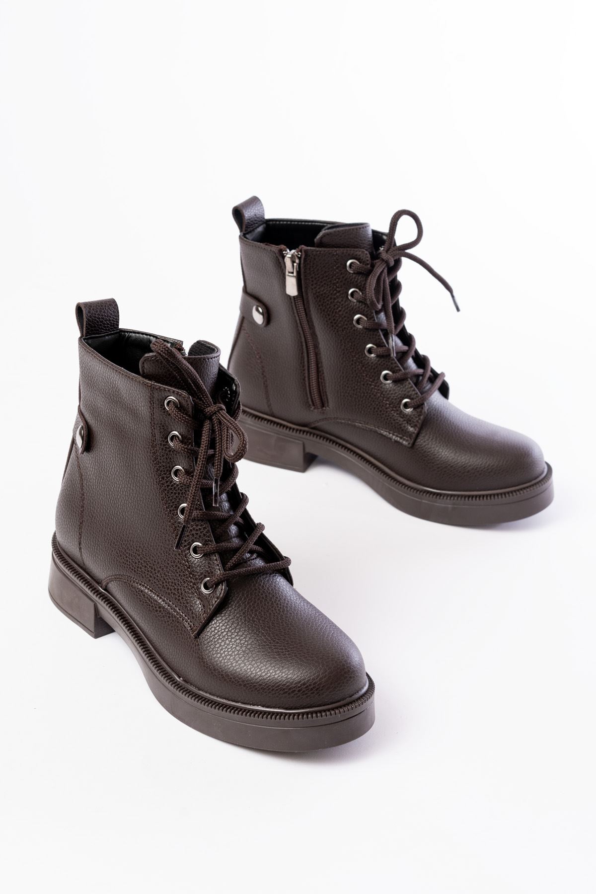 02-2003 Kahve Galata Bağcıklı Fermuarlı Günlük Kadın Bot