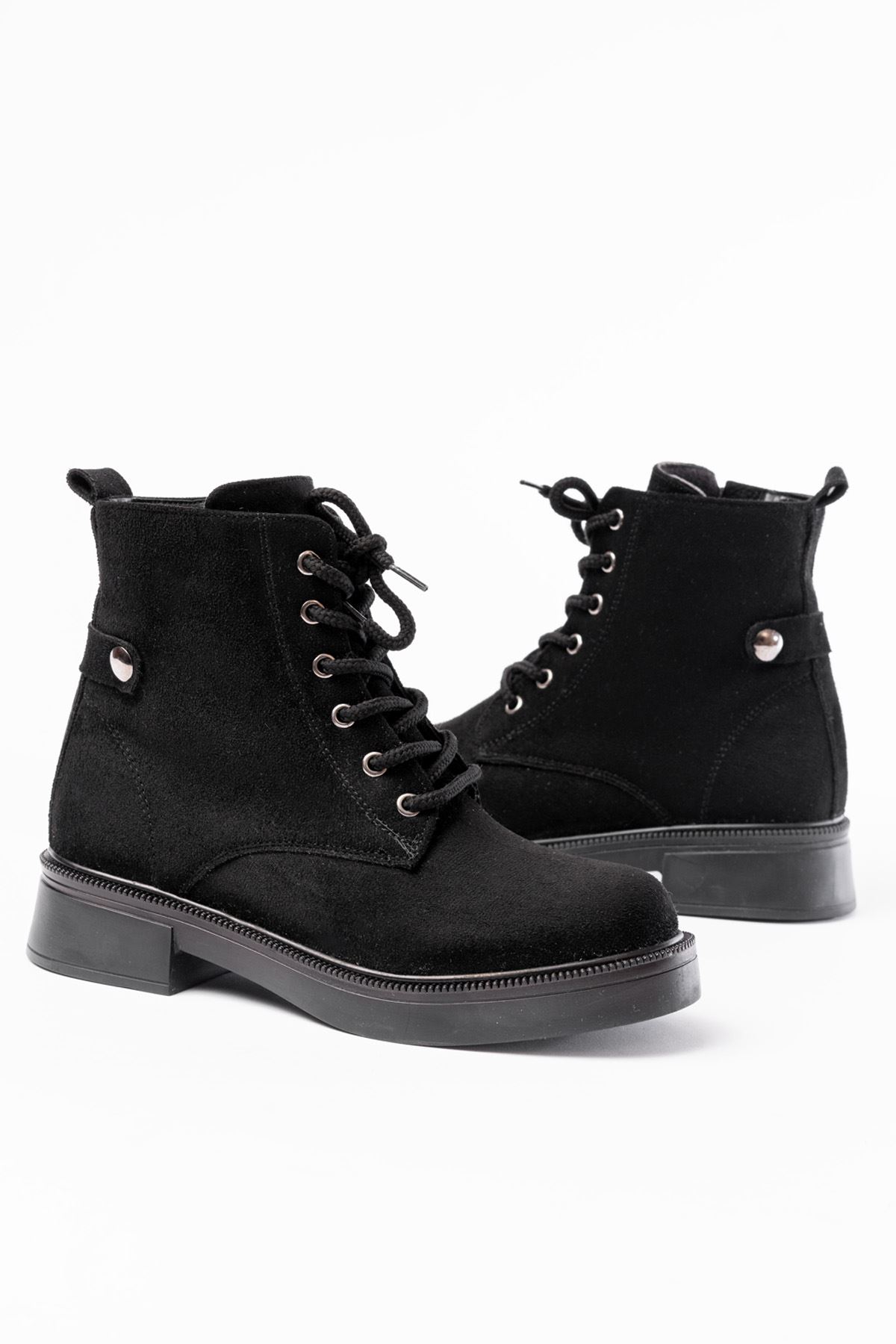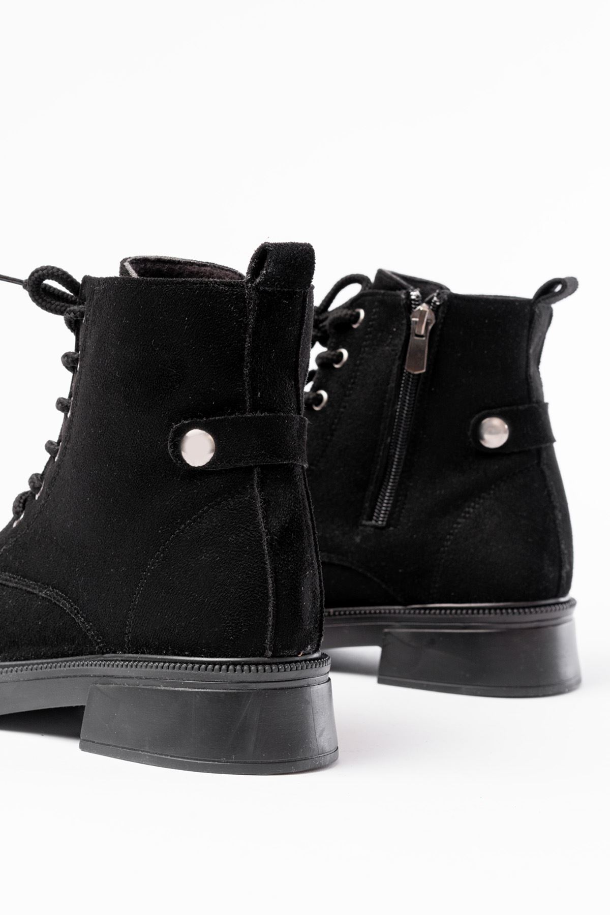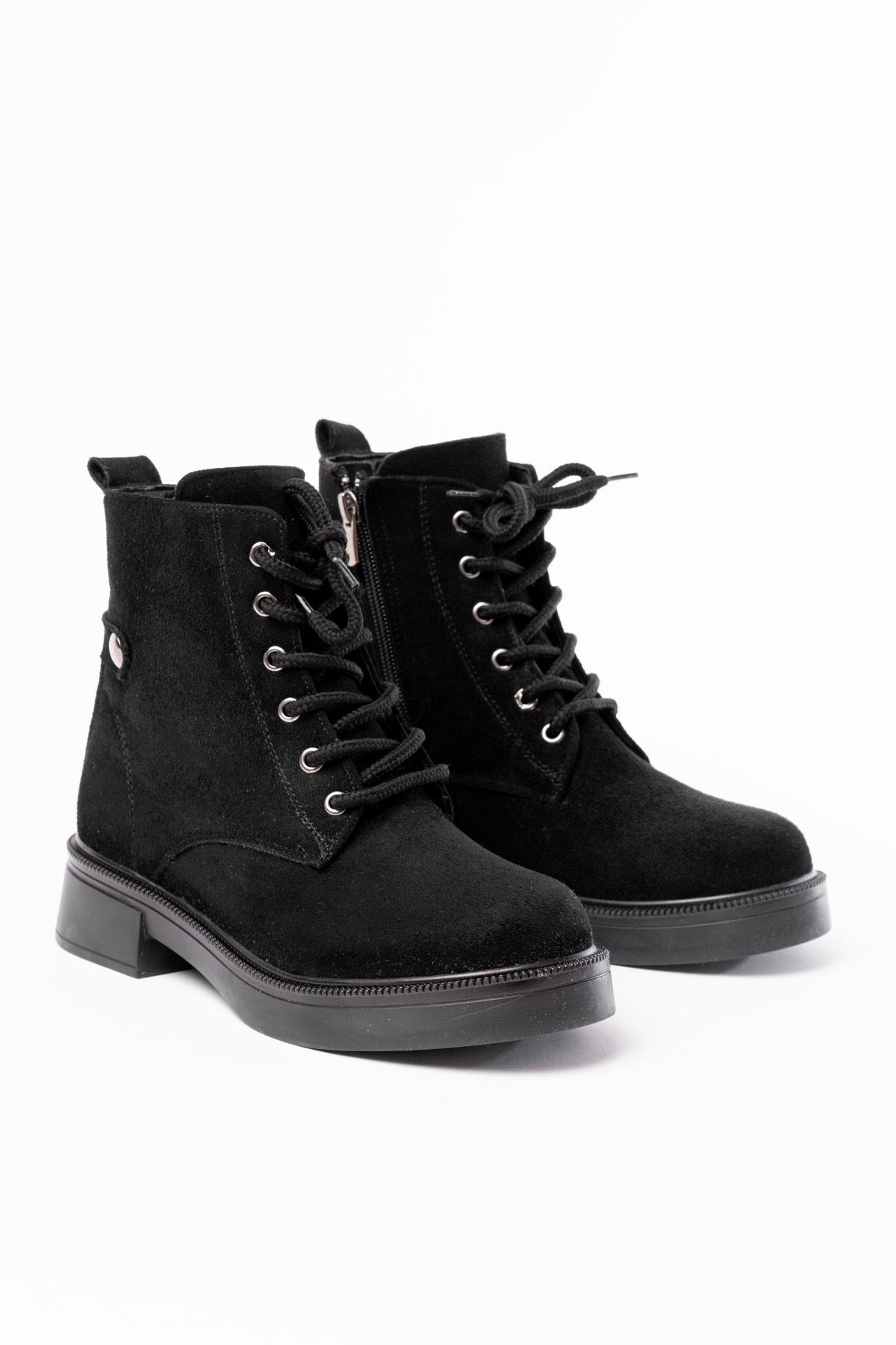 02-2003 Siyah Süet Bağcıklı Fermuarlı Günlük Kadın Bot