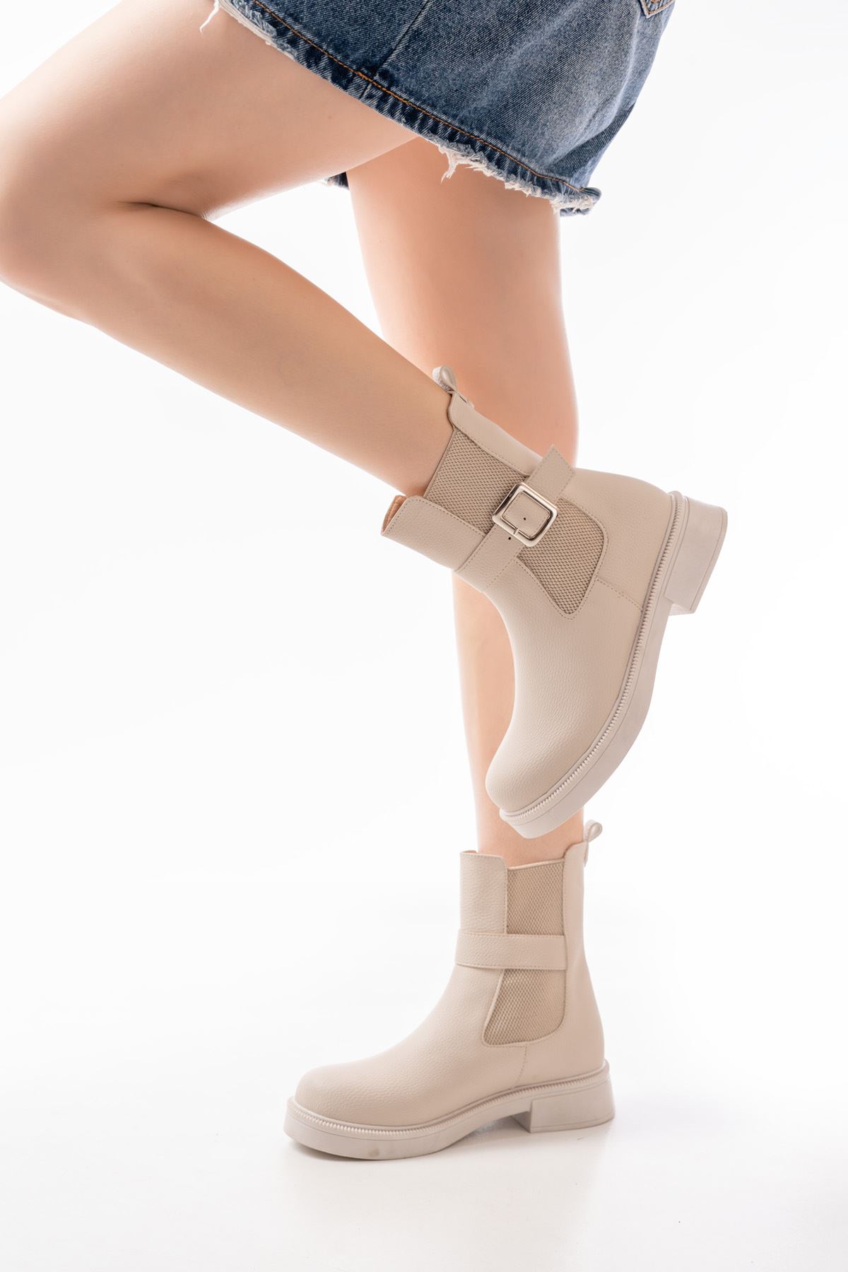 02-2004 Bej Toka Aksesuarlı Lastikli Günlük Kadın Bot