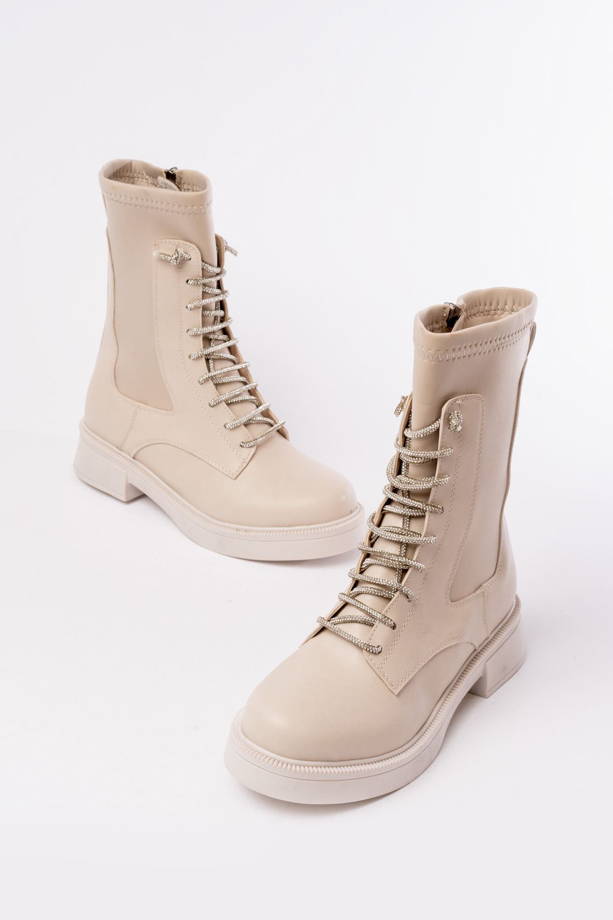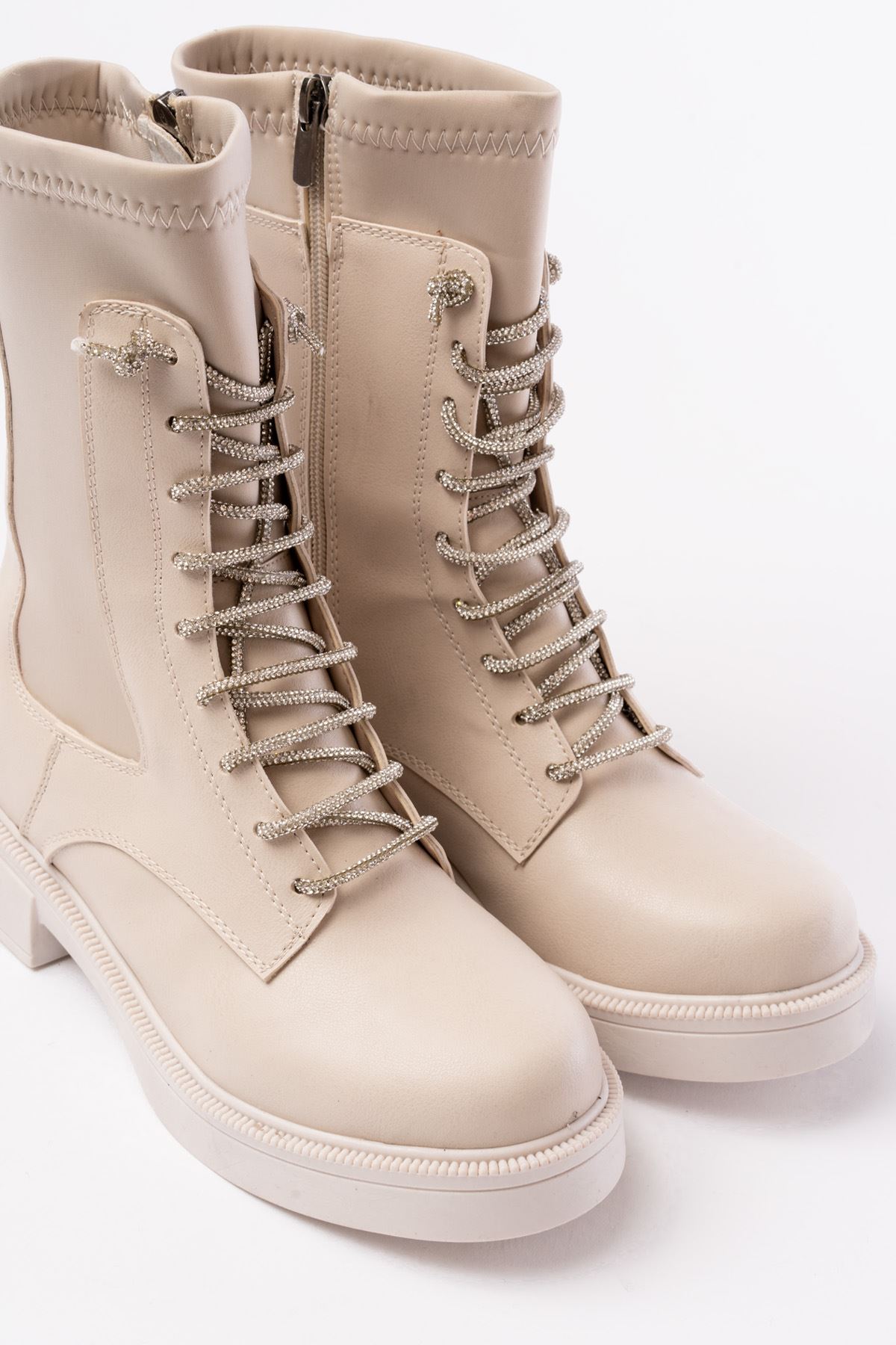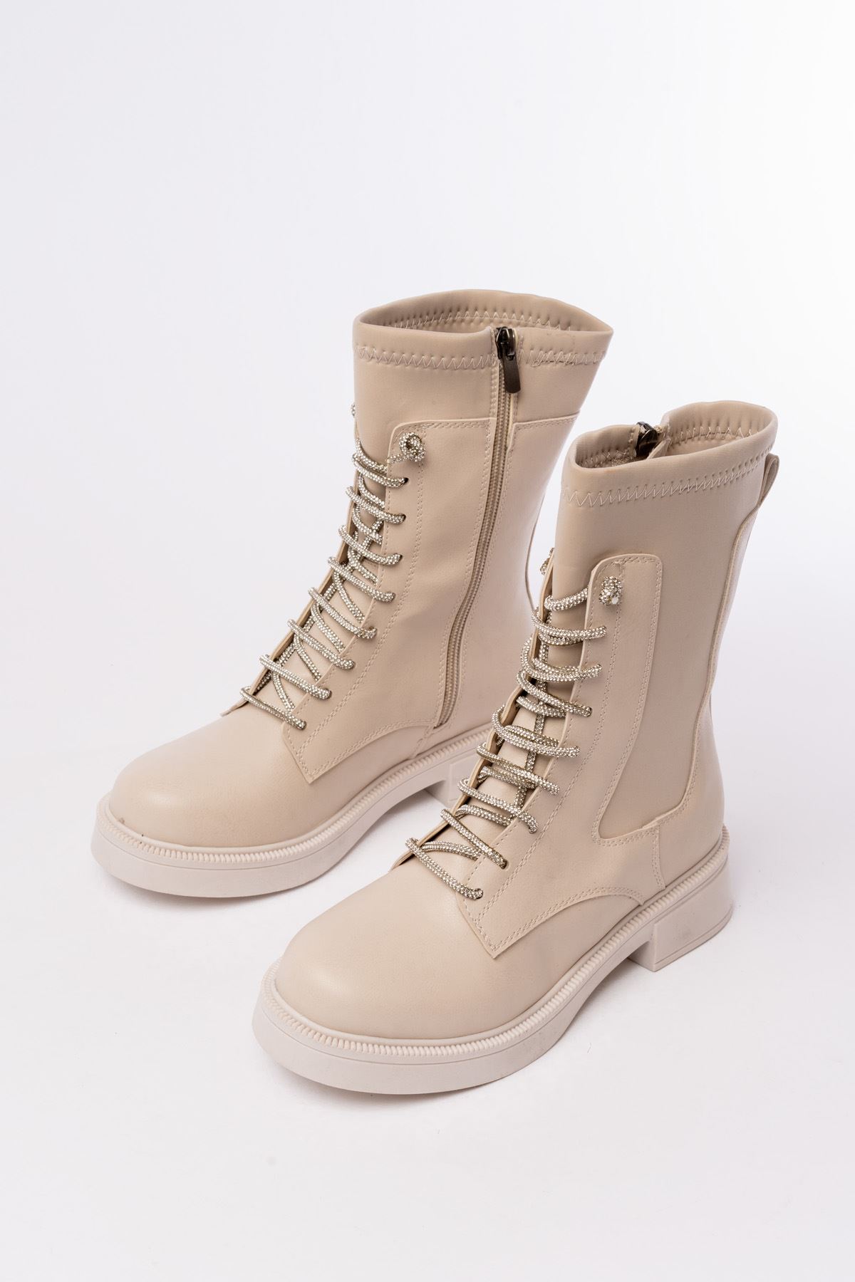 02-2006 Bej Bağcıklı Fermuarlı Günlük Kadın Bot