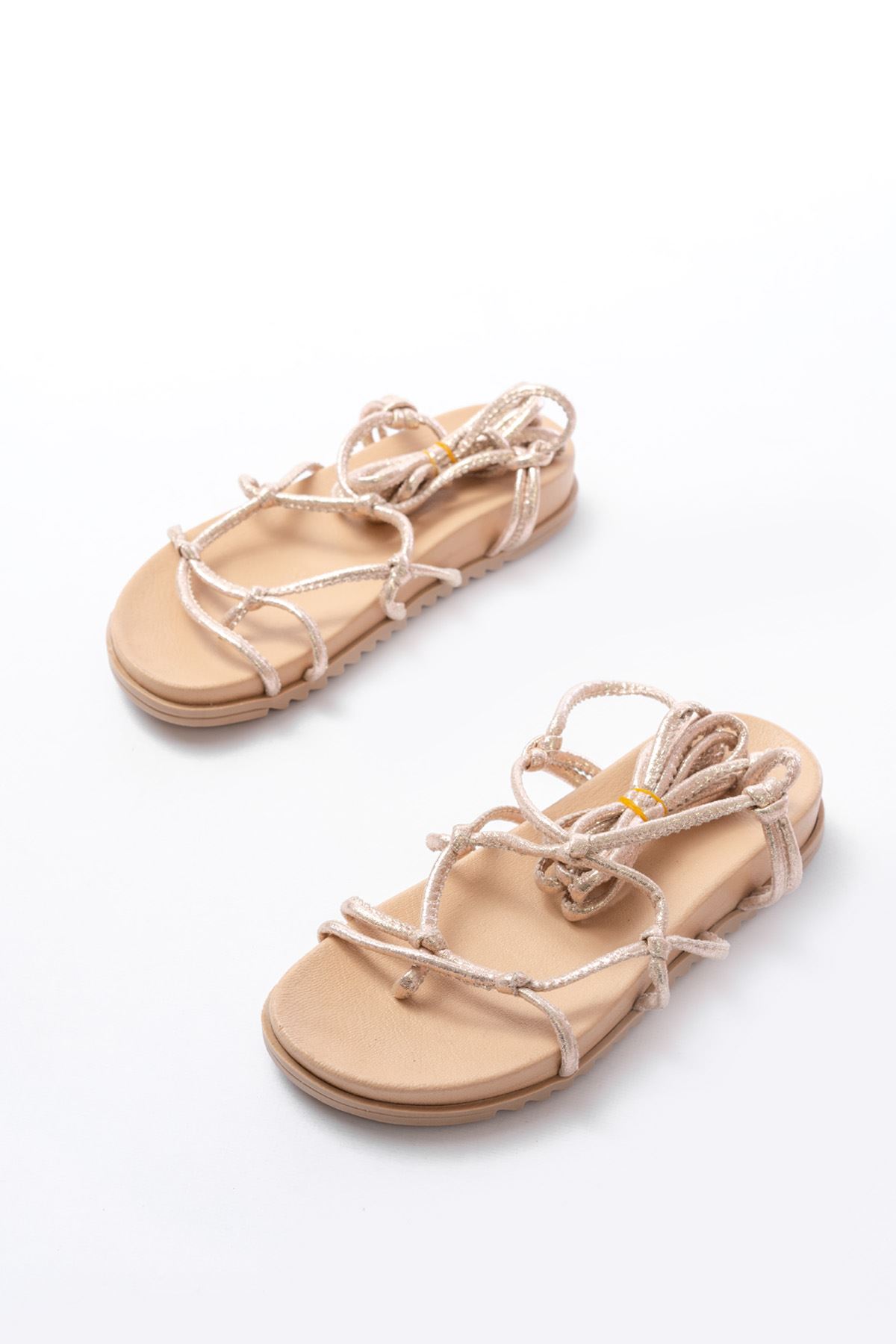 1001-1001 Rose Bilekten Bağcıklı Kadın Sandalet
