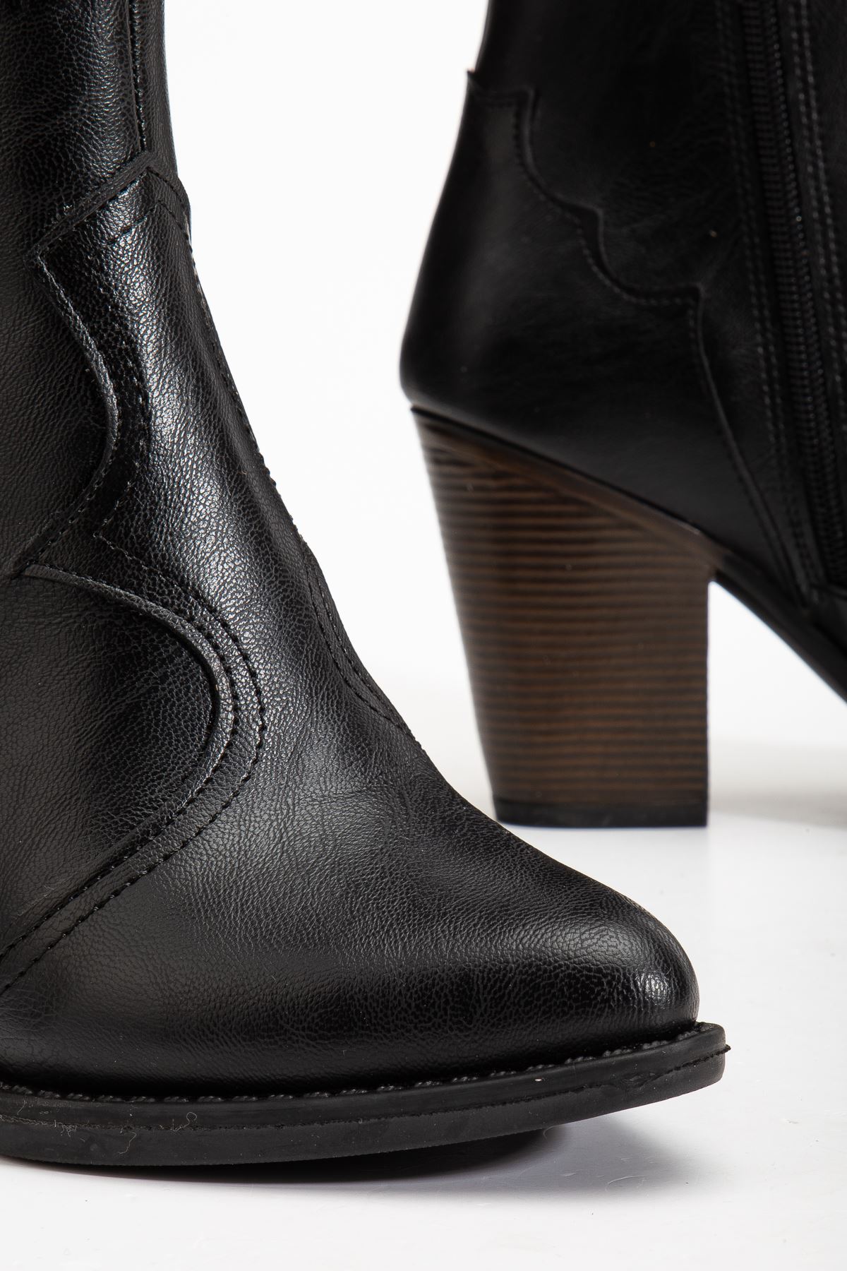 117 Siyah Kovboy Dikiş Detaylı Fermuarlı Yüksek Topuklu Günlük Kadın Bot