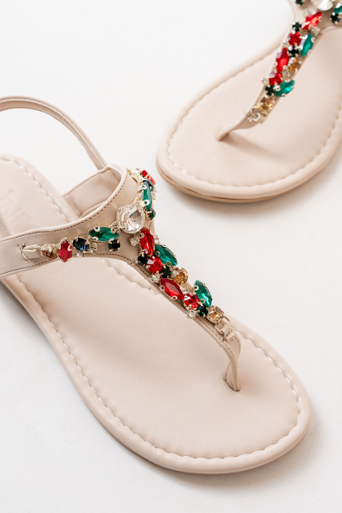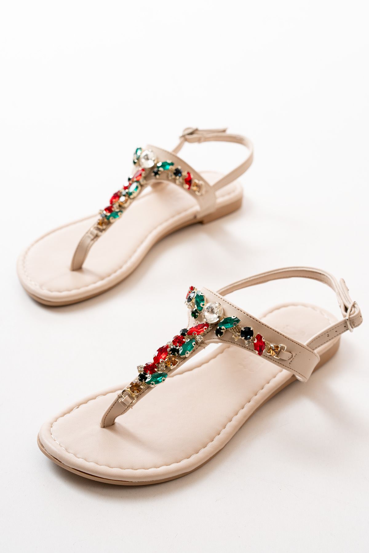152-1110 Bej Multi Taşlı Parmak Arası Kadın Sandalet
