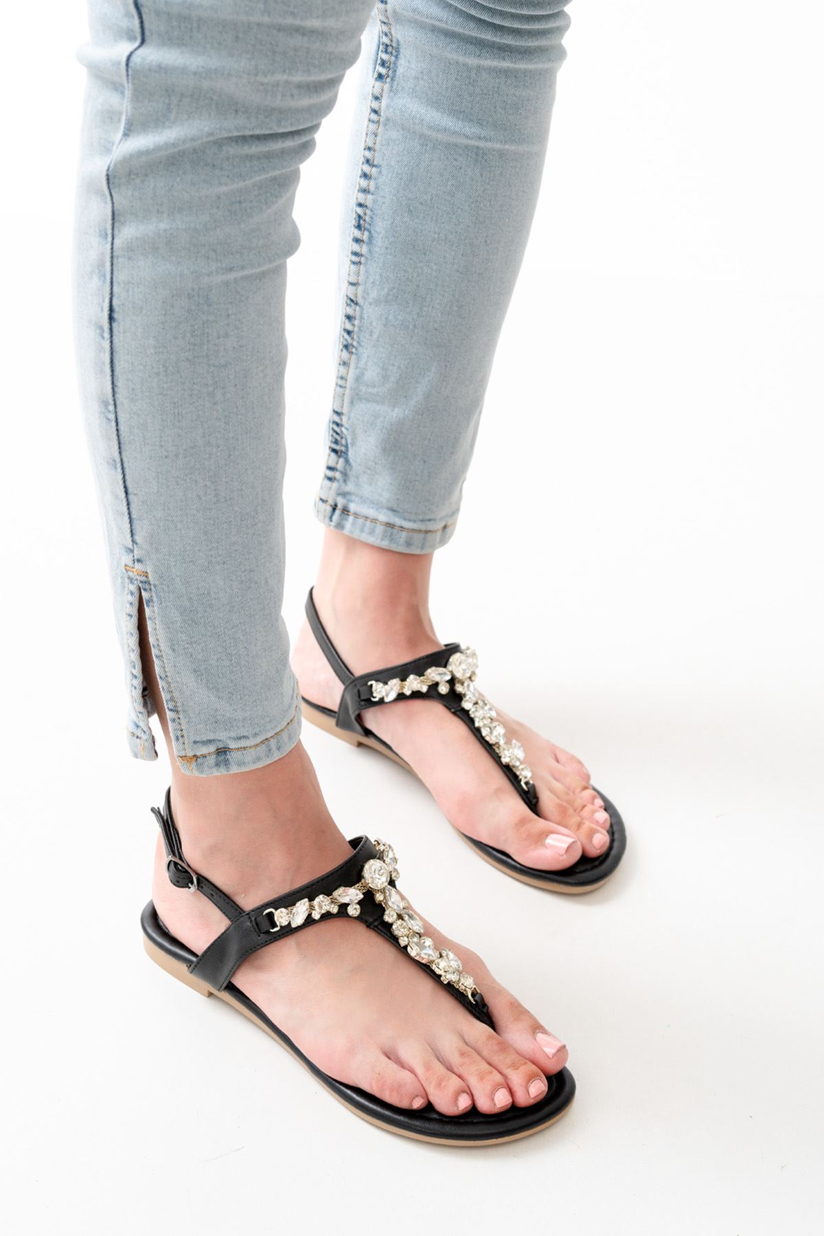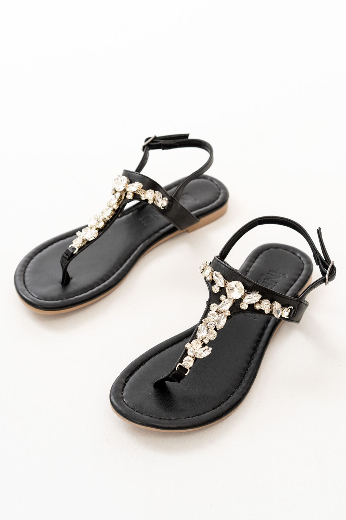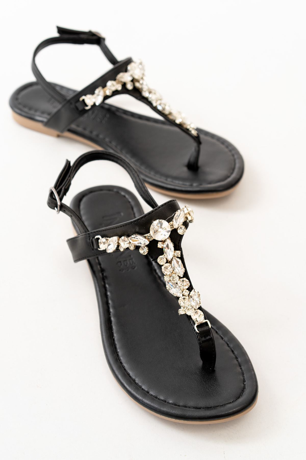 152-1110 Siyah Gümüş Taşlı Parmak Arası Kadın Sandalet