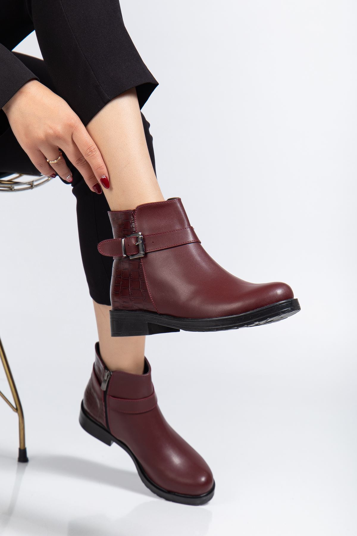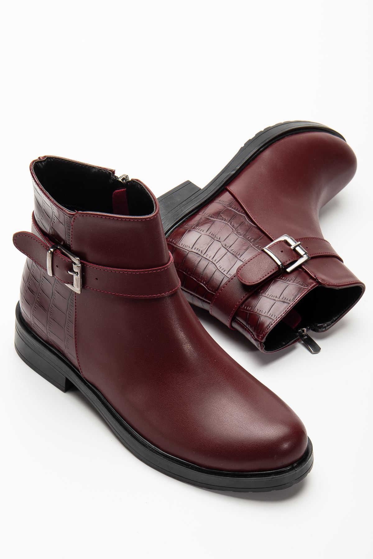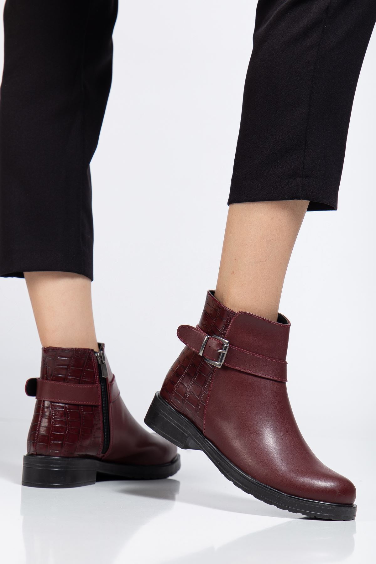 165-204/1 Bordo Kroko Toka Aksesuarlı Fermuarlı Günlük Kadın Bot