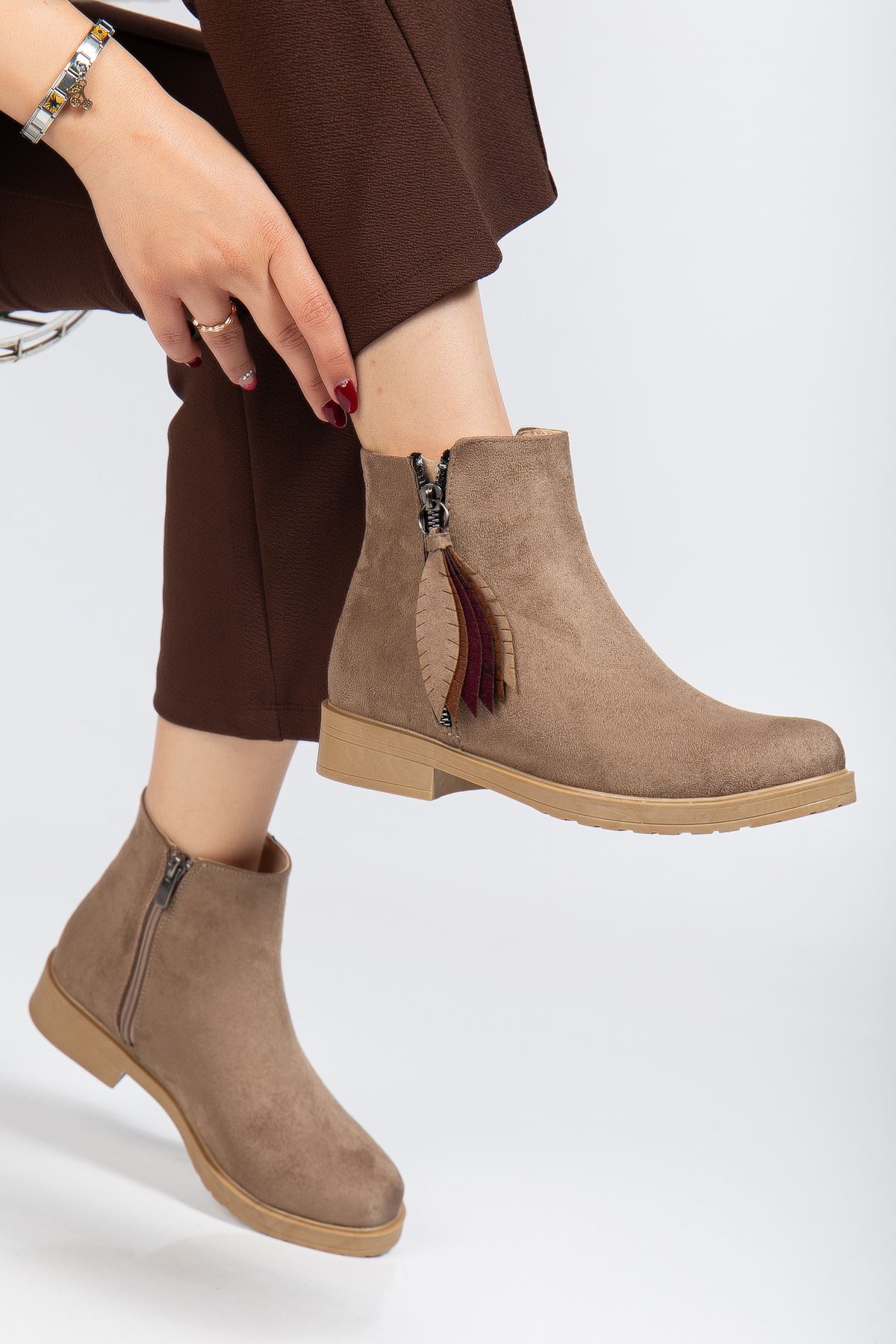165-205 Vizon Süet Yaprak Desenli Fermuarlı Günlük Kadın Bot