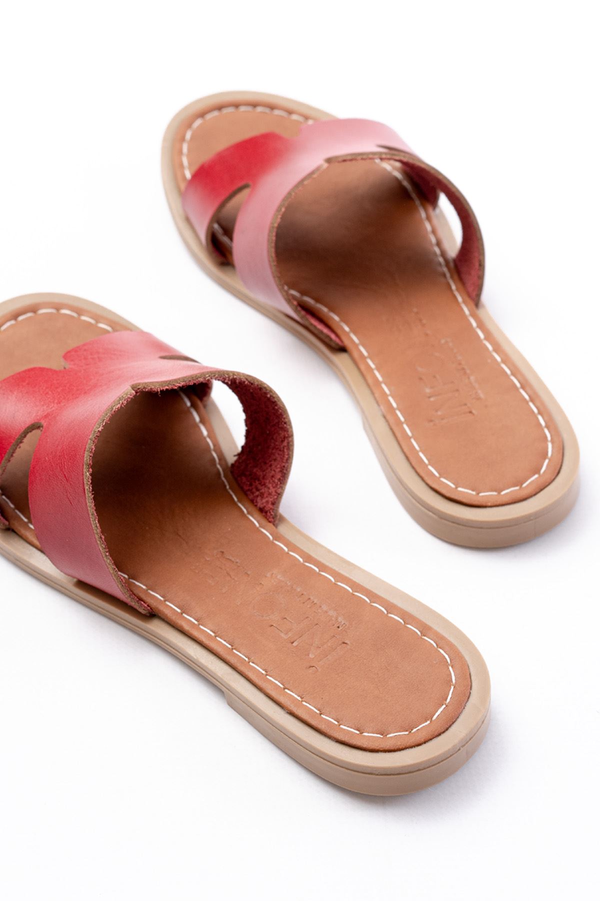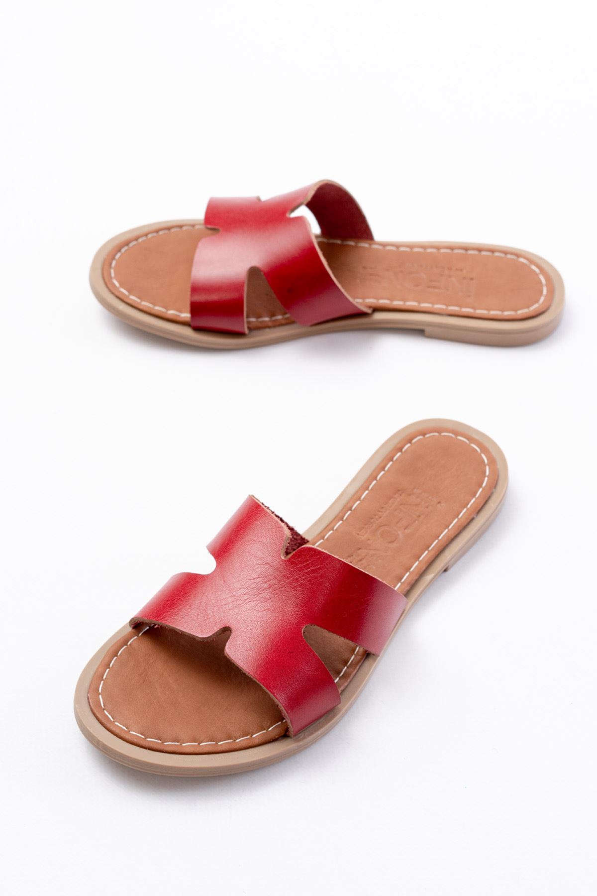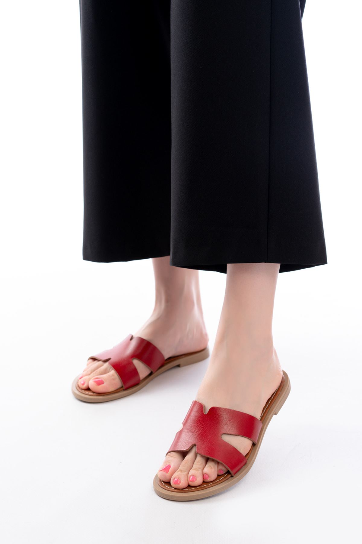 169-6100 Kırmızı Ortopedik Hakiki Deri Kadın Terlik