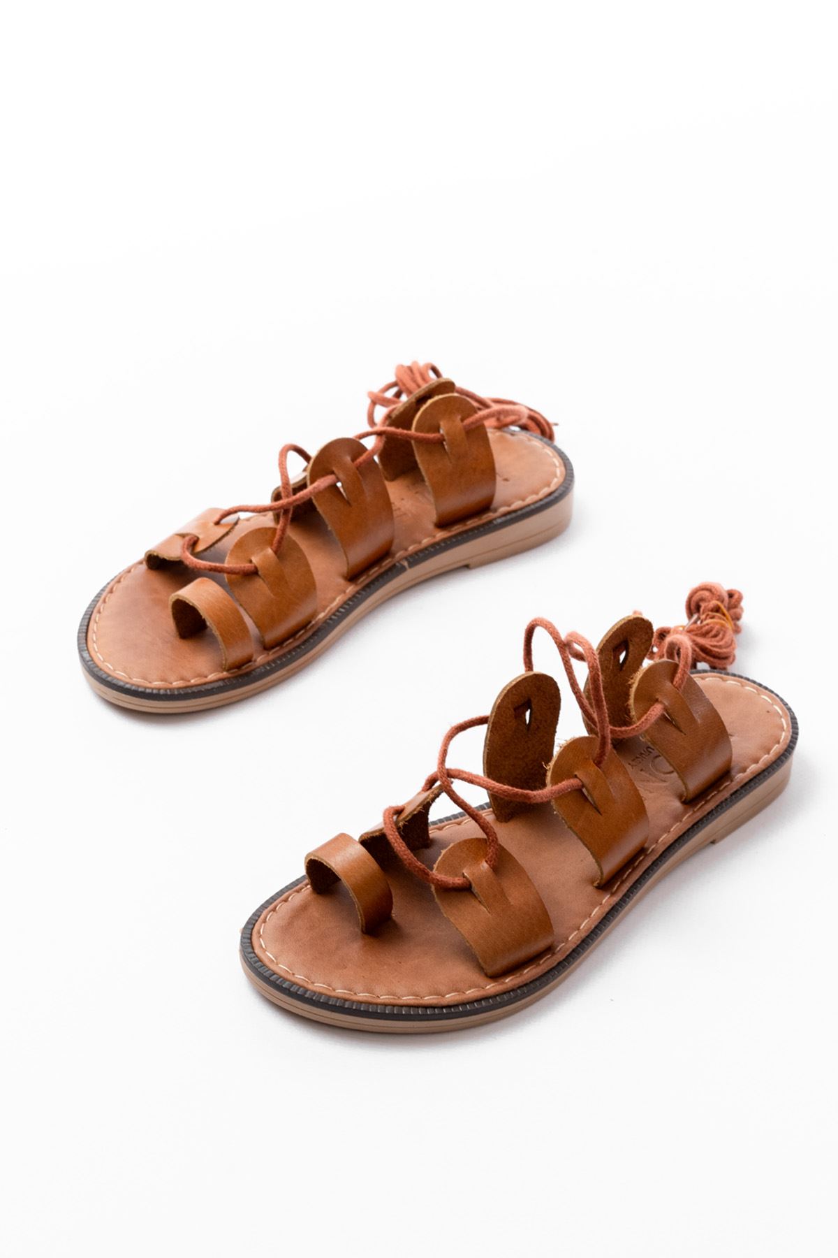 205-01 Taba Bilekten Bağlamalı Ortopedik Hakiki Deri Kadın Sandalet