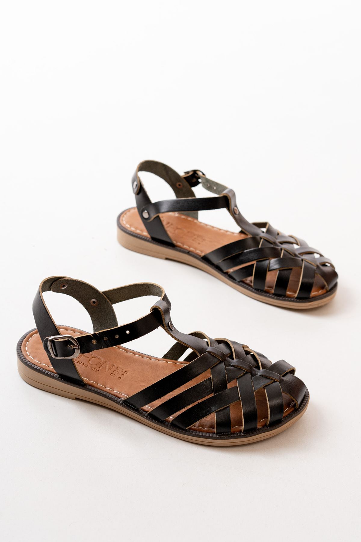205-02 Siyah Ortopedik Hakiki Deri Kadın Sandalet