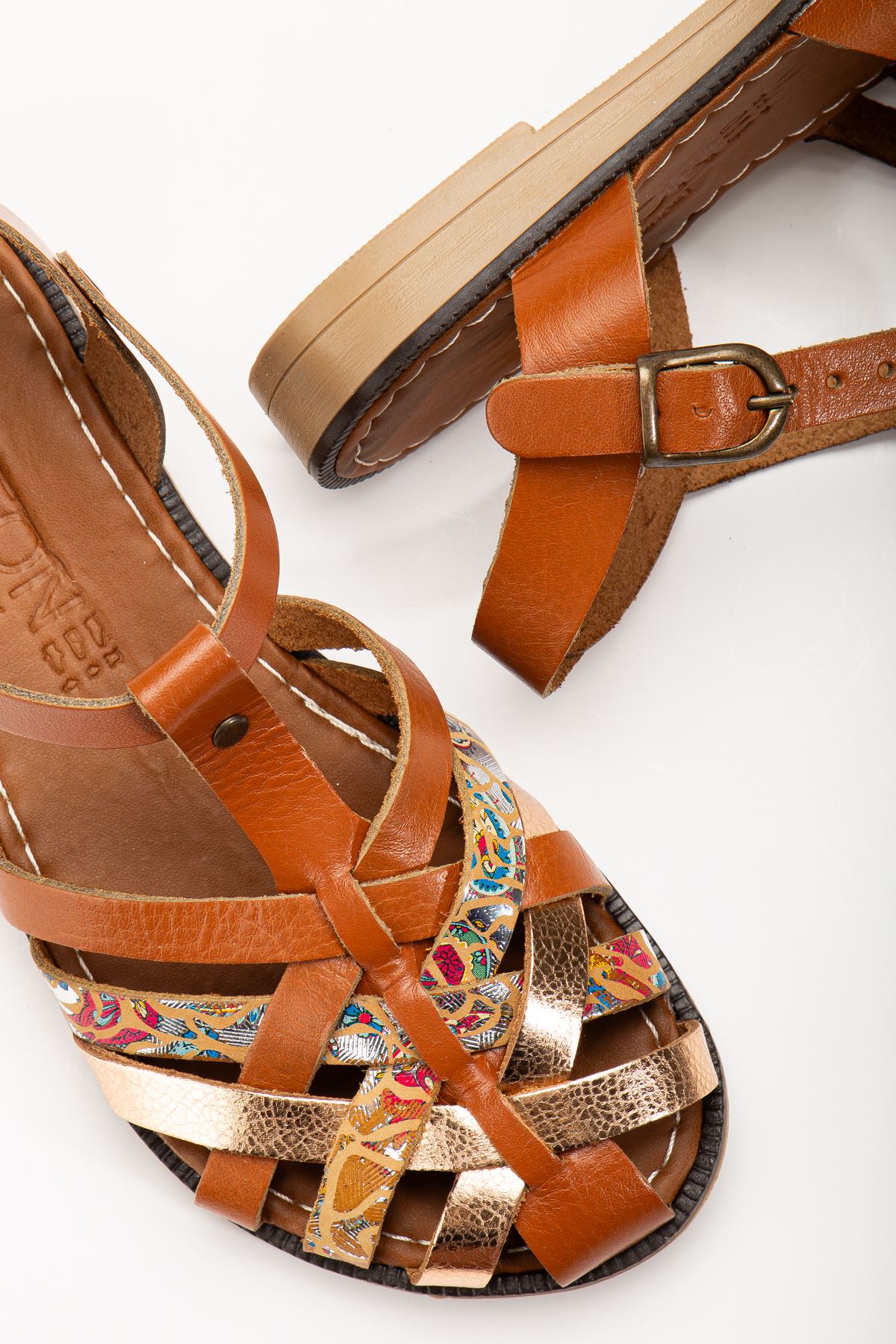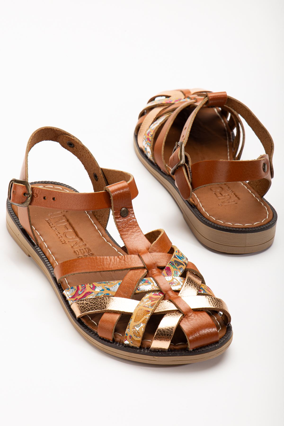 205-02 Taba Garni Ortopedik Hakiki Deri Kadın Sandalet