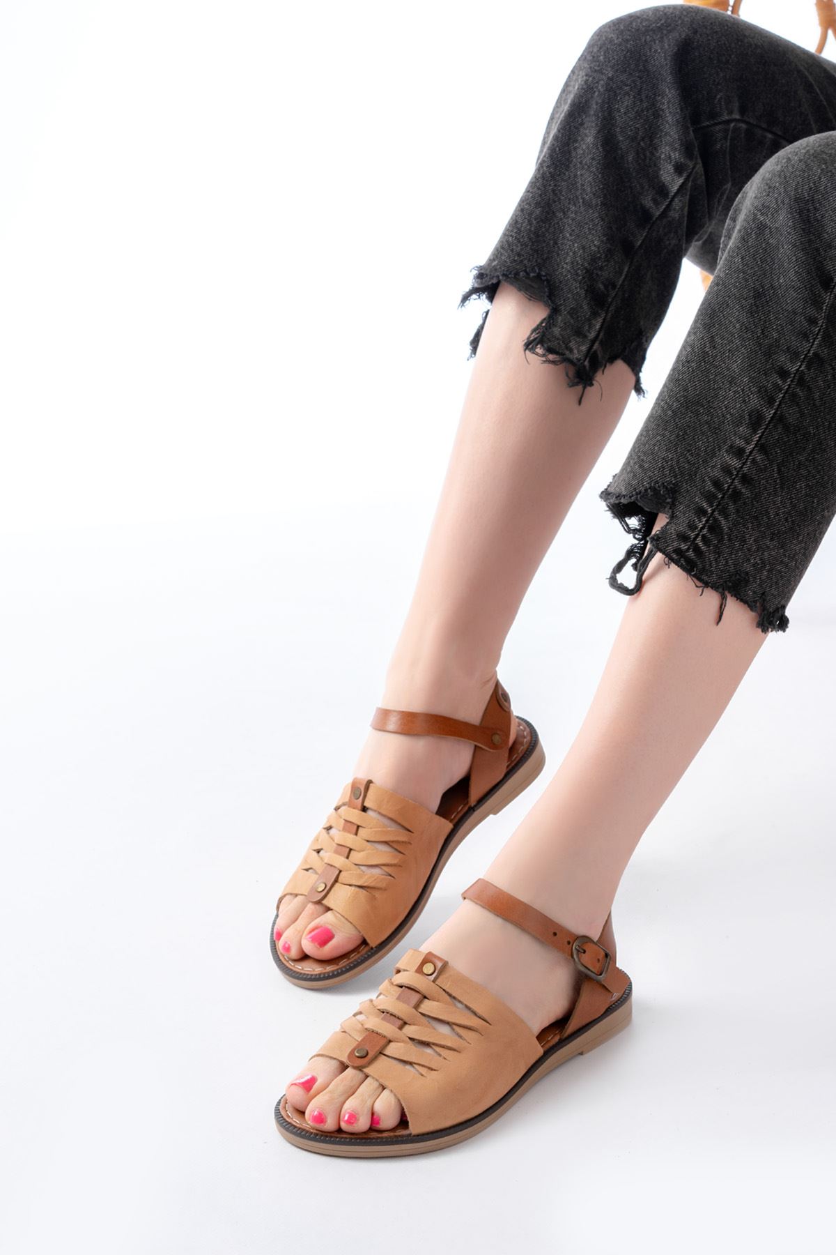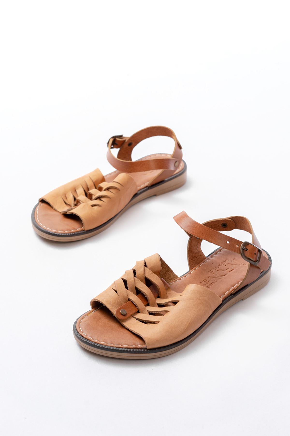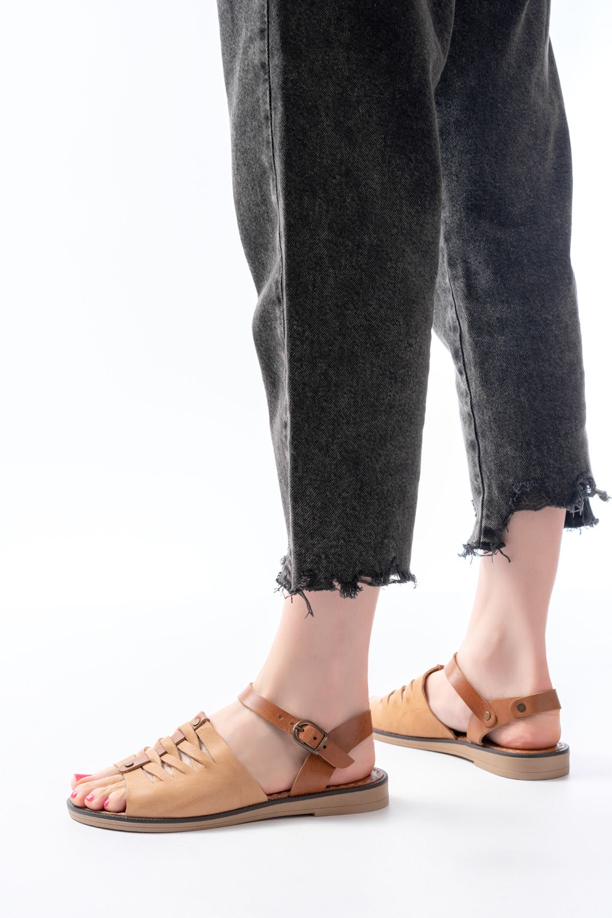 205-029 Bej Ortopedik Hakiki Deri Kadın Sandalet
