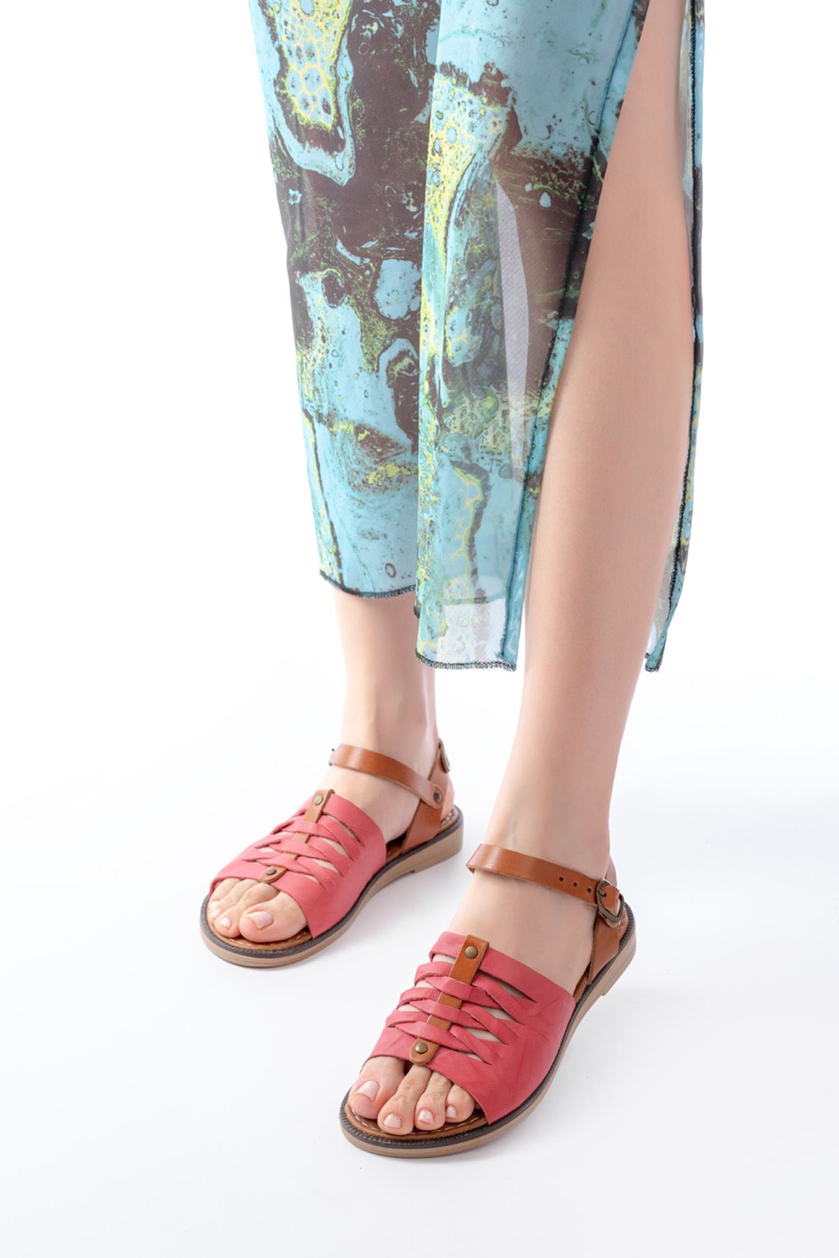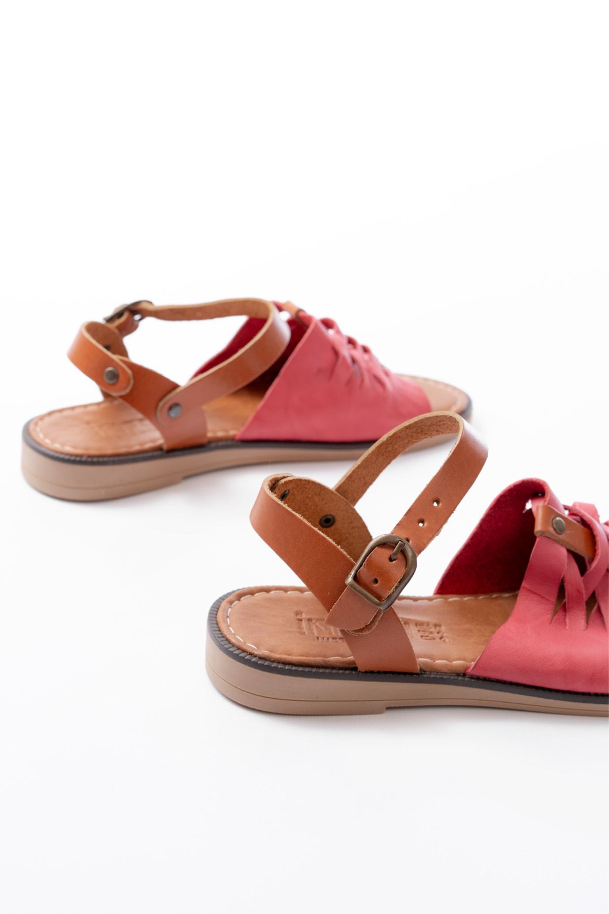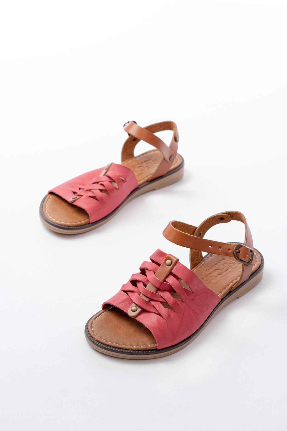 205-029 Fuşya Ortopedik Hakiki Deri Kadın Sandalet