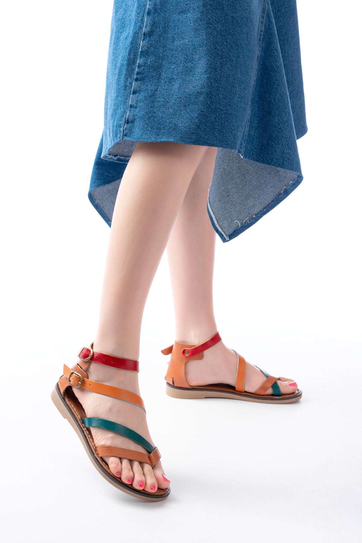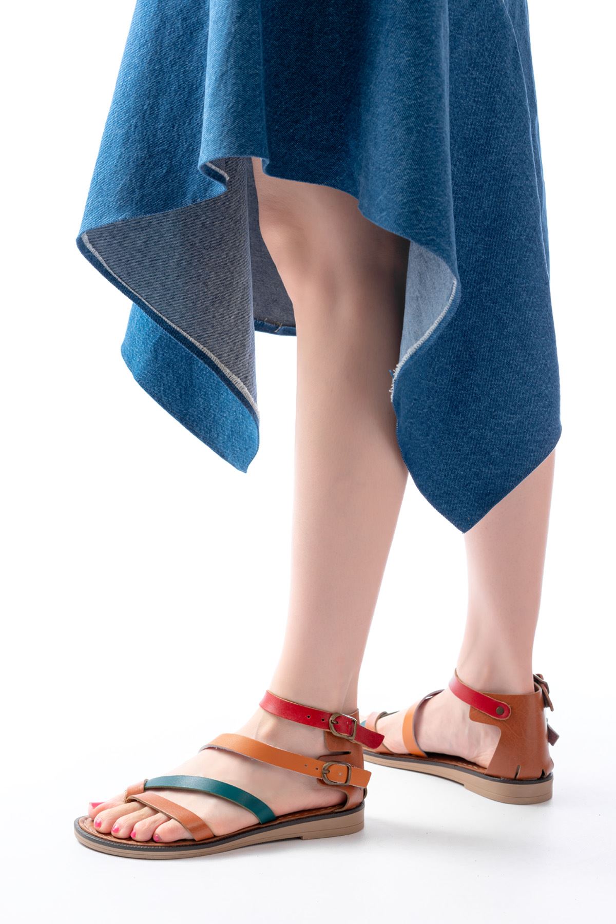 205-039 Taba Multi Bilekten Bağlamalı Parmak Arası Kadın Sandalet
