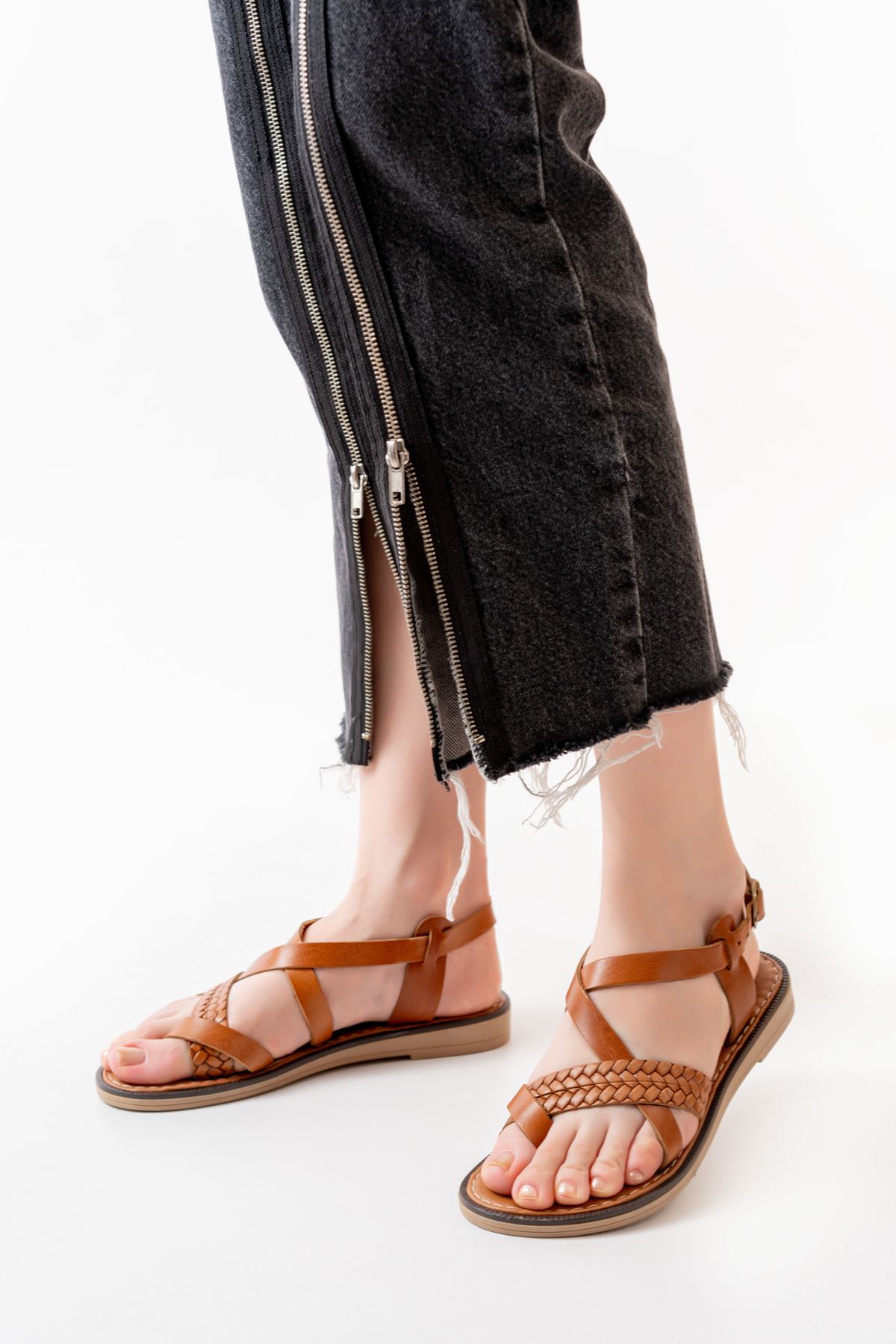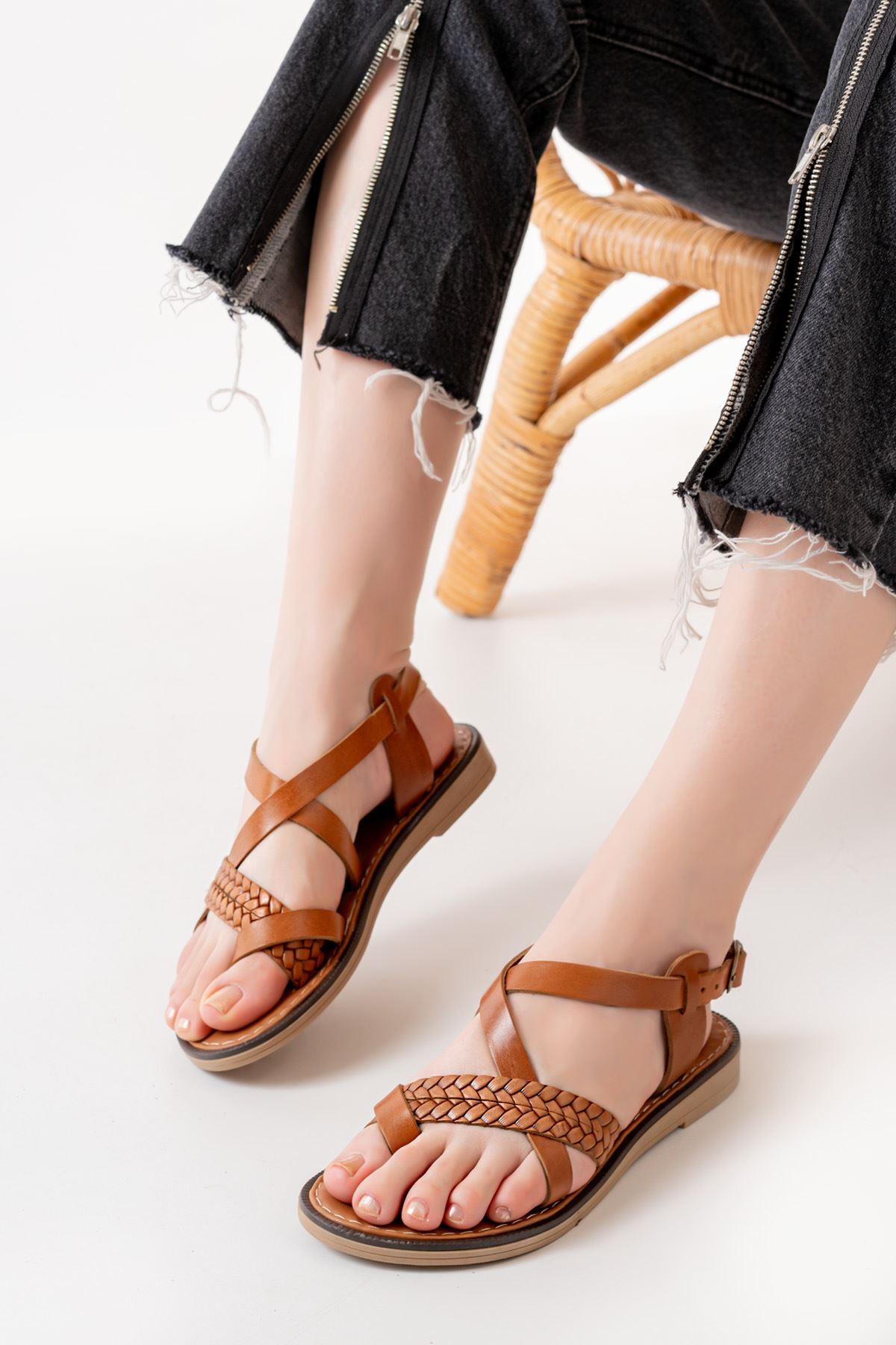 205-09 Taba Ortopedik Hakiki Deri Kadın Sandalet
