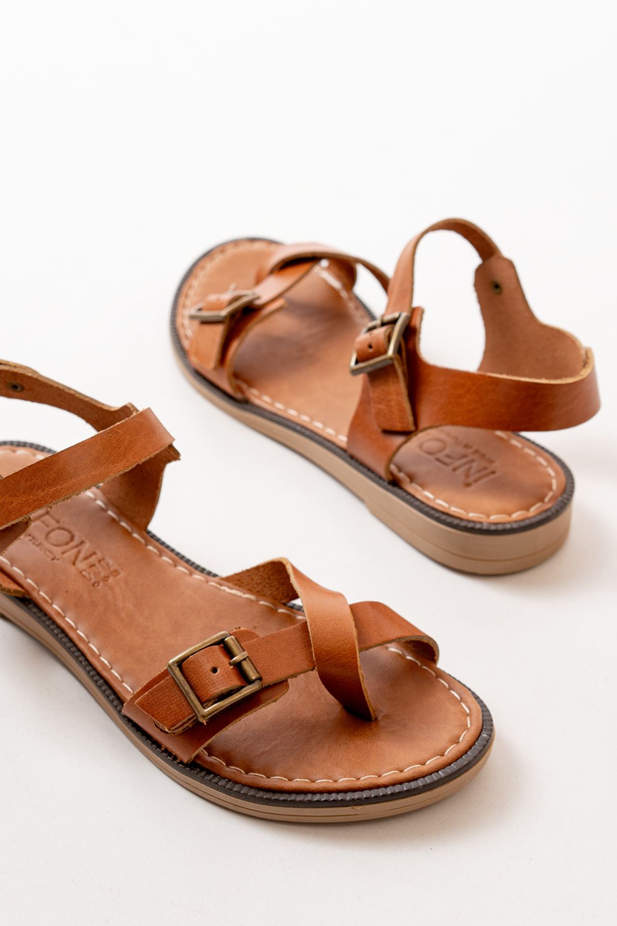 205-091 Taba Ortopedik Hakiki Deri Kadın Sandalet