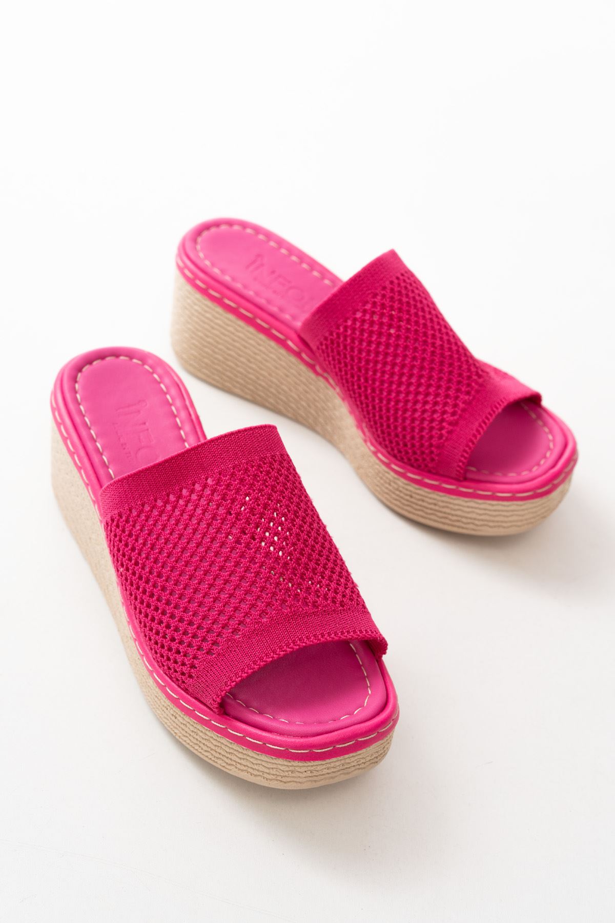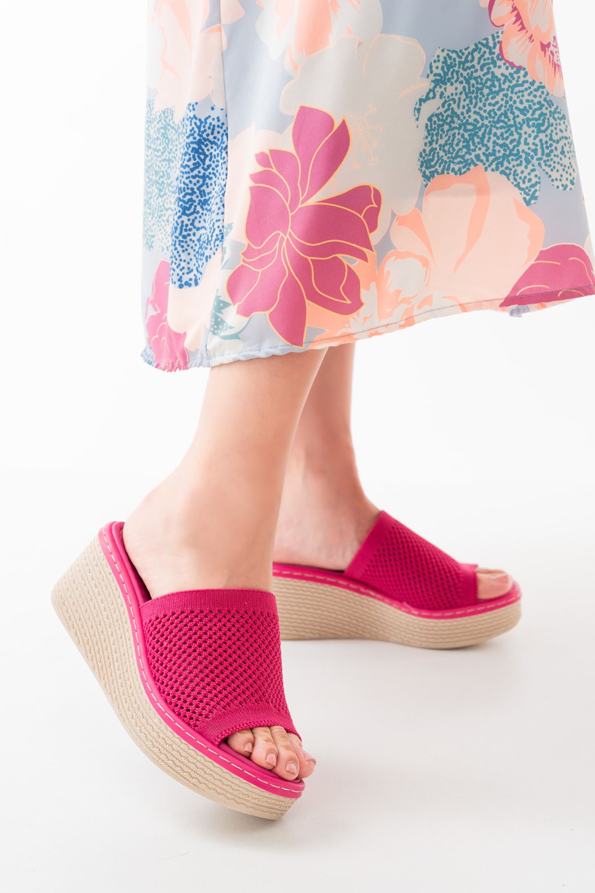 232-460 Fuşya Triko Günlük Ortopedik Dolgu Topuk Kadın Terlik