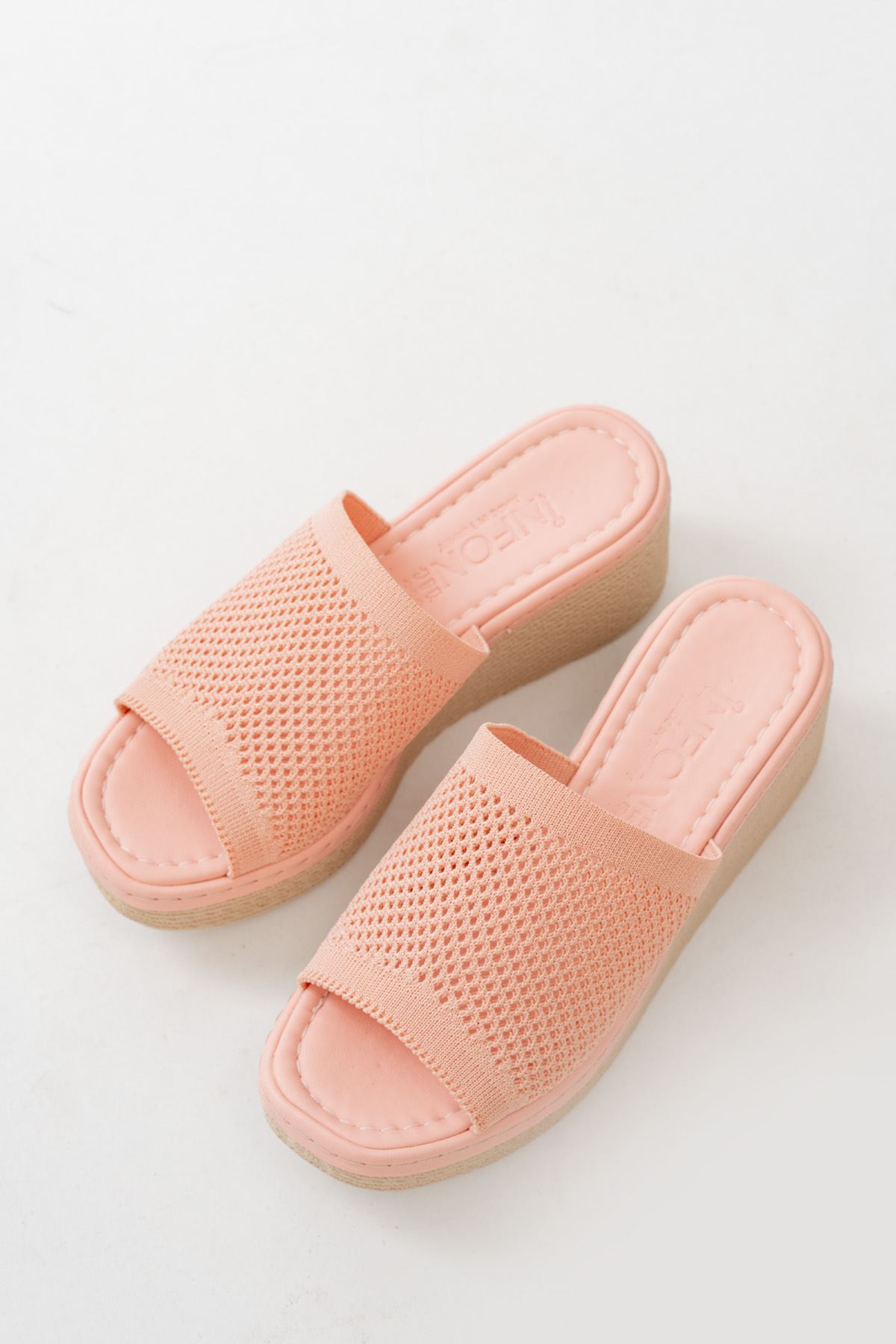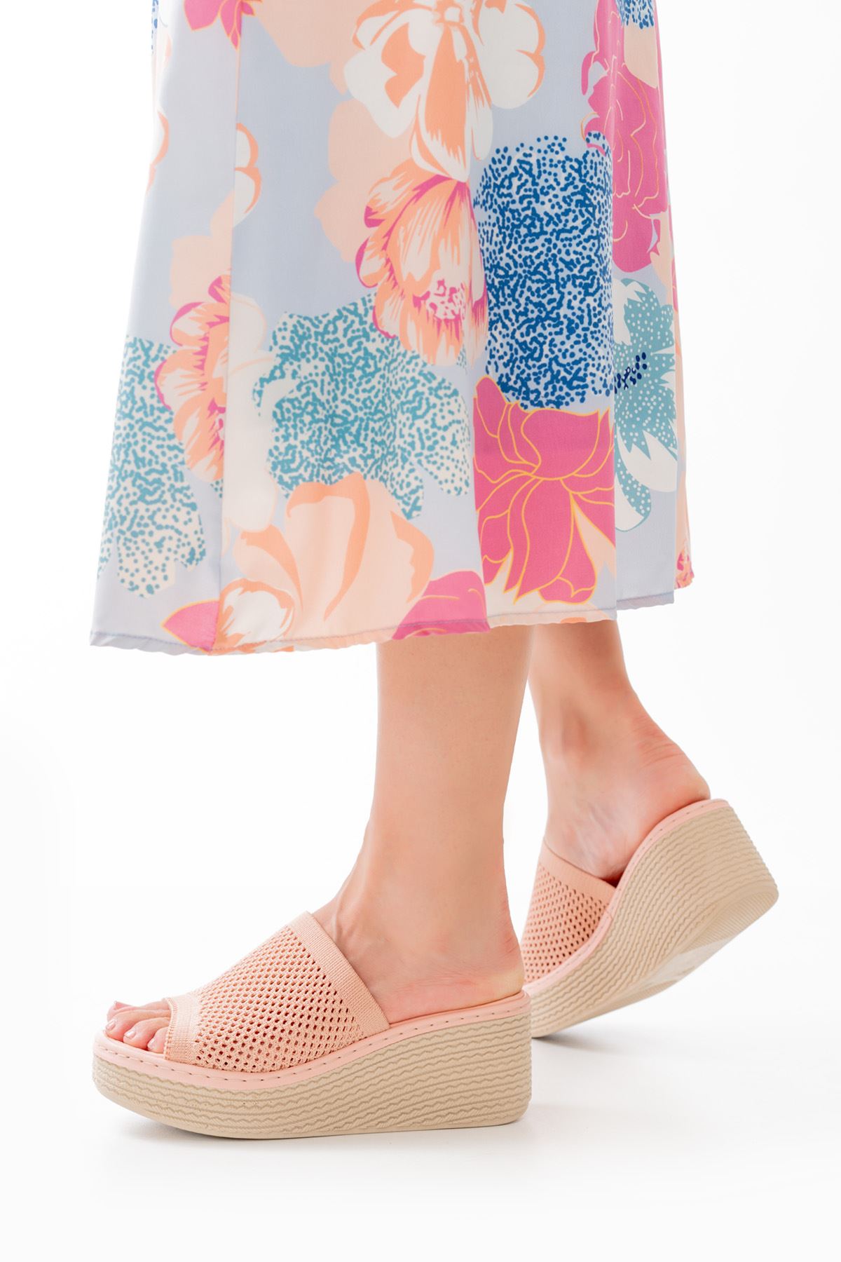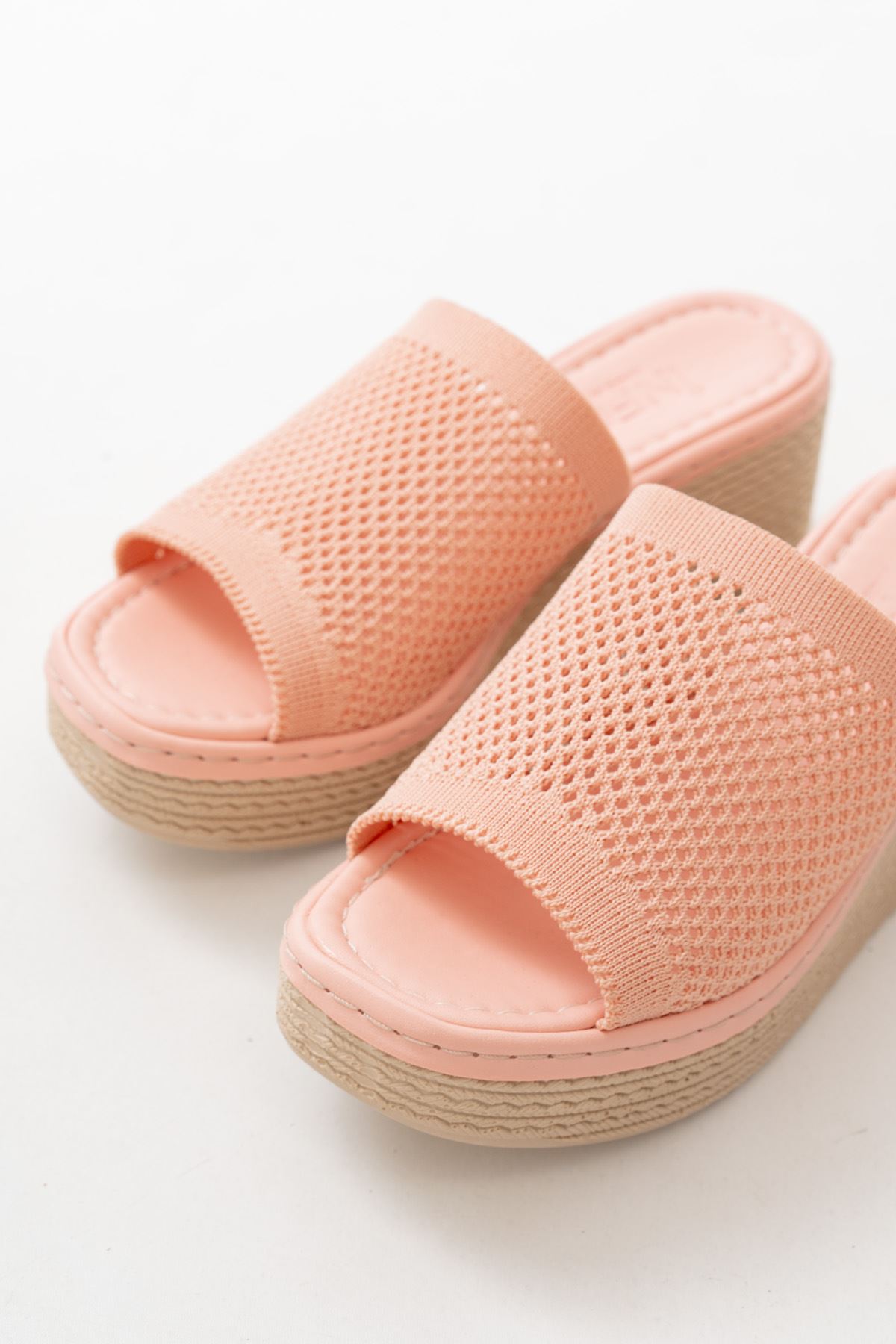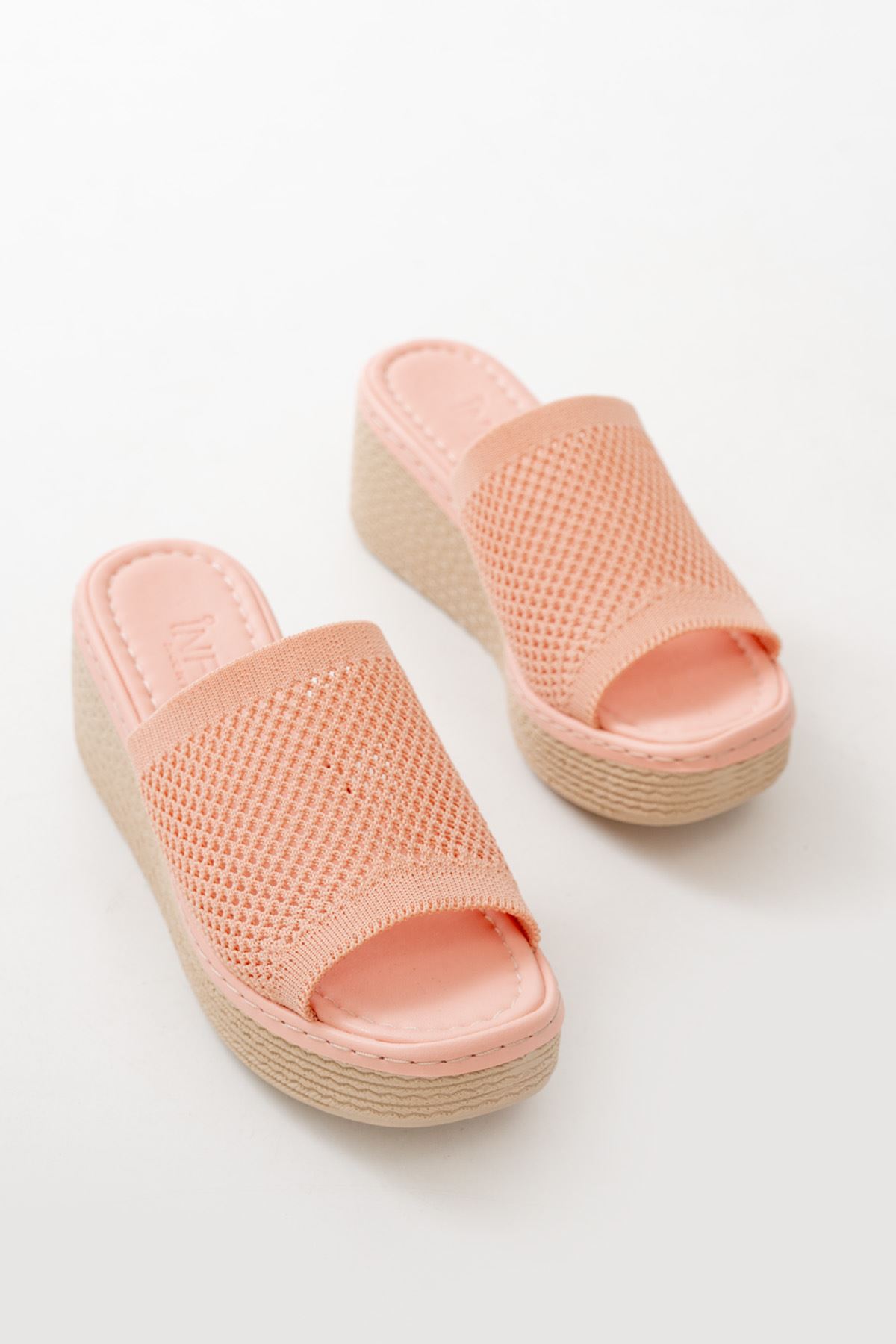 232-460 Pudra Triko Günlük Ortopedik Dolgu Topuk Kadın Terlik