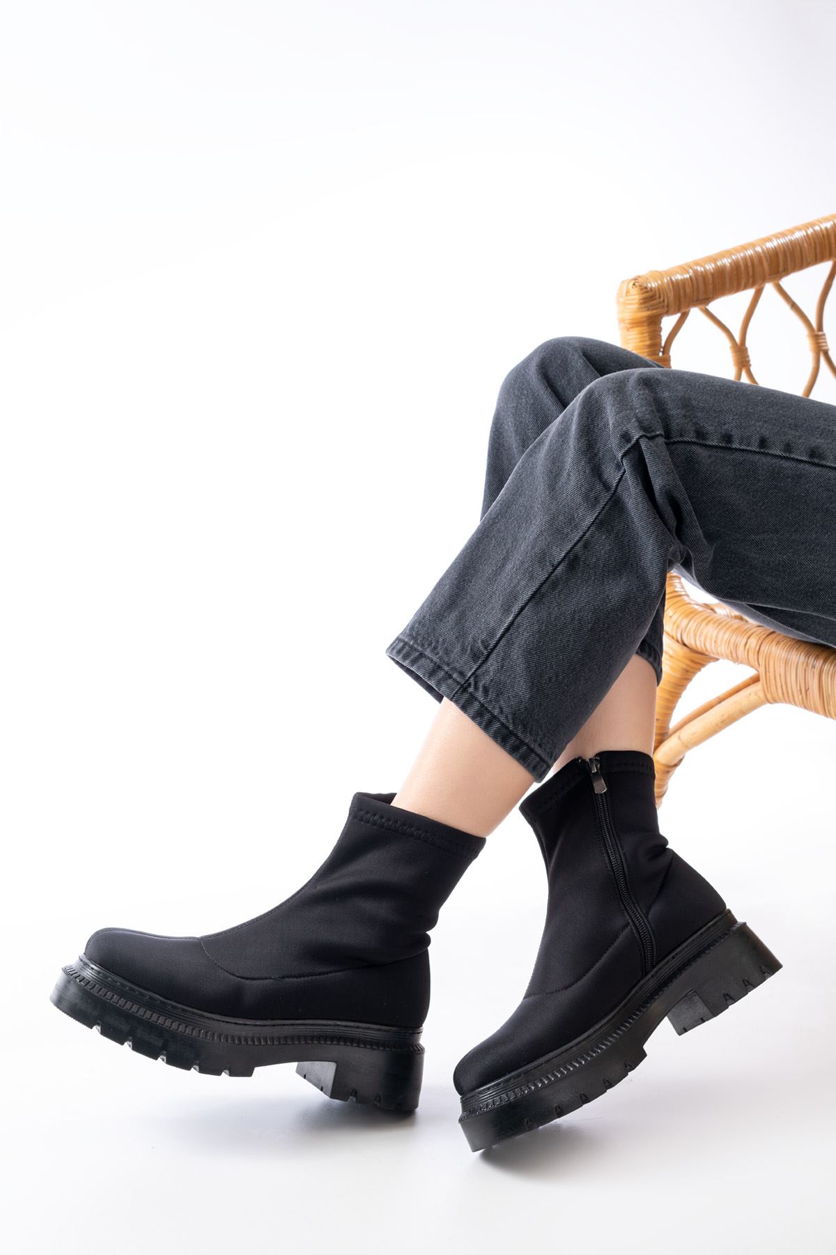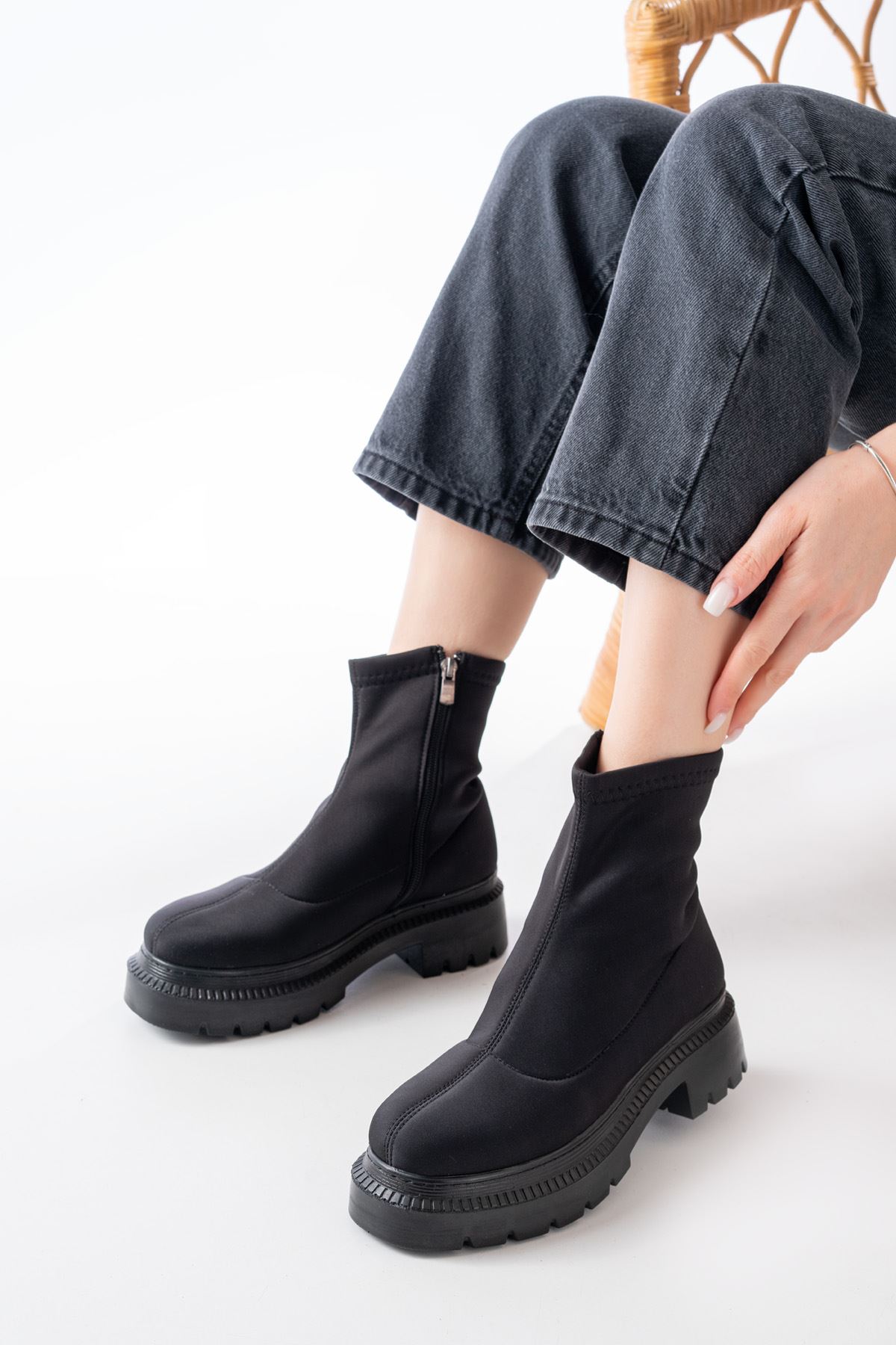 236-2011 Siyah Dalgıç Fermuarlı Günlük Kadın Bot