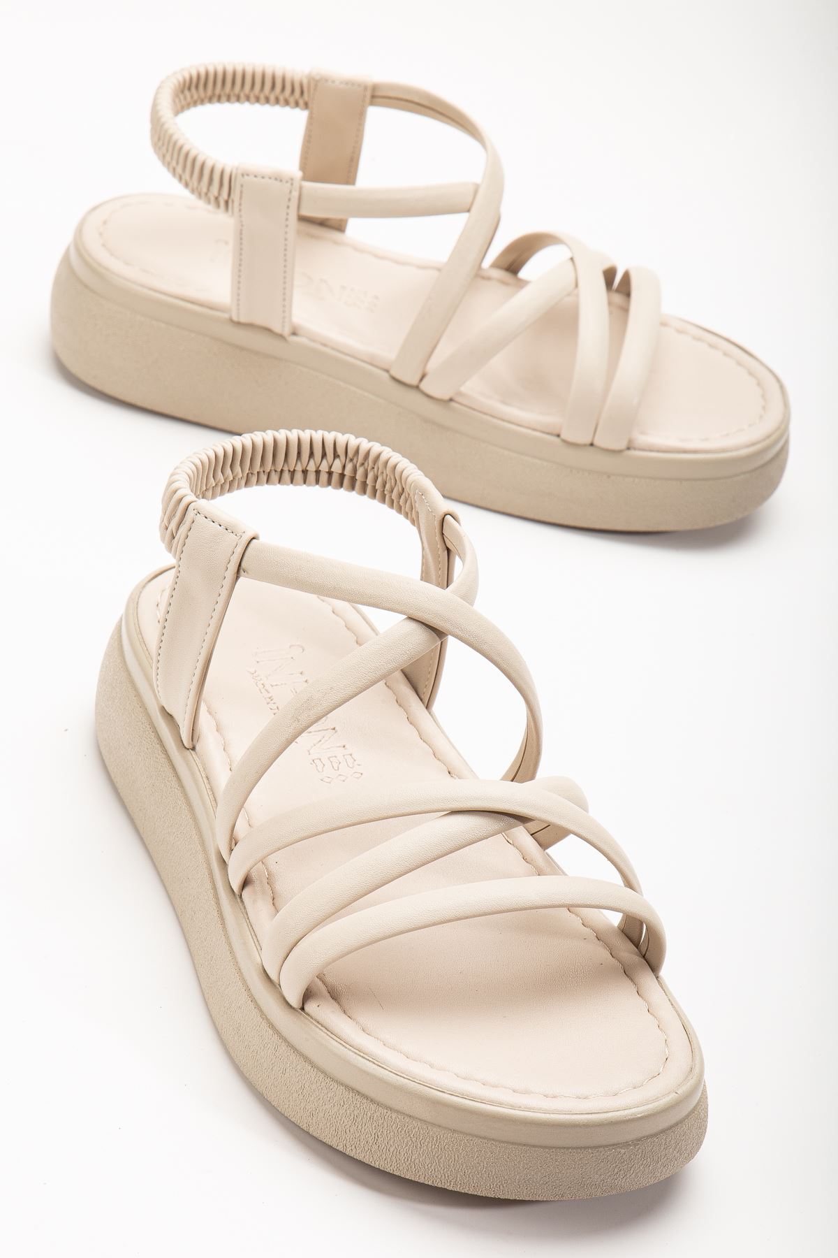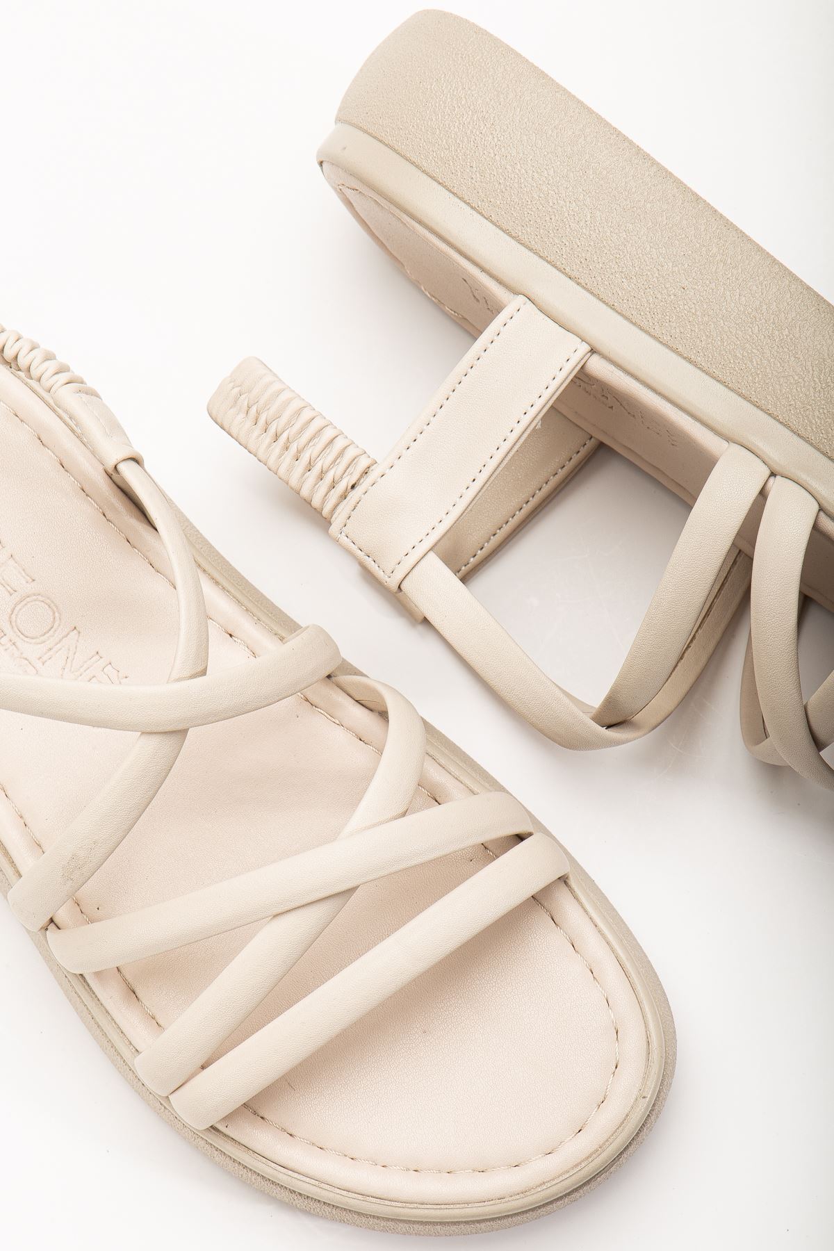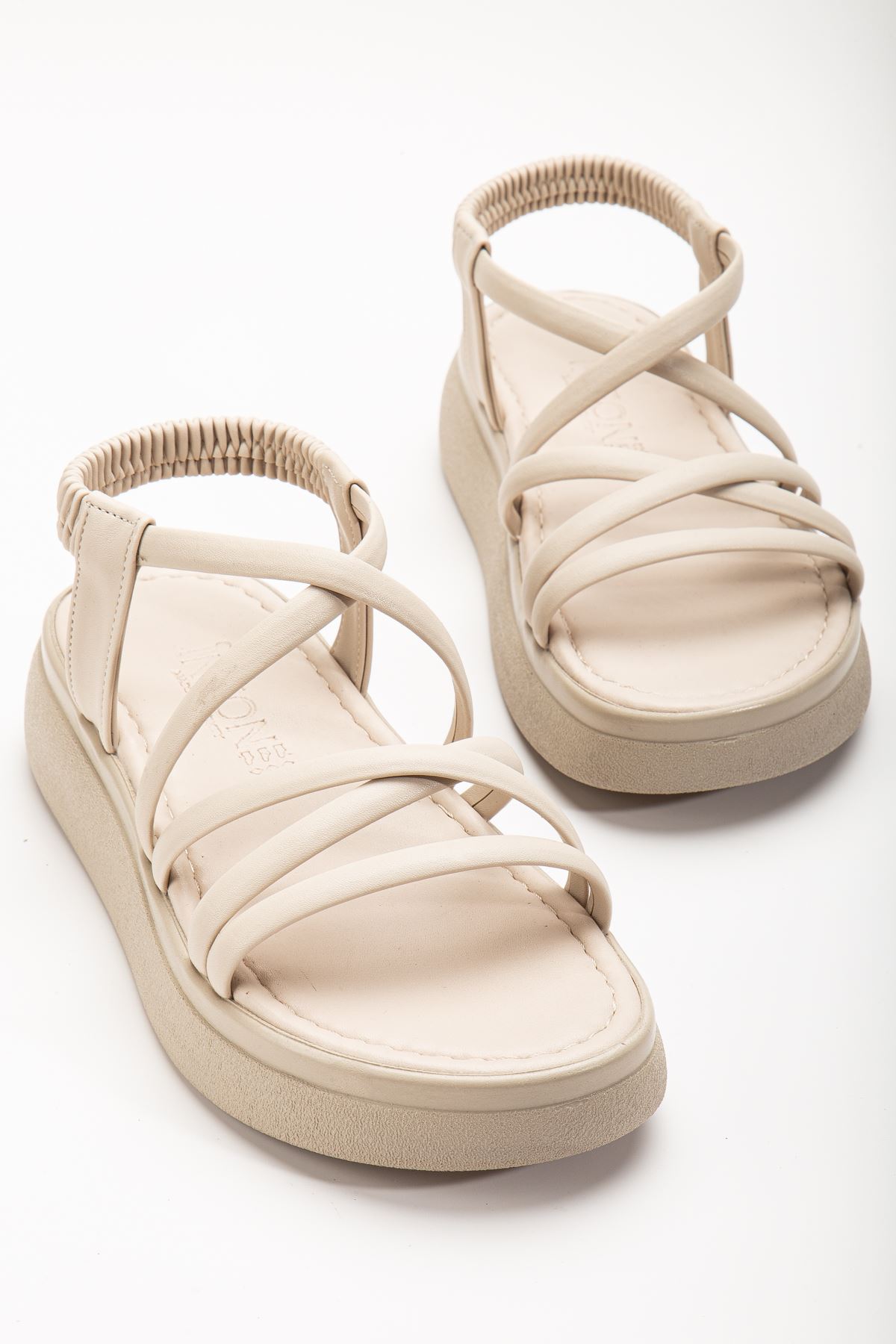 24413-841 Bej Dolgu Topuk Kadın Sandalet