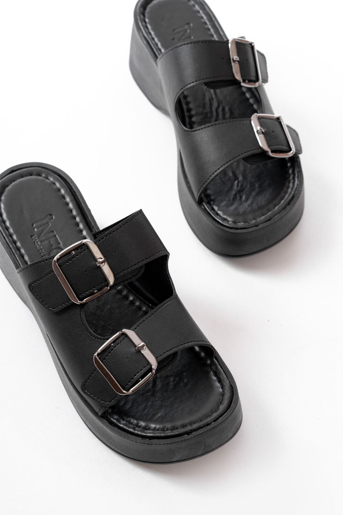 24414-574 Siyah Günlük Tokalı Dolgu Topuk Kadın Terlik