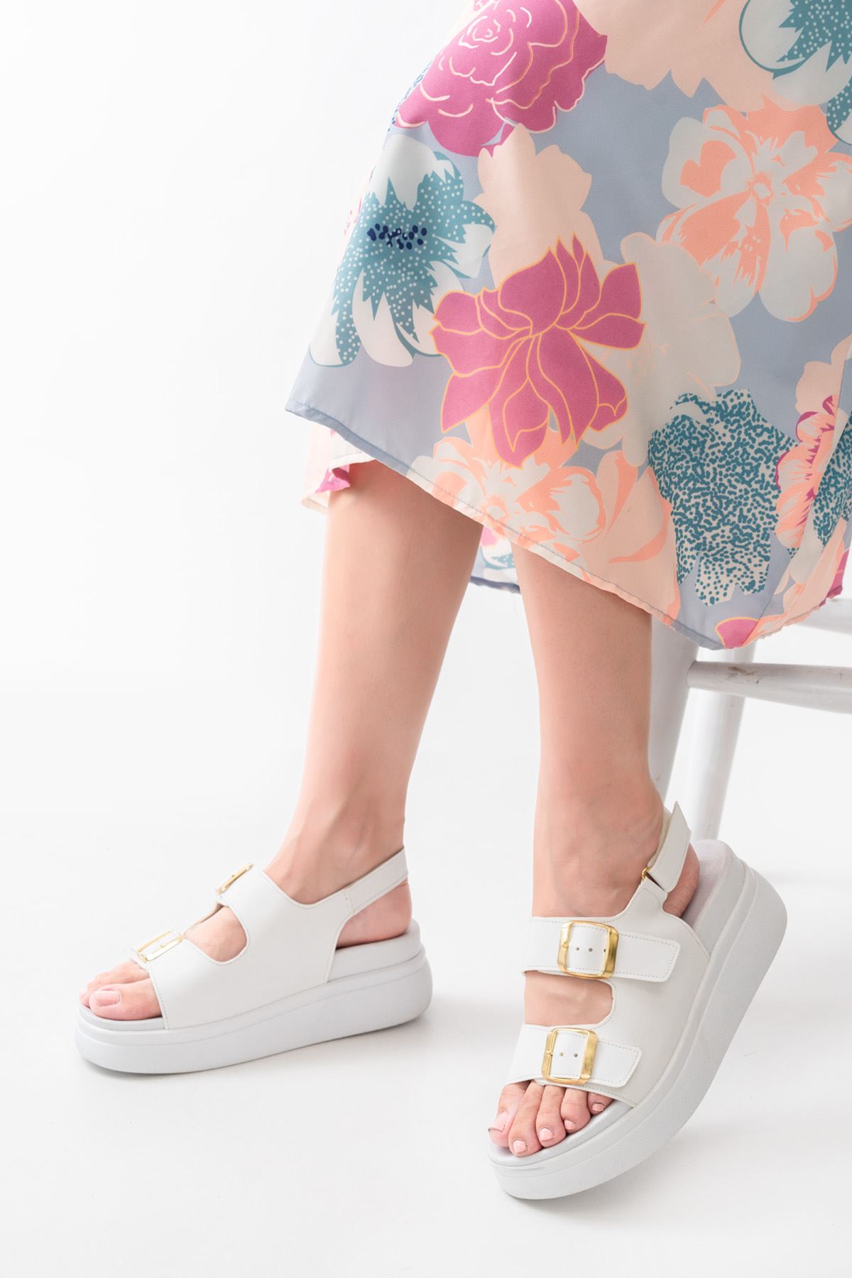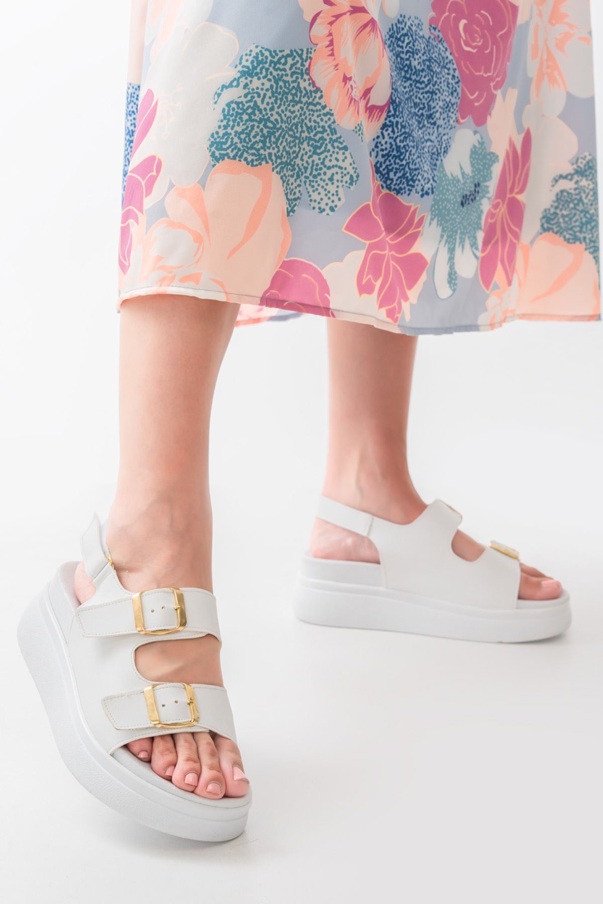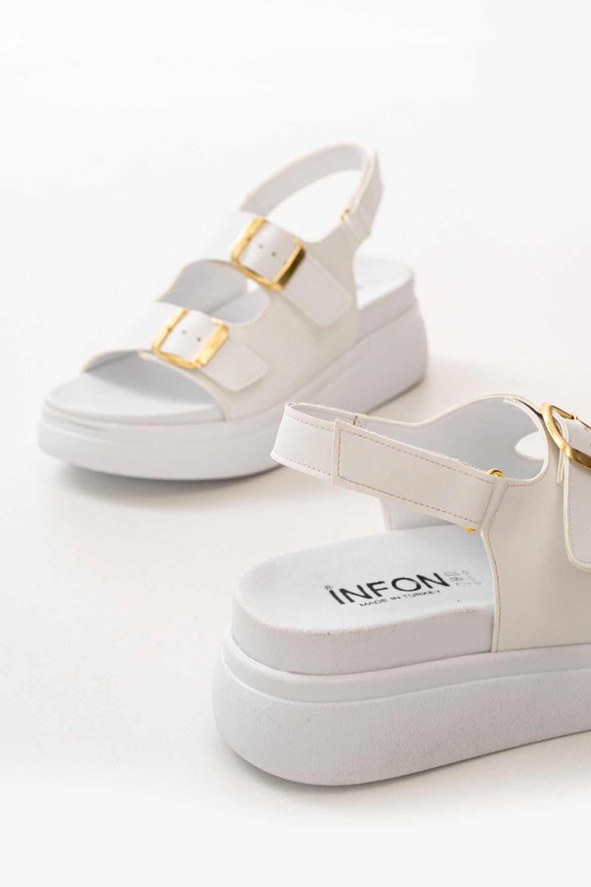24422-1185 Beyaz Dolgu Topuk Kadın Sandalet
