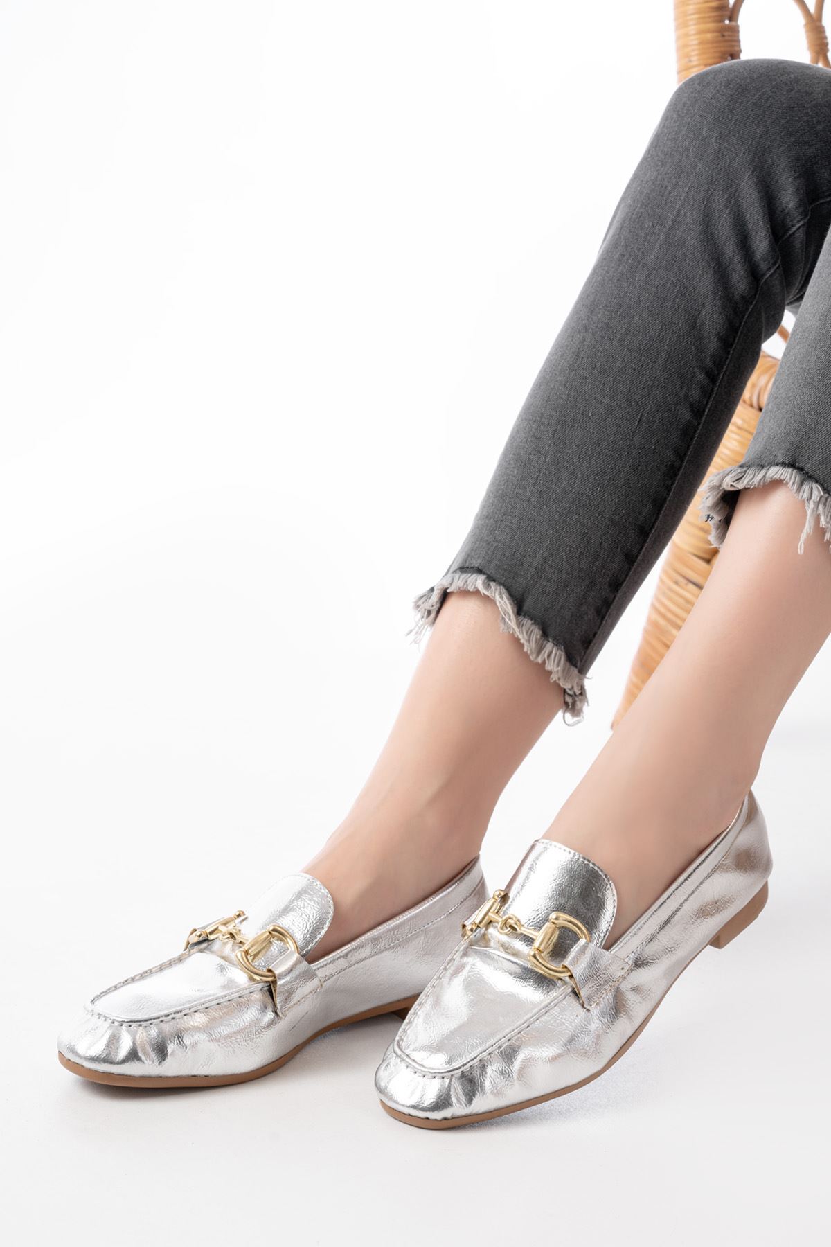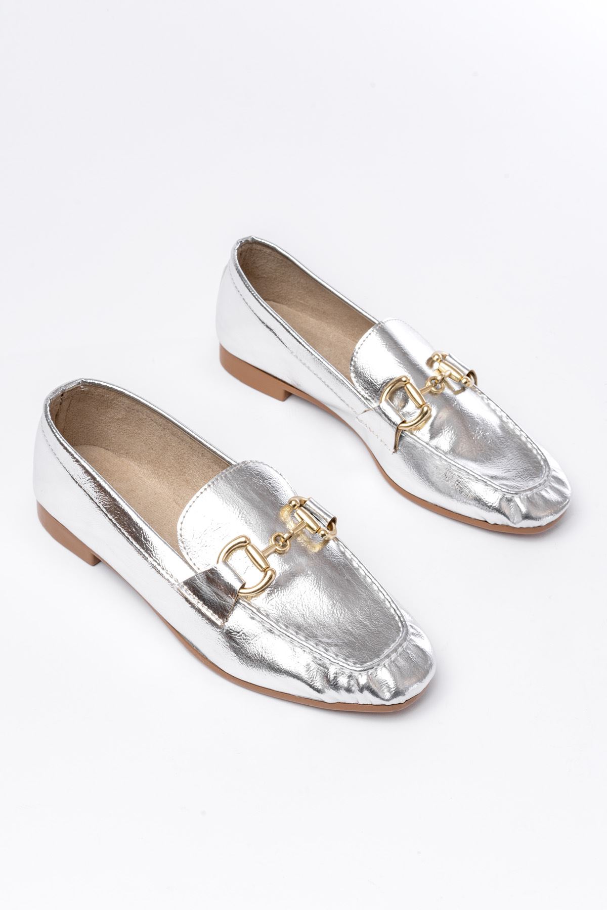 303 Gümüş Toka Aksesuarlı Günlük Kadın Babet