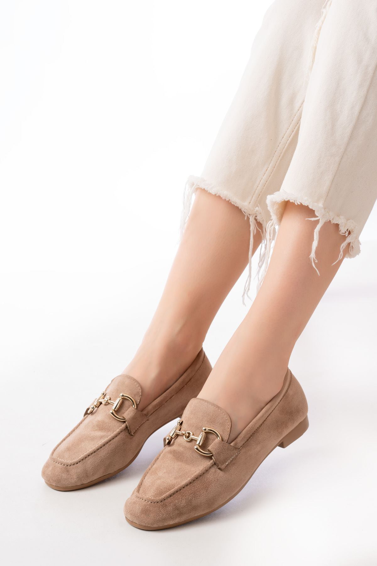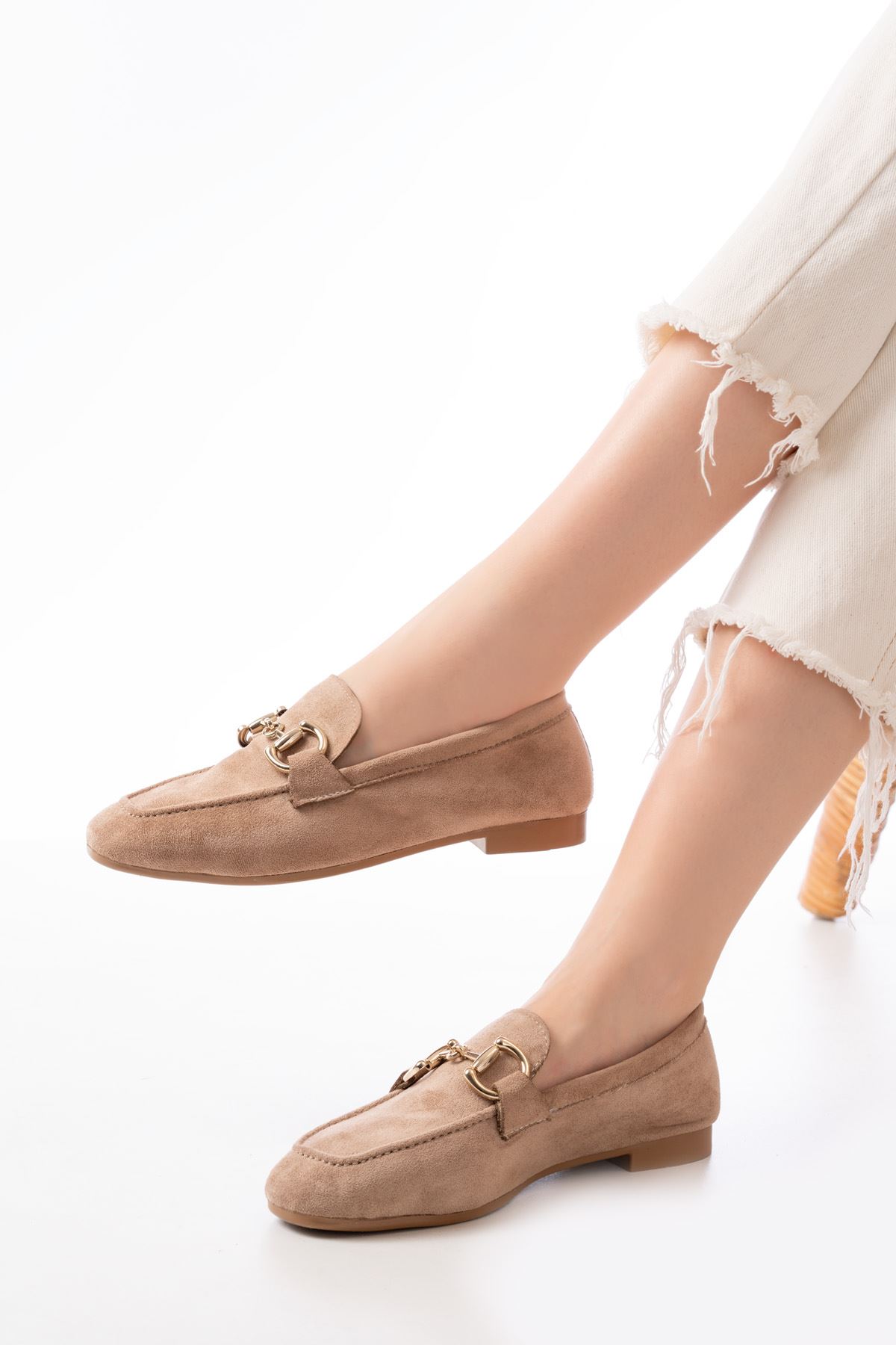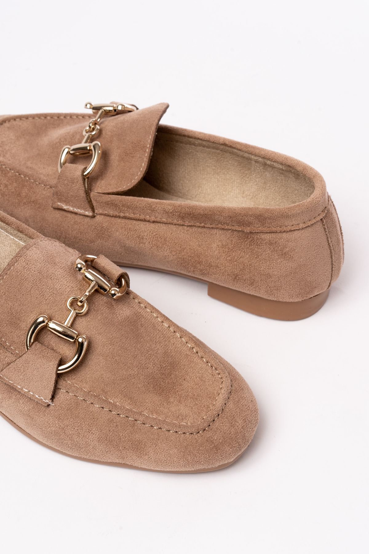 303 Taba Süet Toka Aksesuarlı Günlük Kadın Babet
