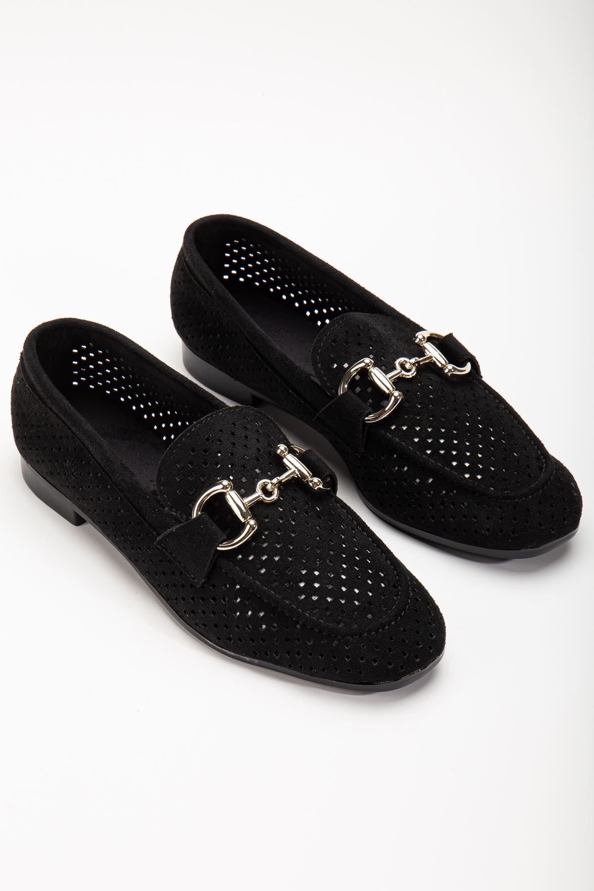 401 Siyah Süet Delikli Günlük Kadın Babet