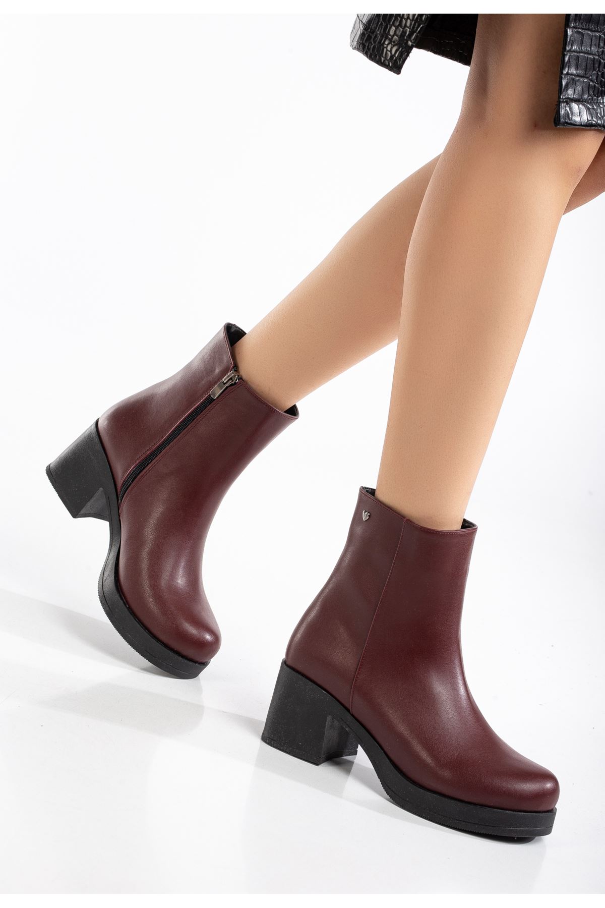 5109-3022 Bordo Fermuarlı Kalın Topuklu Günlük Kadın Bot