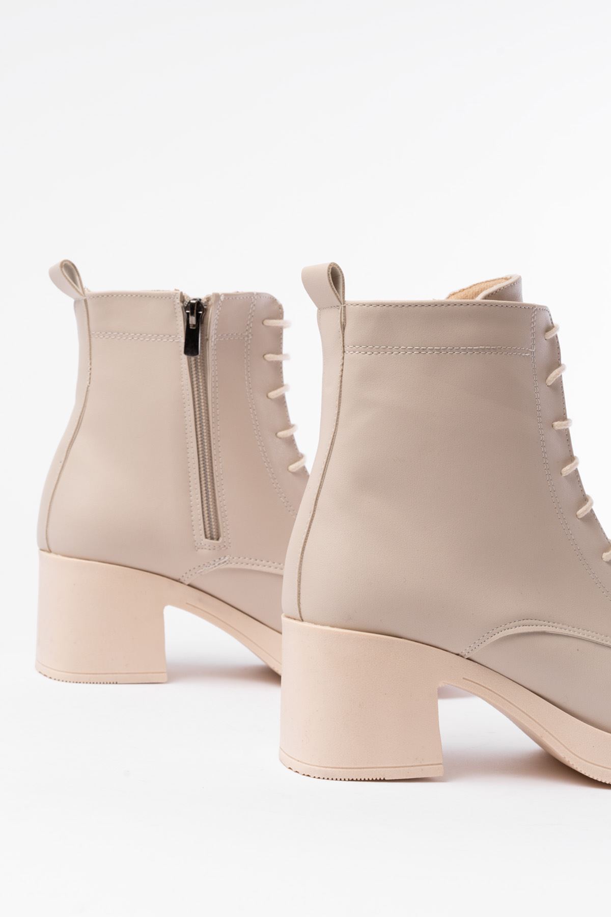 5109-3025 Bej Bağcıklı Fermuarlı Kalın Topuklu Günlük Kadın Bot