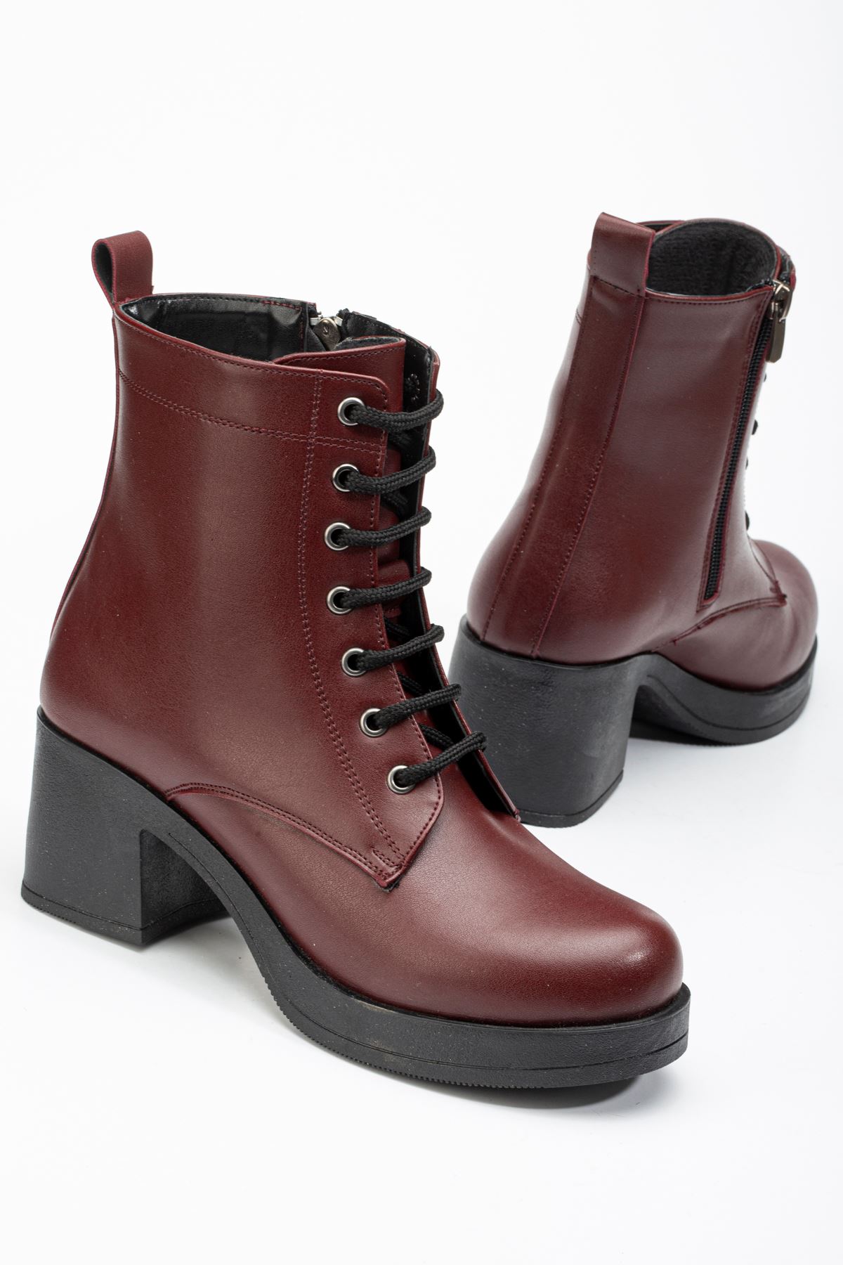 5109-3025 Bordo Bağcıklı Fermuarlı Kalın Topuklu Günlük Kadın Bot