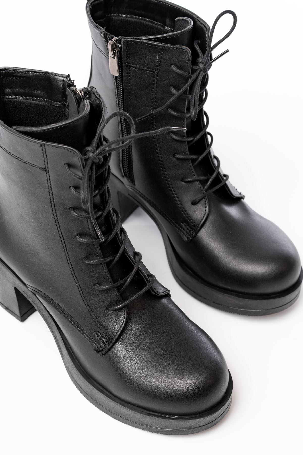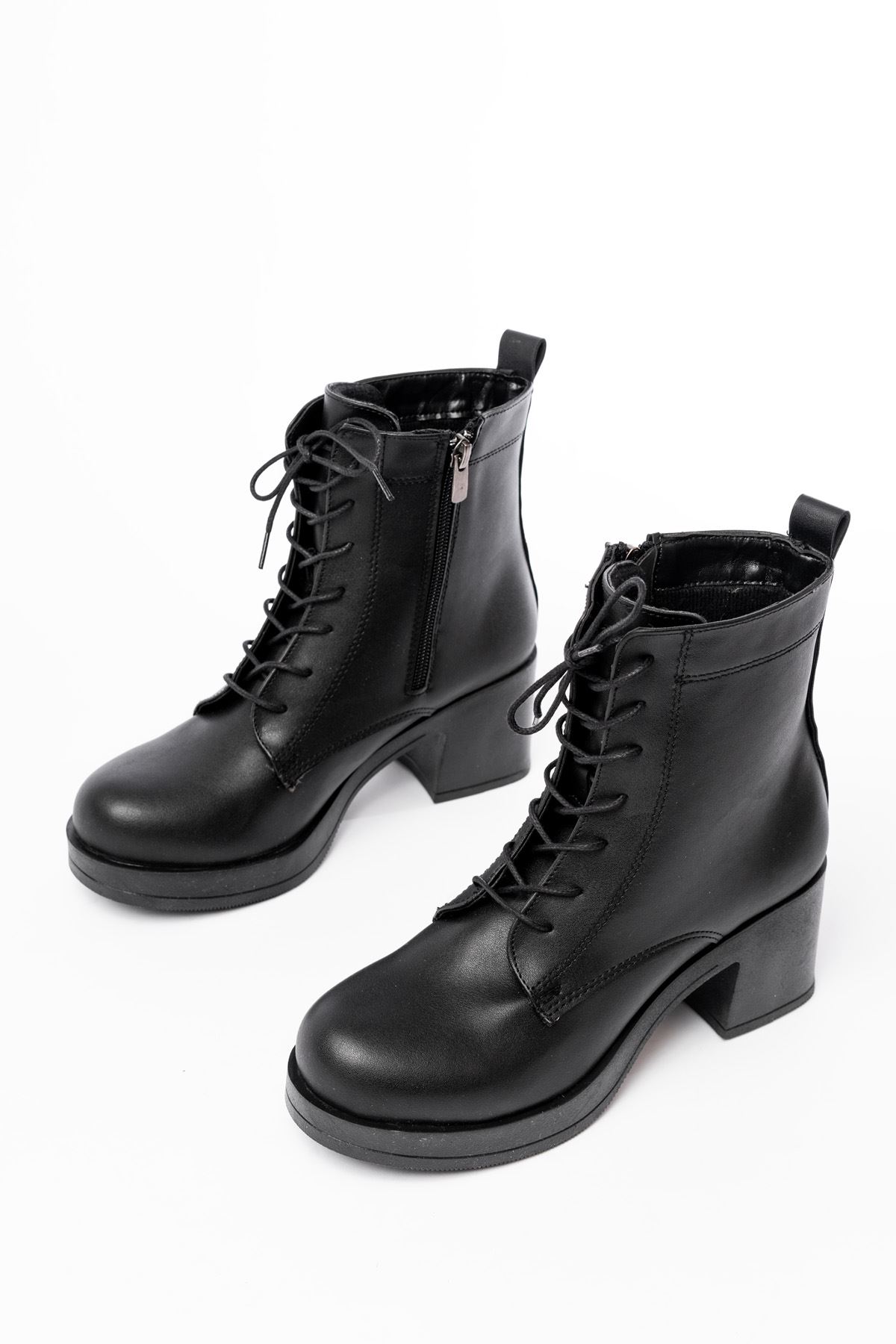 5109-3025 Siyah Bağcıklı Fermuarlı Kalın Topuklu Günlük Kadın Bot