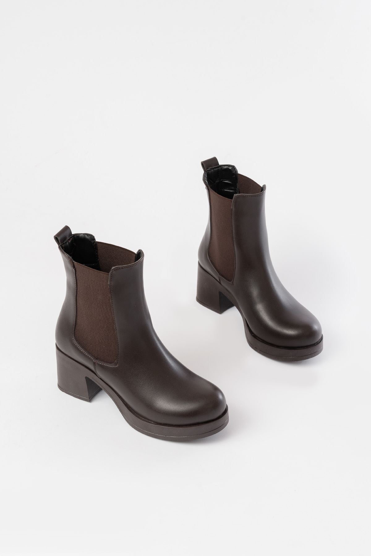 5109-3056 Kahverengi Lastikli Kalın Topuklu Günlük Kadın Bot
