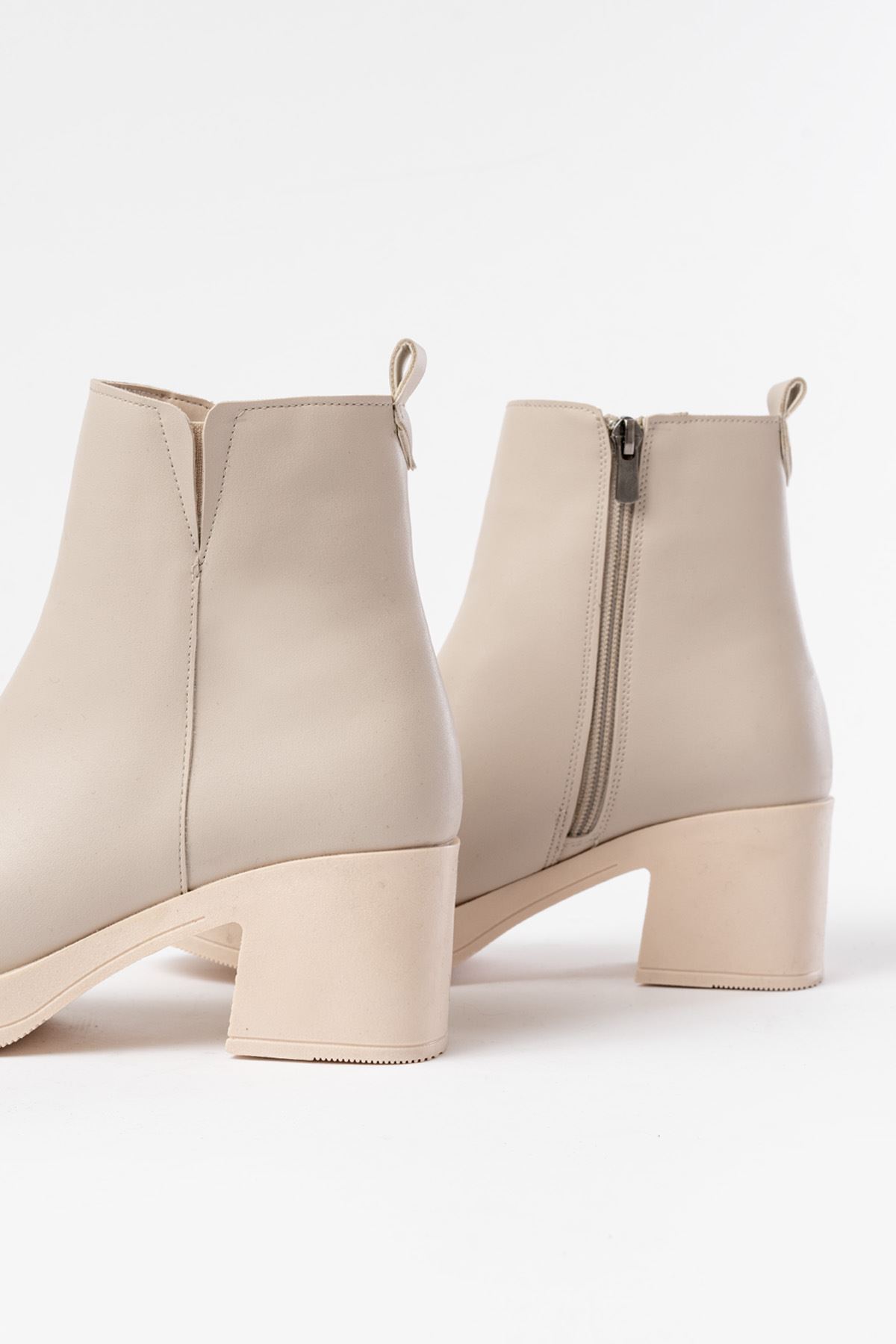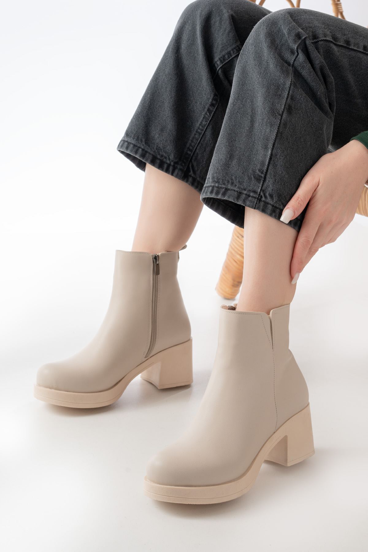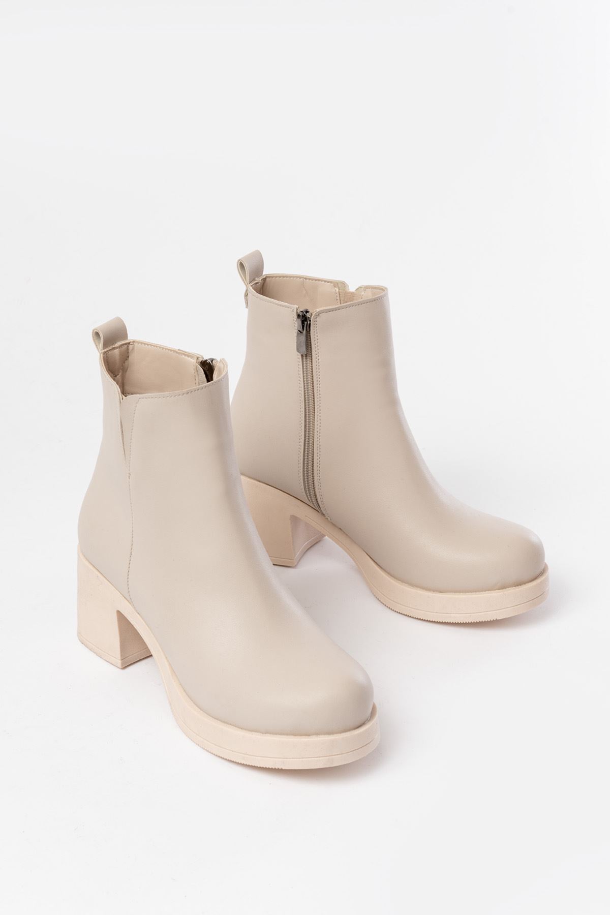5109-3057 Bej Lastikli Fermuarlı Kalın Topuklu Günlük Kadın Bot