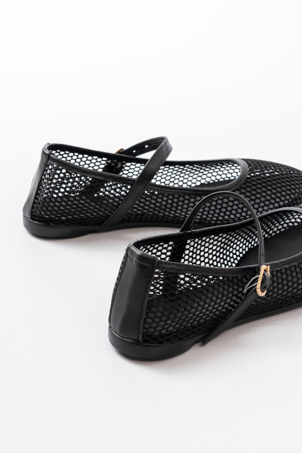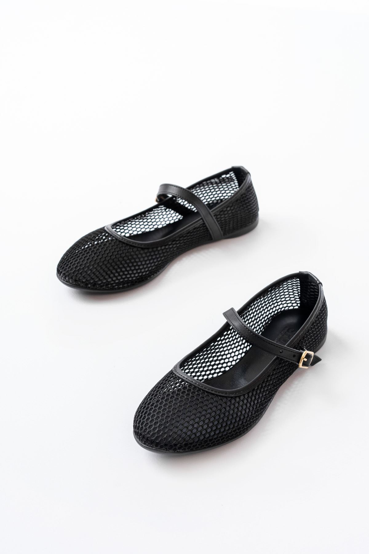 6325 Siyah Fileli Baret Toka Detaylı Günlük Kadın Babet
