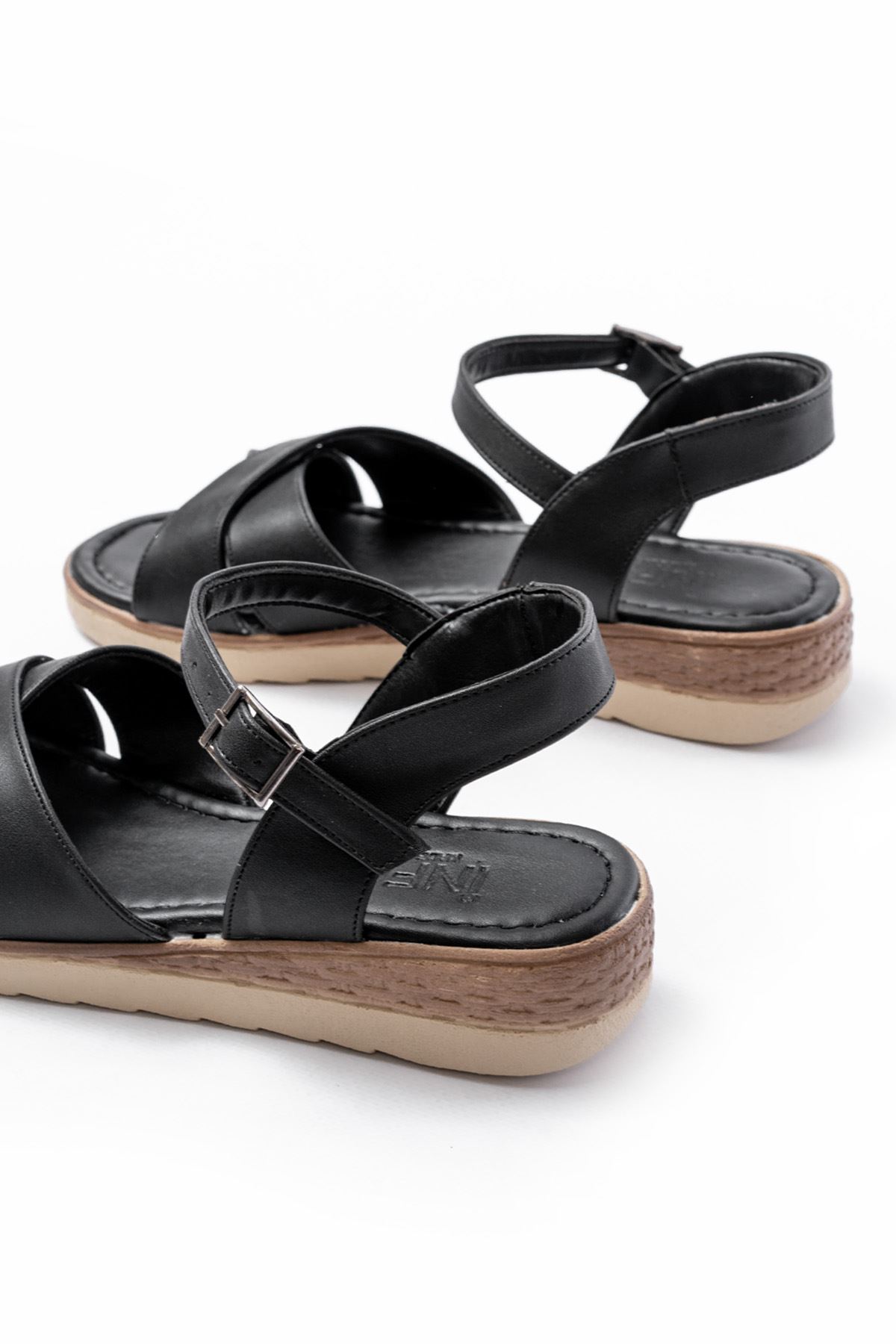 692-564 Siyah Ortopedik Taban Çapraz Tokalı Kadın Sandalet