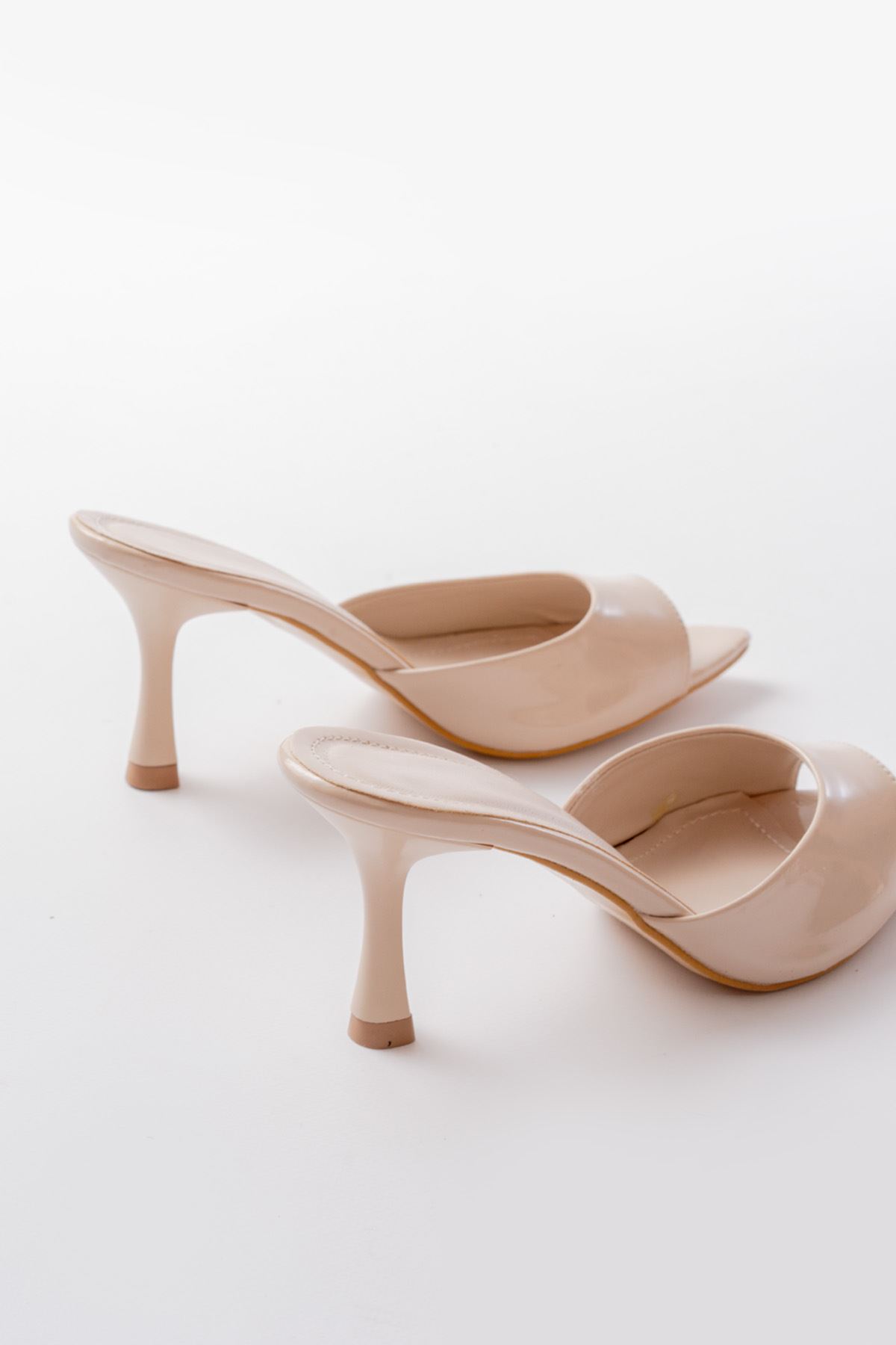 716 Bej Rugan Sivri Burunlu Topuklu Kadın Terlik