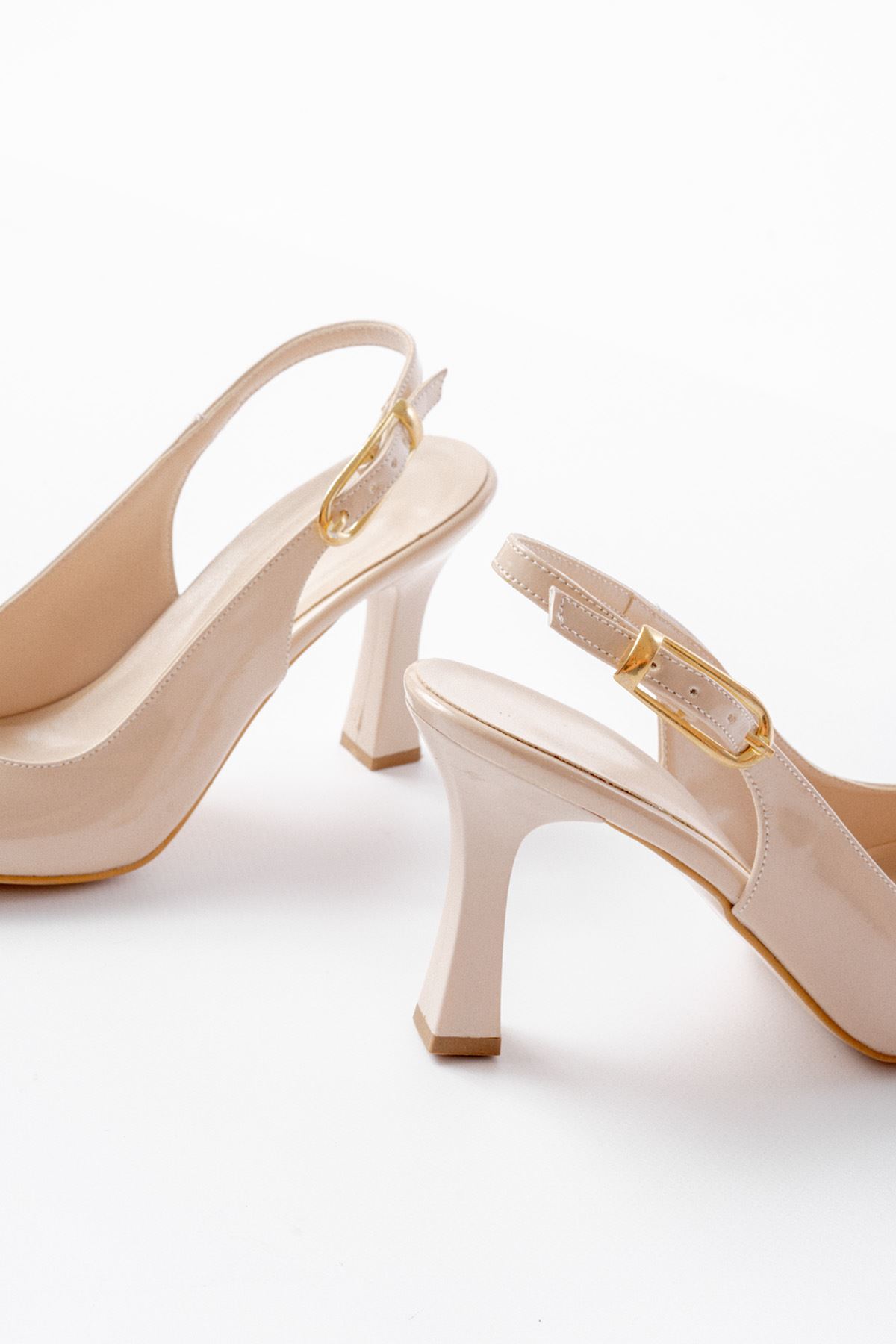 719 Bej Rugan Sivri Burunlu Toka Detaylı Topuklu Kadın Ayakkabı