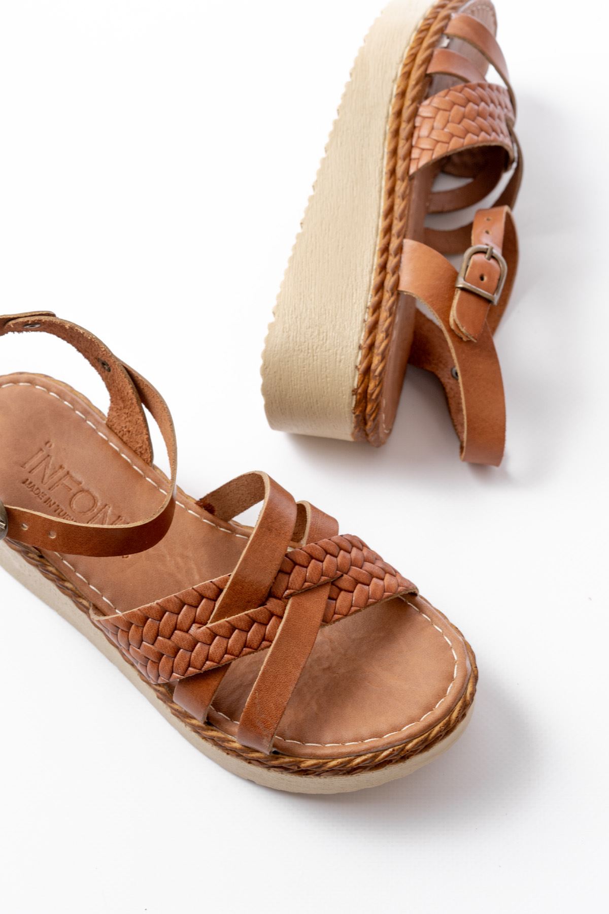 730-138 Taba Örgü Hakiki Deri Ortopedik Taban Kadın Sandalet