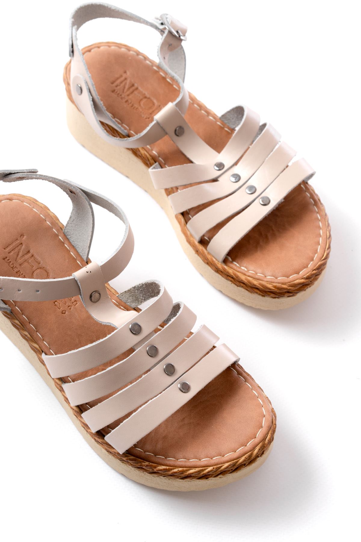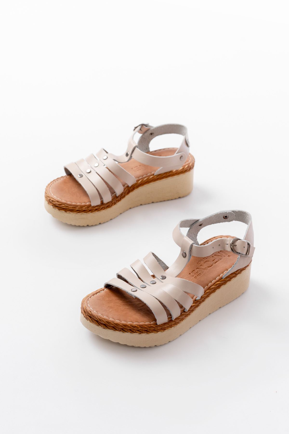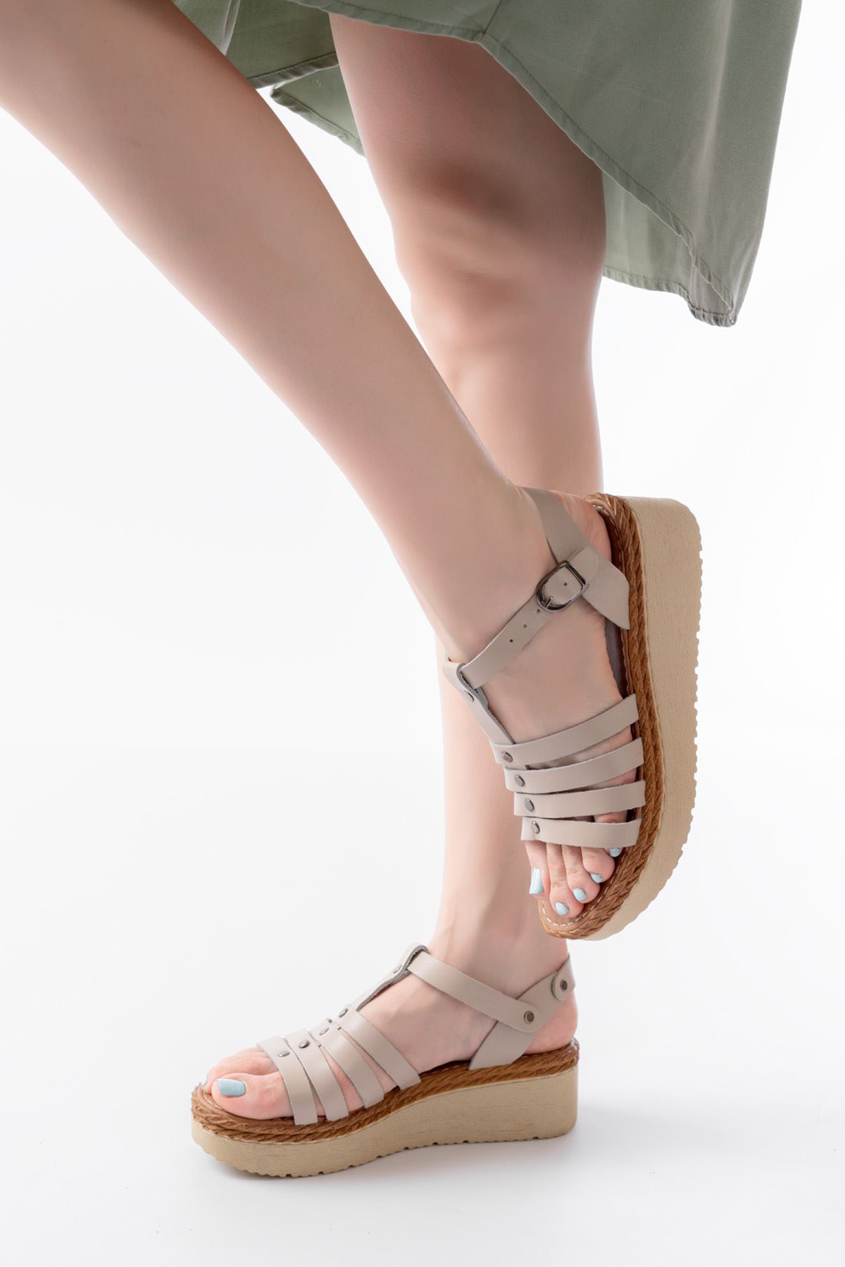 730-142 Bej Hakiki Deri Ortopedik Taban Kadın Sandalet