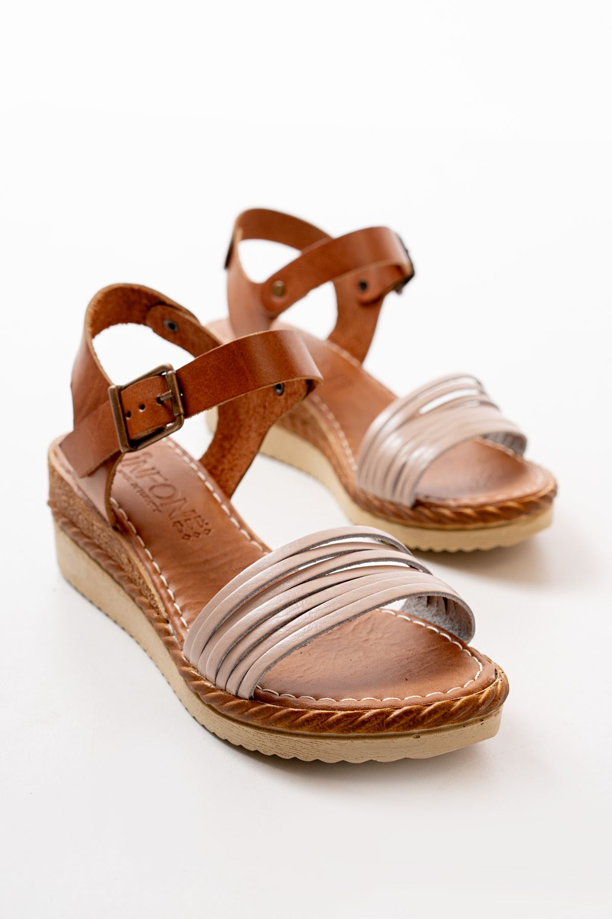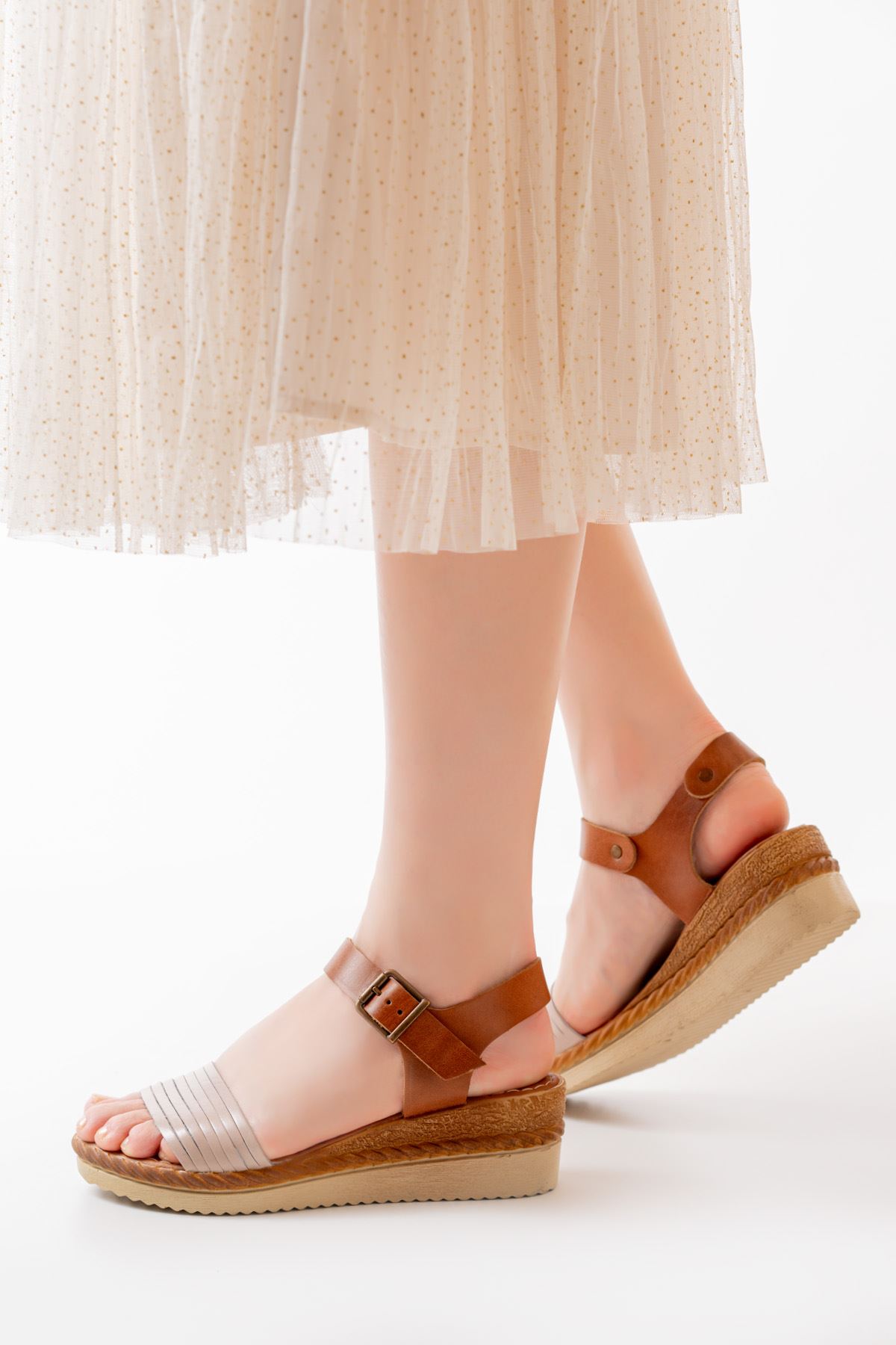 731-07 Bej Ortopedik Hakiki Deri Dolgu Kadın Sandalet