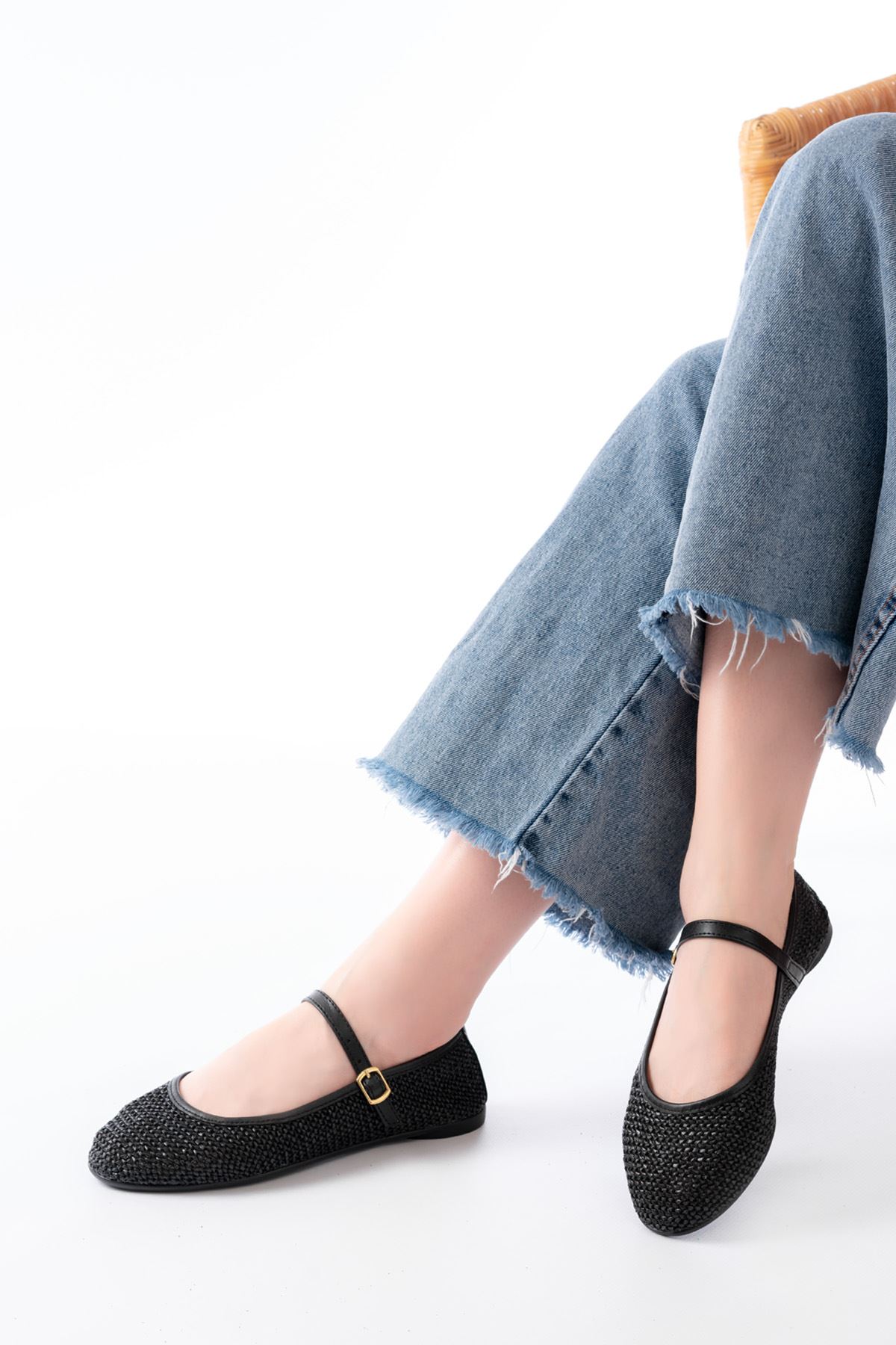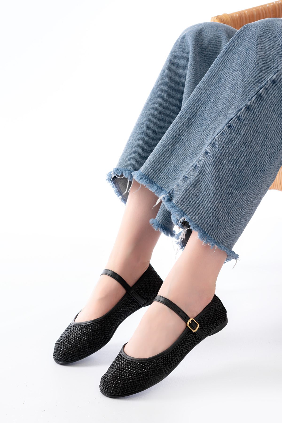 7432 Siyah Fileli Toka Detaylı Günlük Kadın Babet