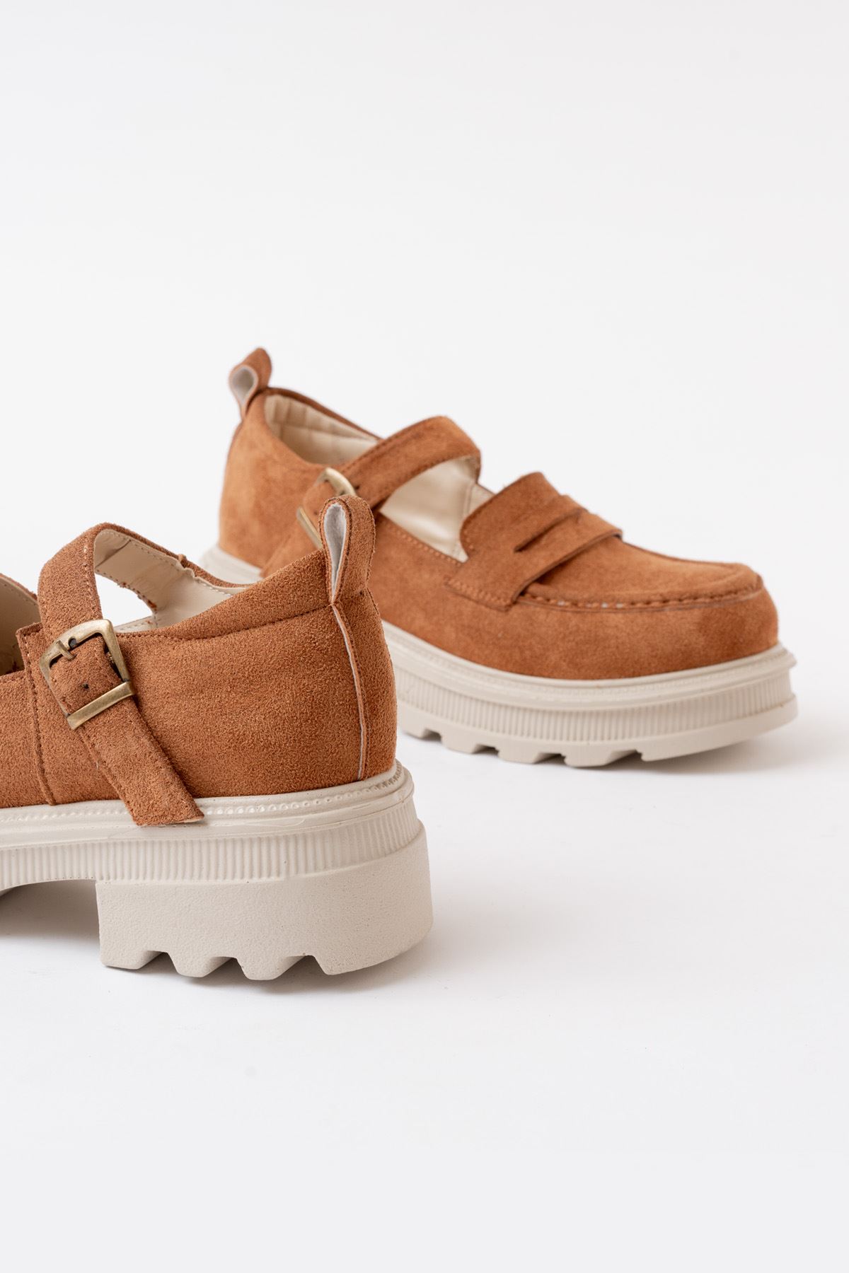 745-771 Taba Süet Kadın Günlük Yüksek Tabanlı Loafer Ayakkabı