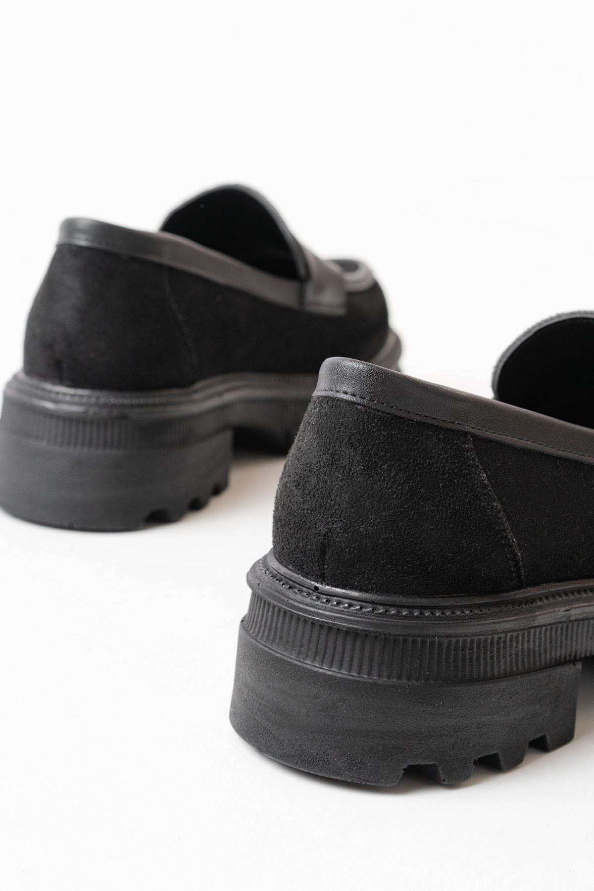 746-759 Siyah Süet Günlük Yüksek Tabanlı Loafer Ayakkabı