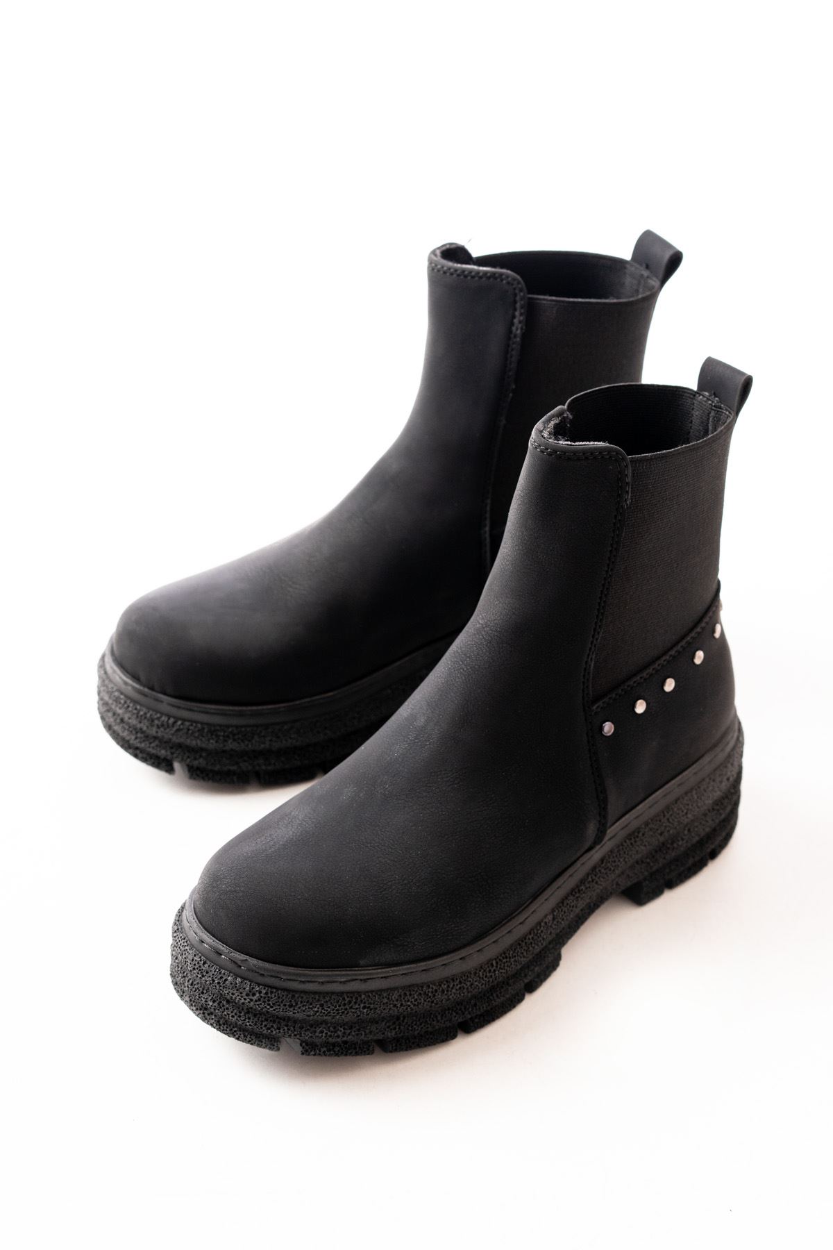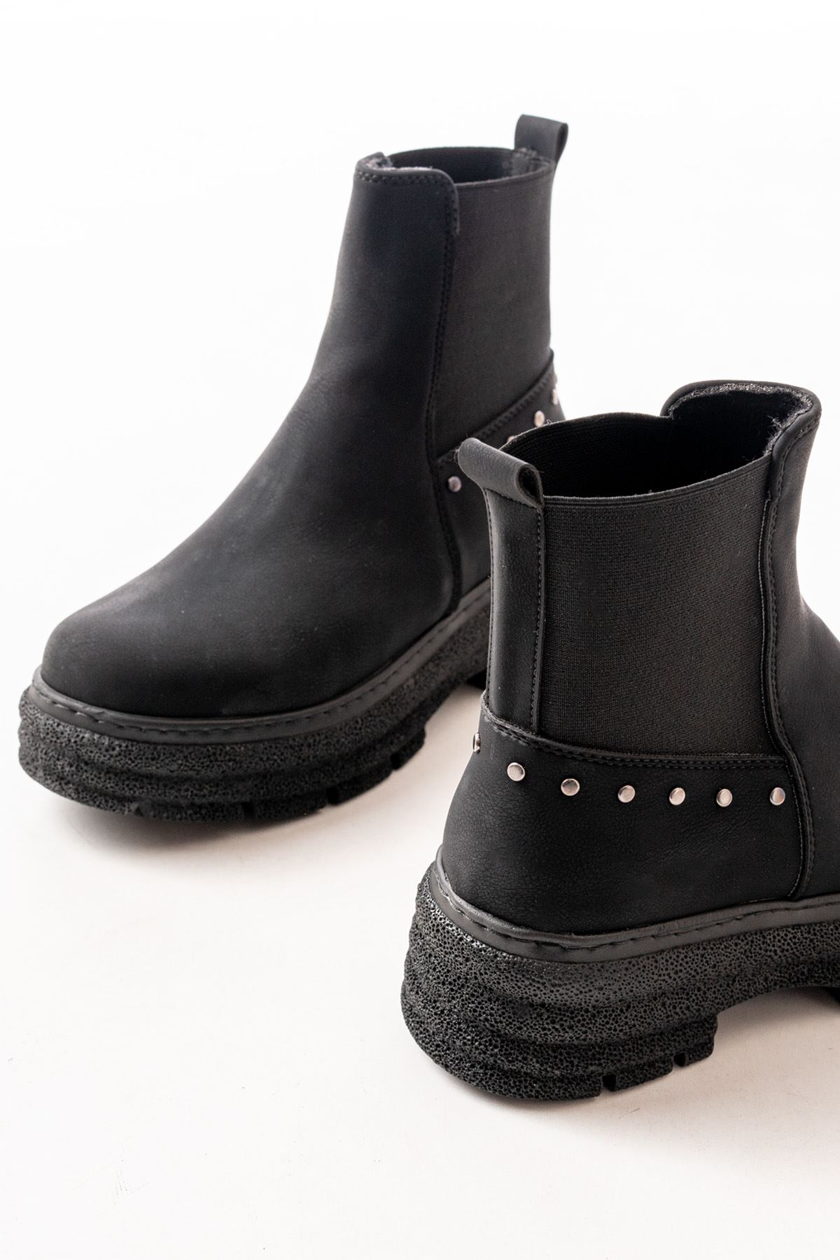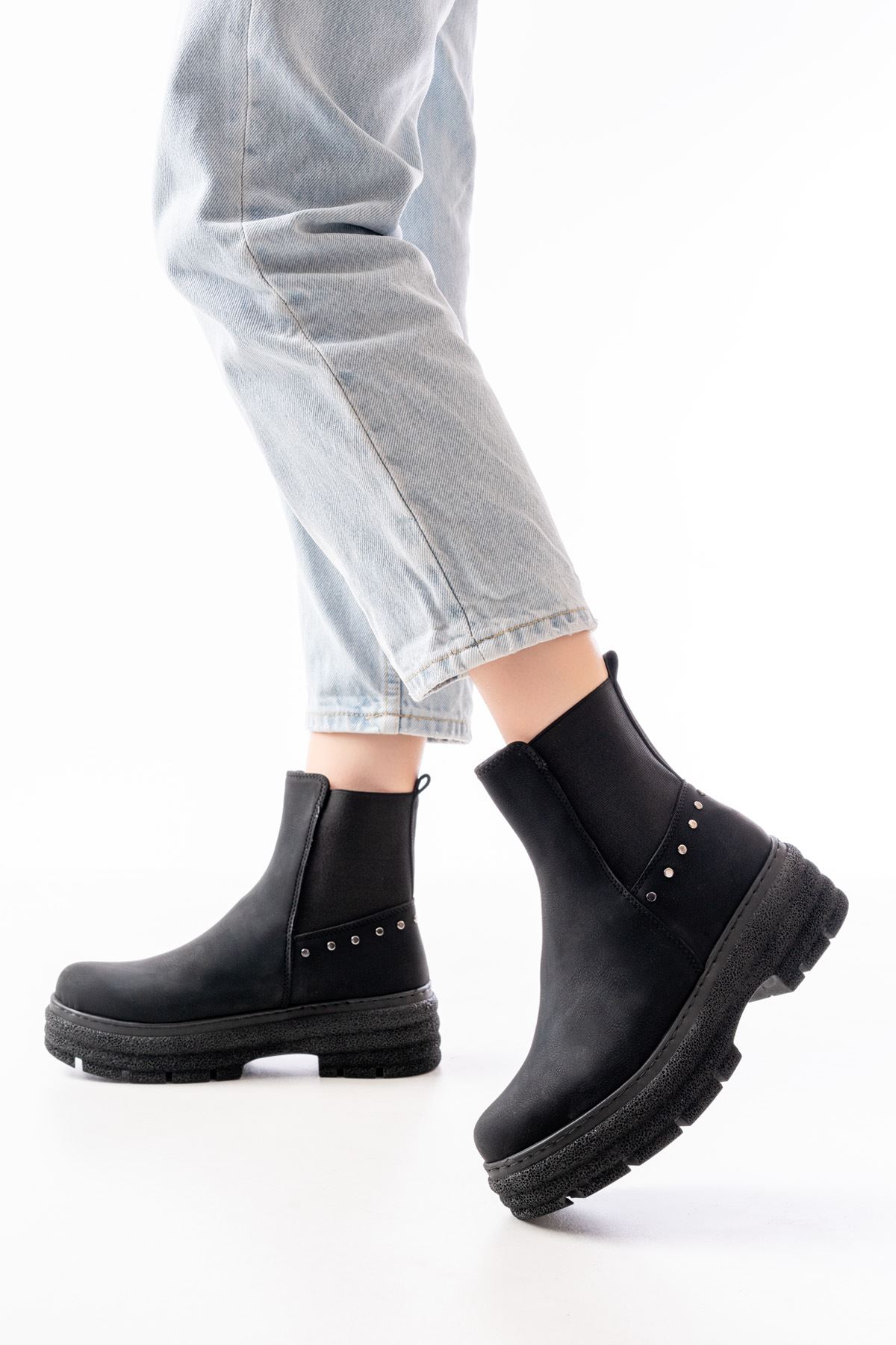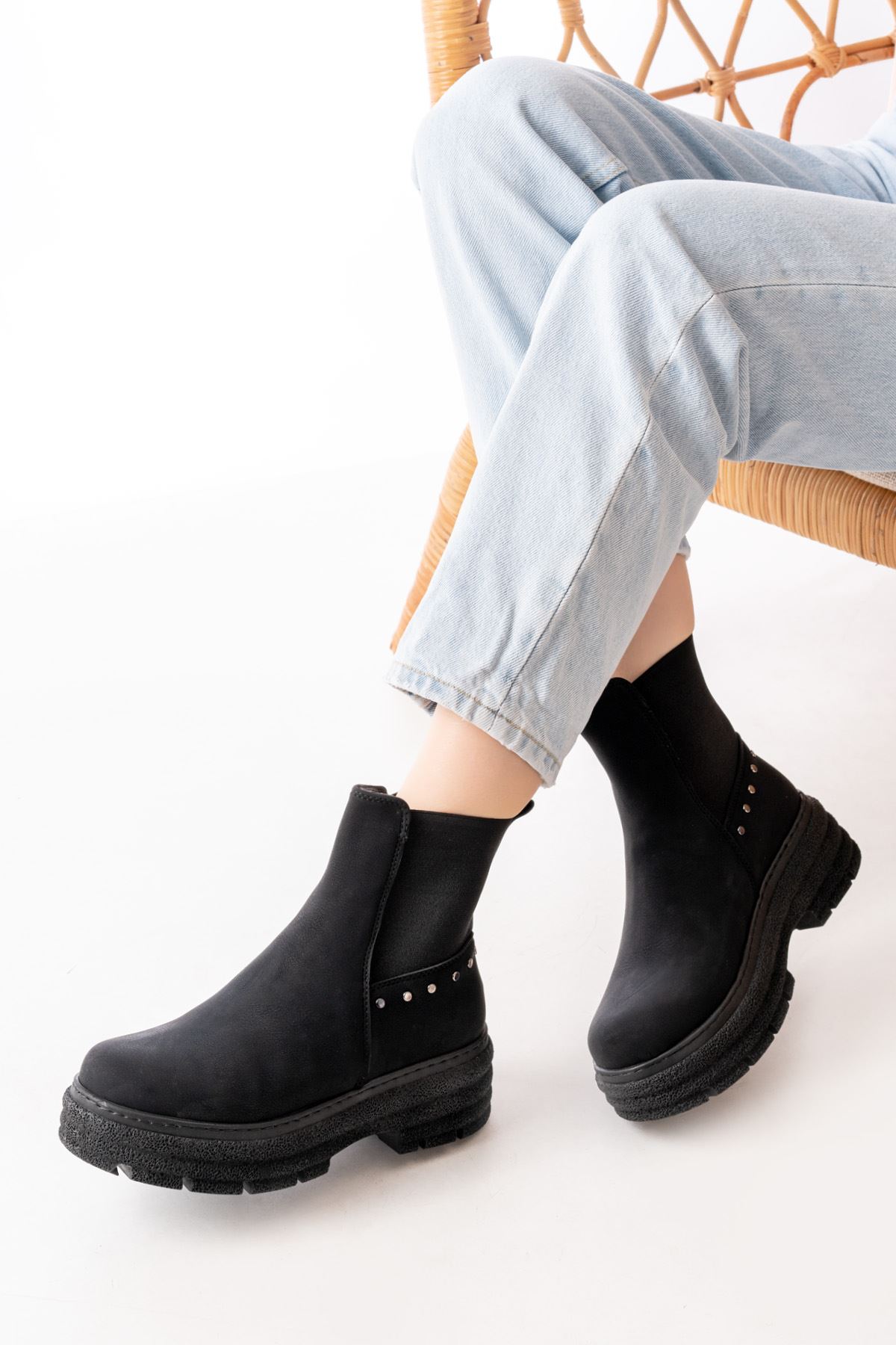 749-2005 Siyah Zümrüt Düz Topuklu Lastikli Günlük Kadın Bot