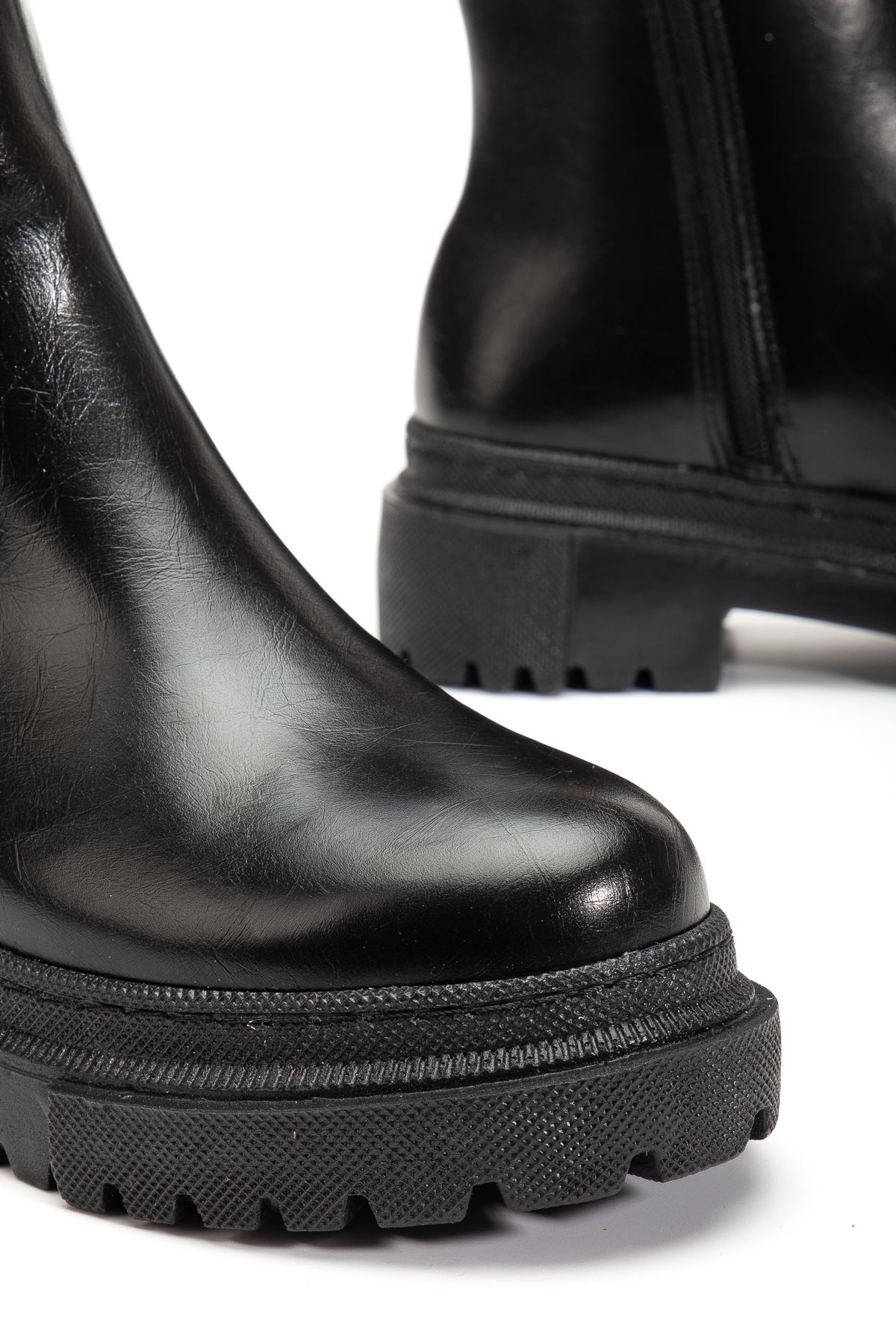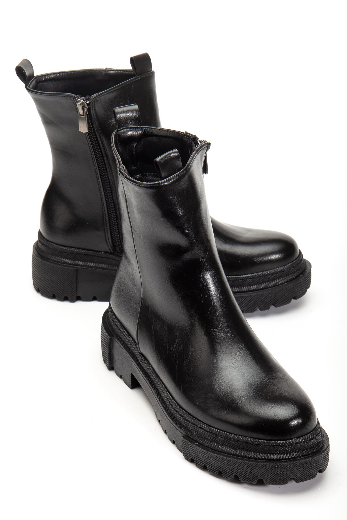 812-2012 Siyah Kırışık Rugan Fermuarlı Günlük Kadın Bot