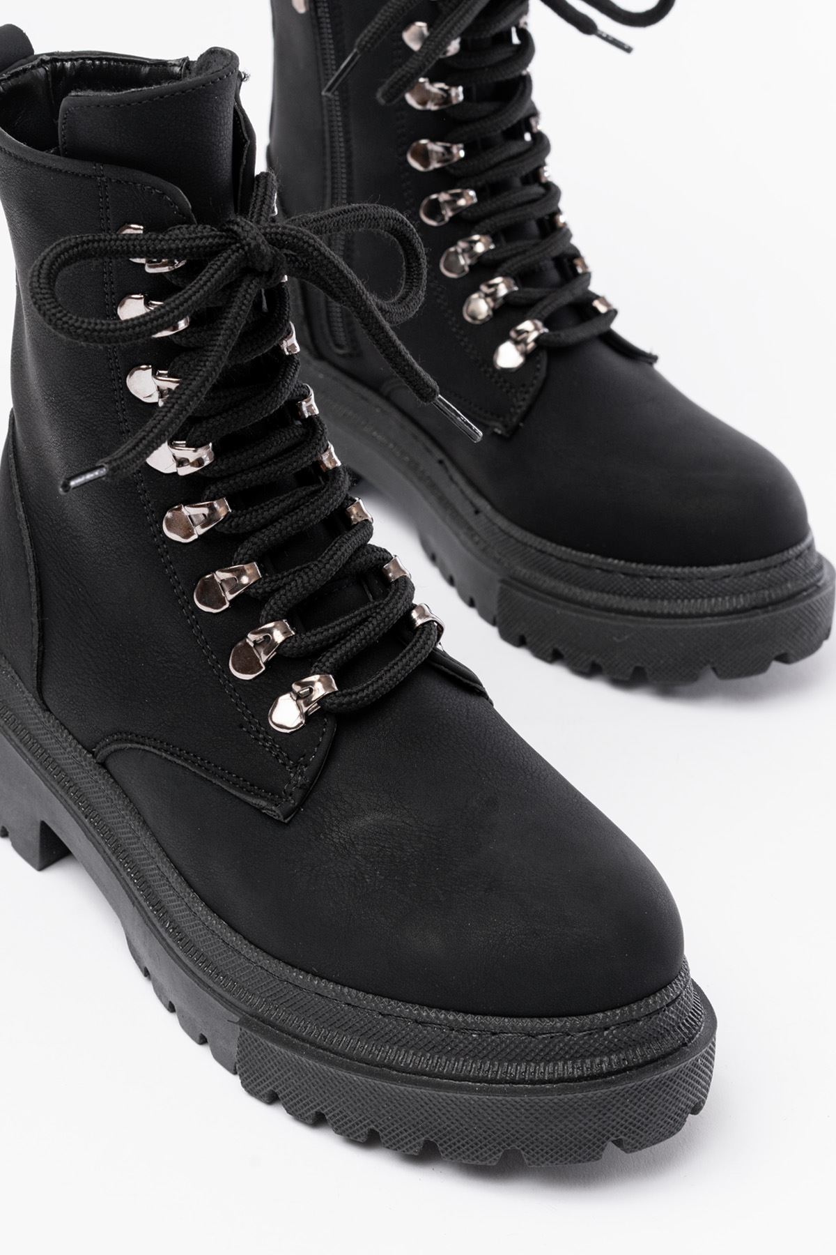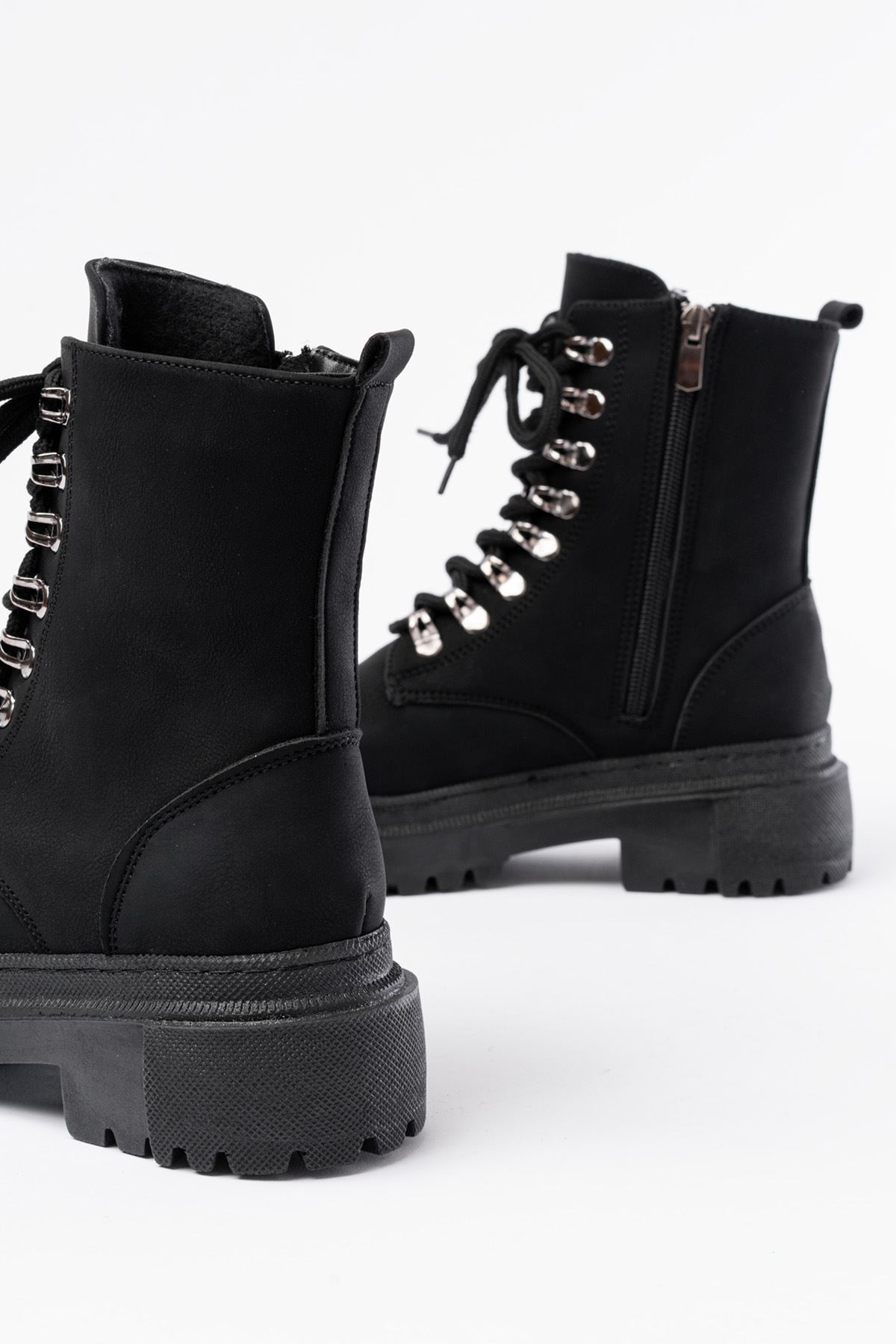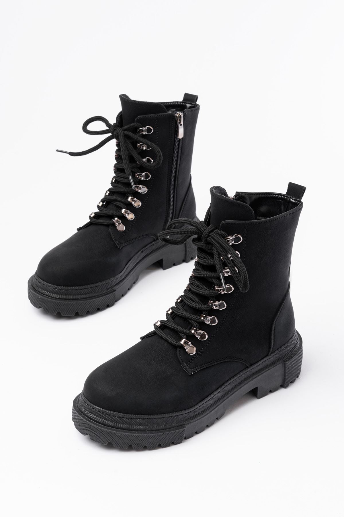 812-2121 Siyah Zümrüt Bağcıklı Fermuarlı Günlük Kadın Bot
