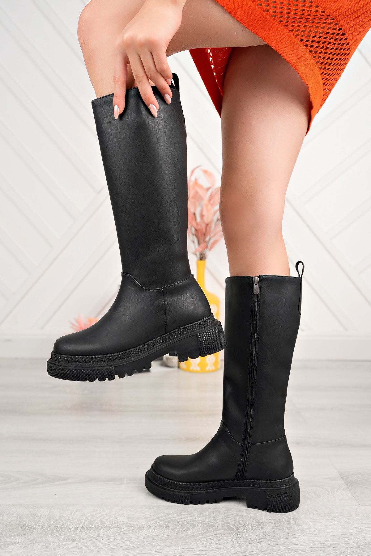 812-340 Siyah Fermuarlı Günlük Kadın Çizme